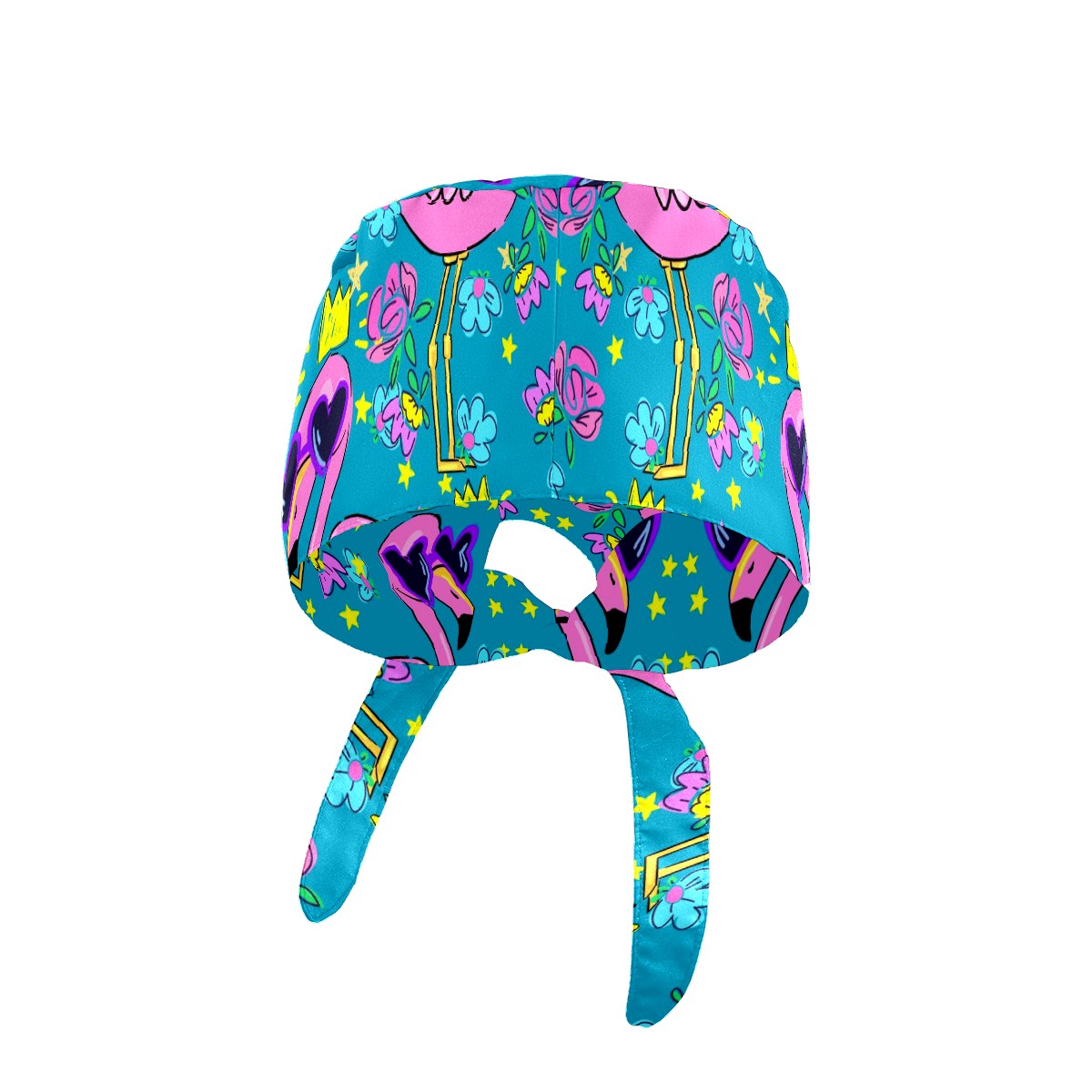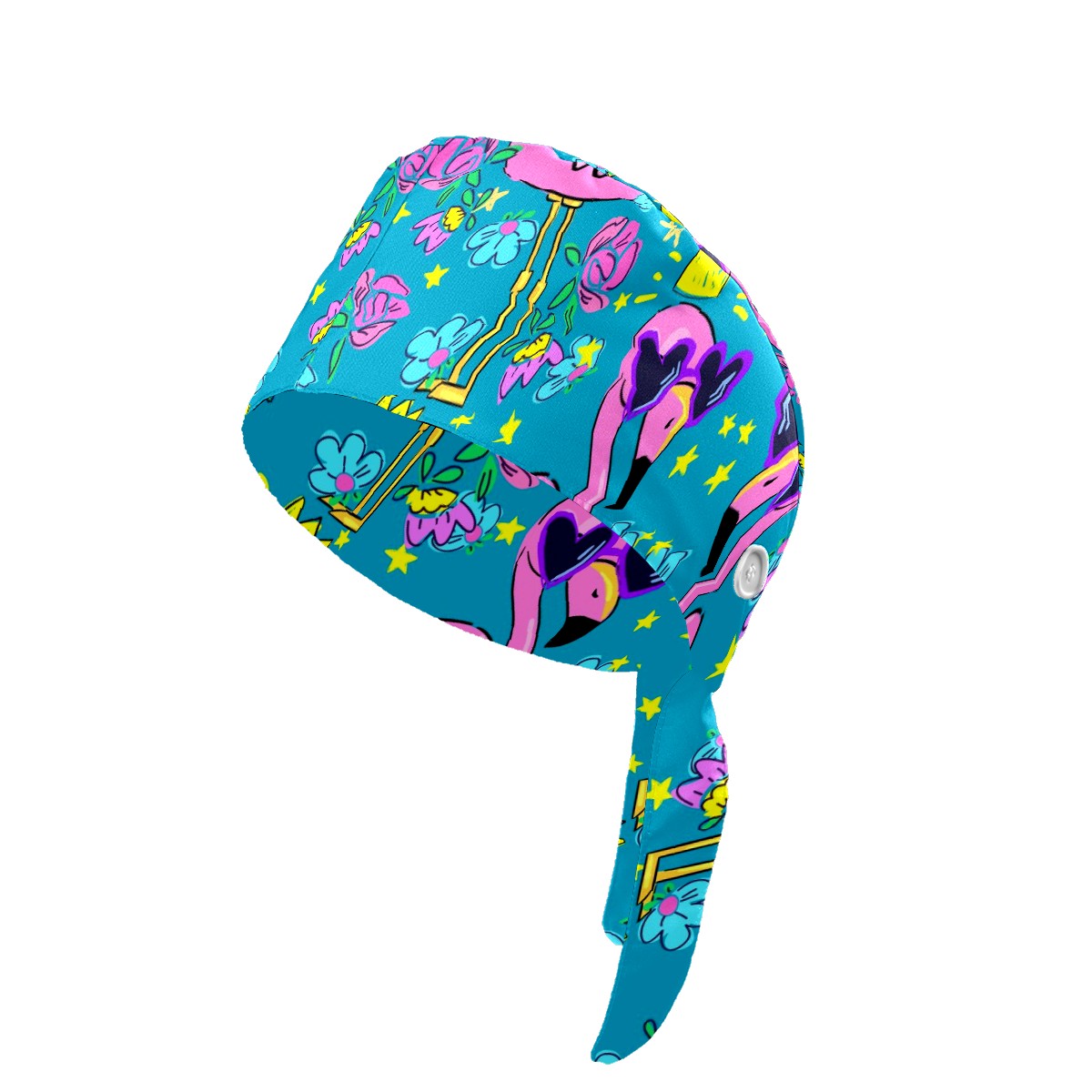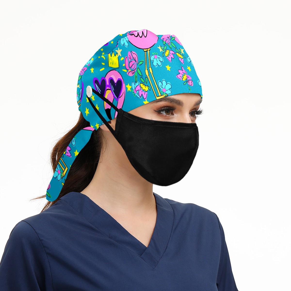 Working Caps with Button & Sweatband Satin Lined Cotton Adjustable Nurse Hats Elastic Band Scrub Cap Surgeon Hat Cute Pink Flamingo Flower