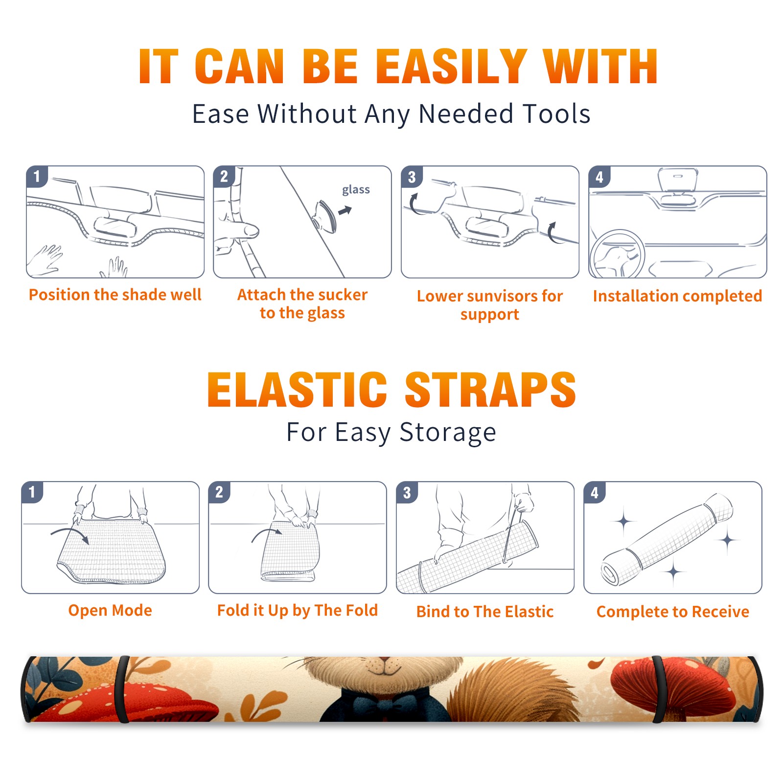 Car Windshield Sun Shade for Front Window Squirrel Foldable Vehicle Windshield Car Sun Visor Covers Automotive Window Protector Car Privacy Sun Blocker
