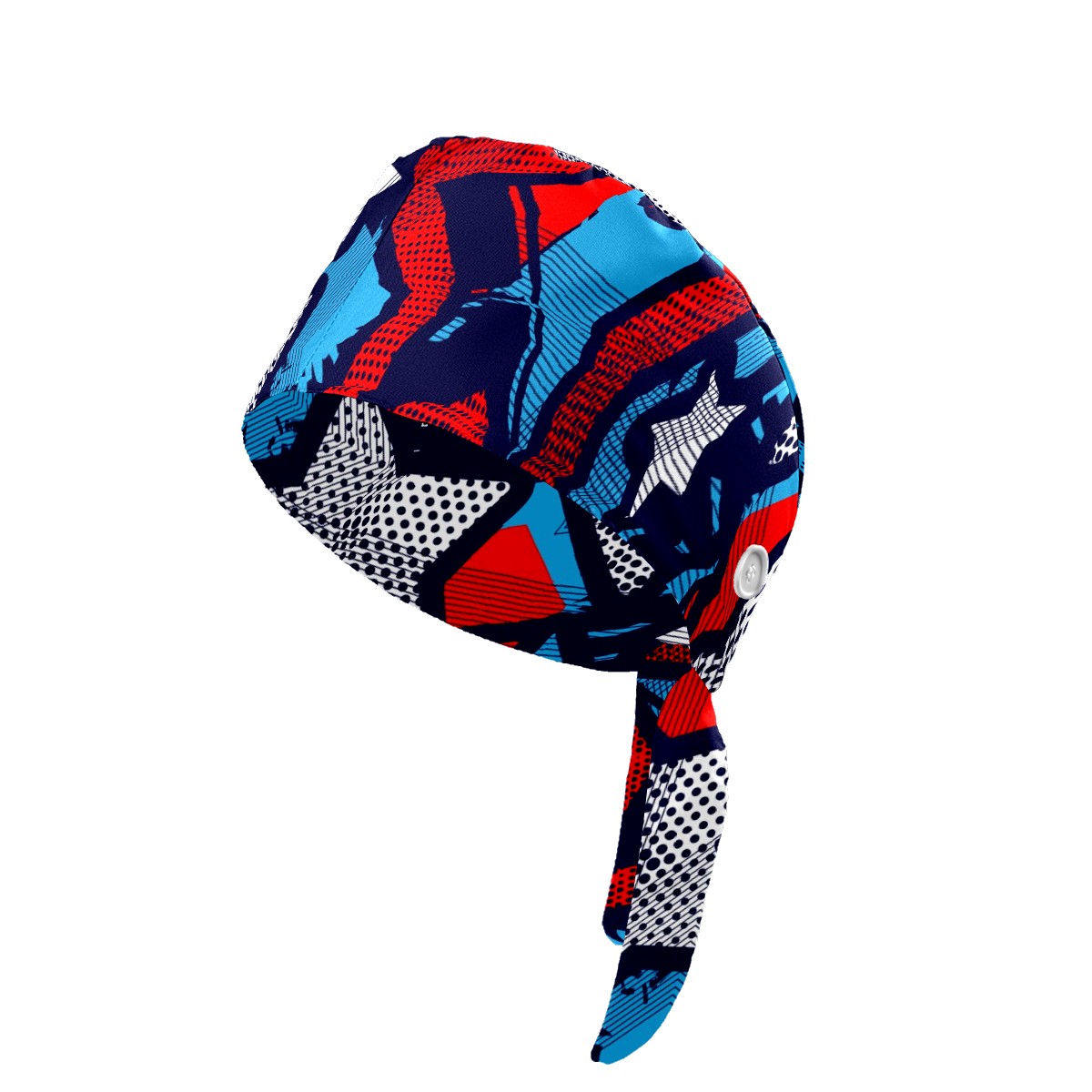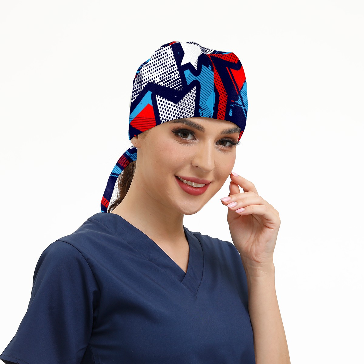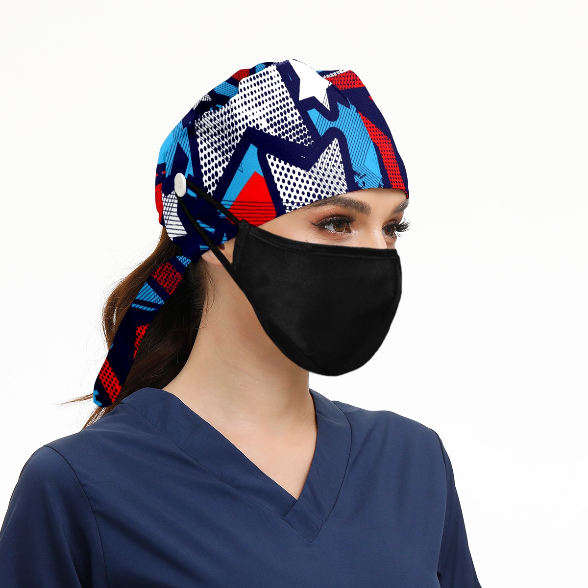 Working Caps with Button & Sweatband Satin Lined Cotton Adjustable Nurse Hats Elastic Band Scrub Cap Surgeon Hat American Independence Day Stars Doodle