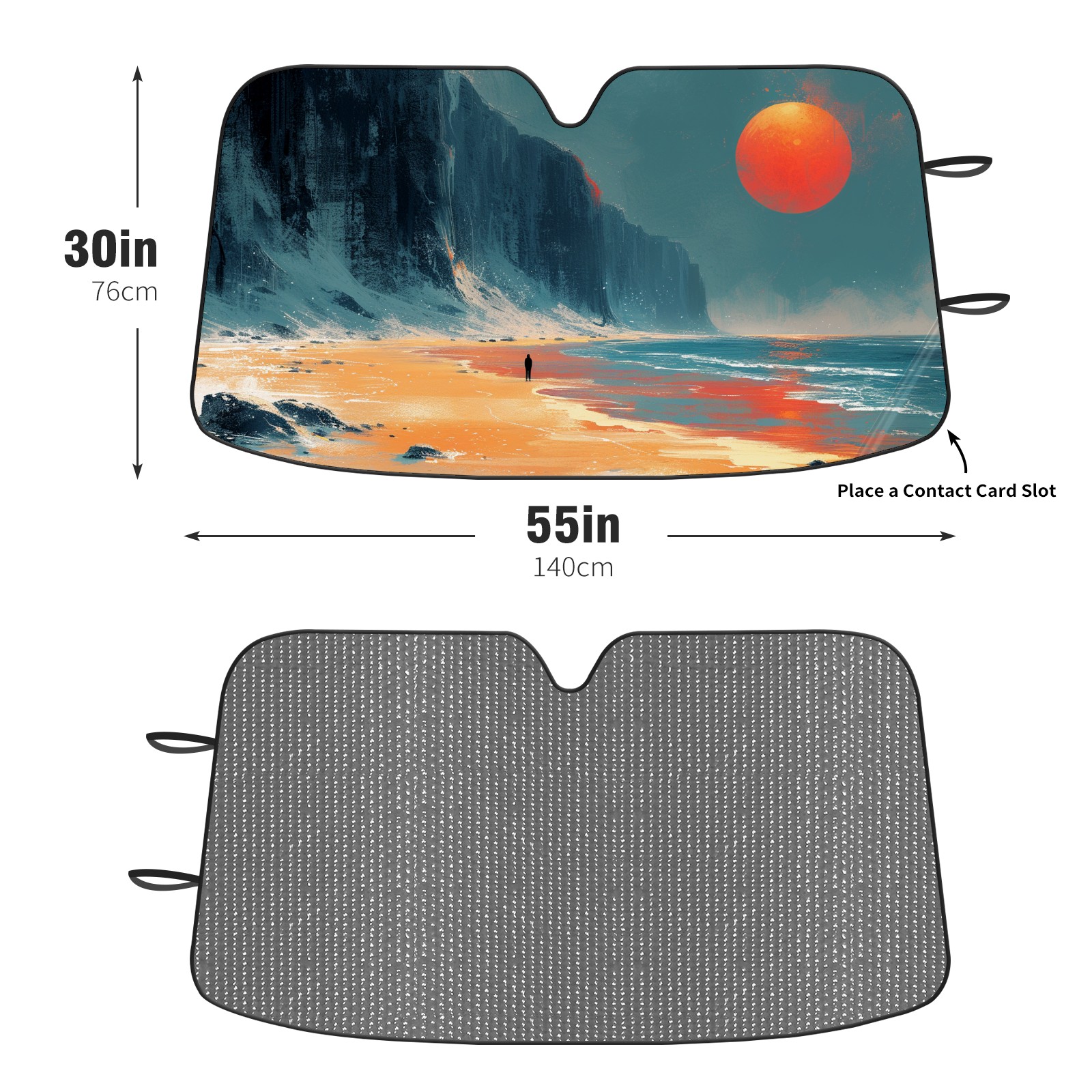 Diameter /Size 63"L x 33.5"W</b><br> Made from excellent materials which makes it sturdy and protects the car from the sun. Easy to use and pack. Makes the interior of the car cooler.You can easily stash the sunshade in the storage bag or store long term.It open and closes easy. Also the leather storage bag is durable and easy to put the umbrella back into.This windshield sunshade provides complete coverage and keeps your car interior cool under direct sun. It is easy to open and position under the windshield and around the rear-view mirror. Makes Your Car Easy To Identify, Perfect For Finding Your Car In Crowded Parking Lots And Garages.Great Choice: It Is A Great Gift For Dad, Boyfriend, Brother, Brother And Uncle, Friends, Classmates, Family And So On.<br> Notice:</b><br> Due To Difference Computer Monitors, The Color Maybe Slightly Different From Picture. As Different Measurement Methods, Measurement Data Will Float Within 2%.I Hope You Understand.<br> If You Have Any Question About The Item Please Do Not Hesitate To Contact Us Immediately And We Will Give You A Satisfactory Reply Within 24 Hours.