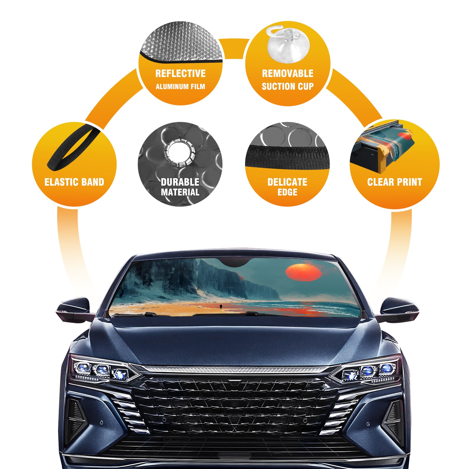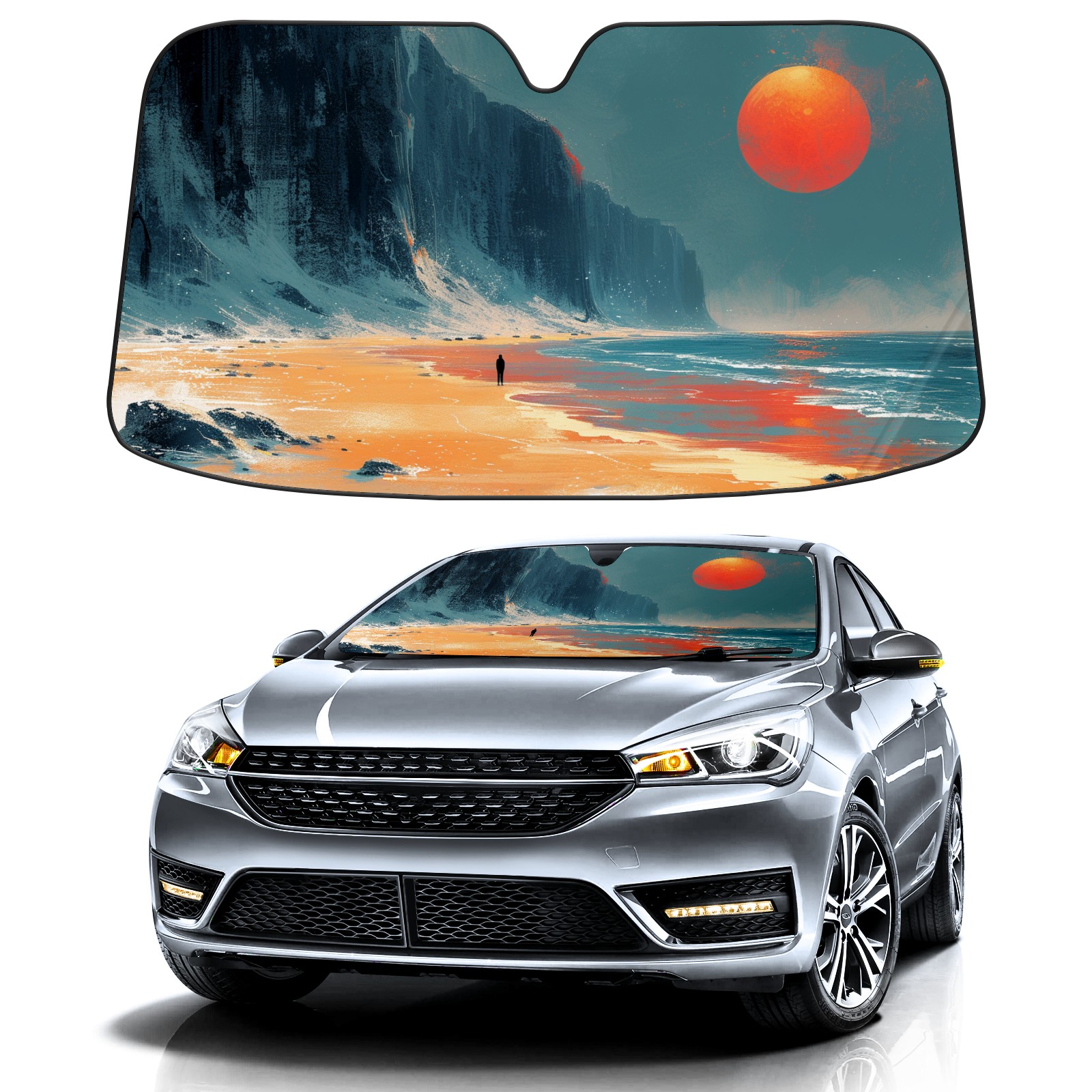 Car Windshield Sun Shade for Front Window Beach Foldable Vehicle Windshield Car Sun Visor Covers Automotive Window Protector Car Privacy Sun Blocker