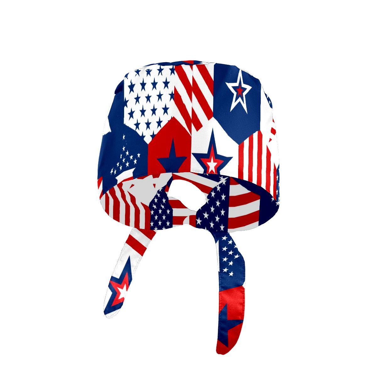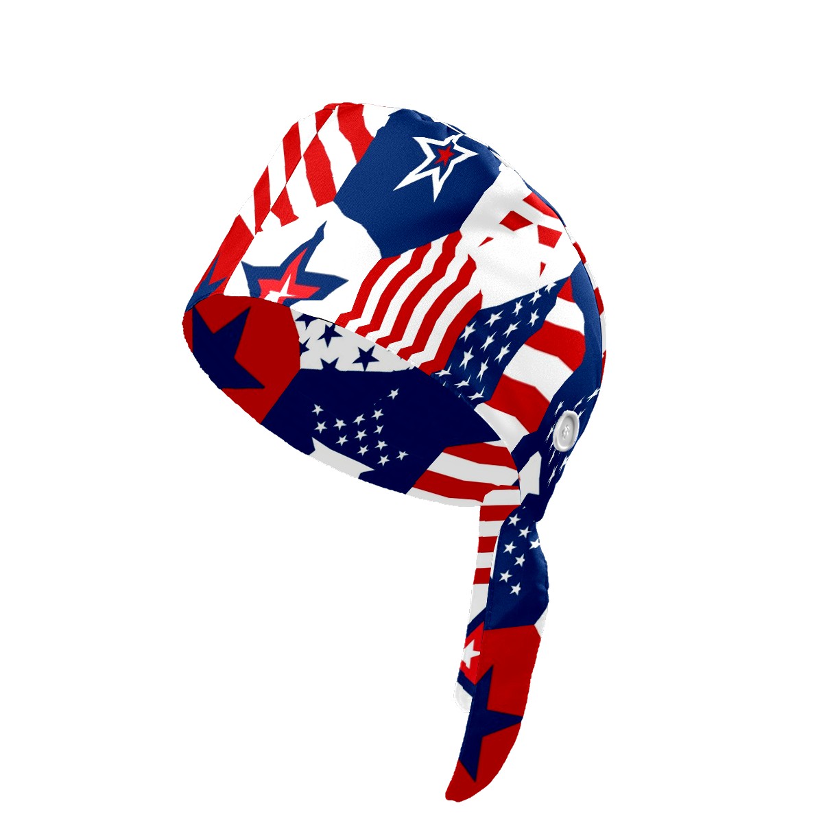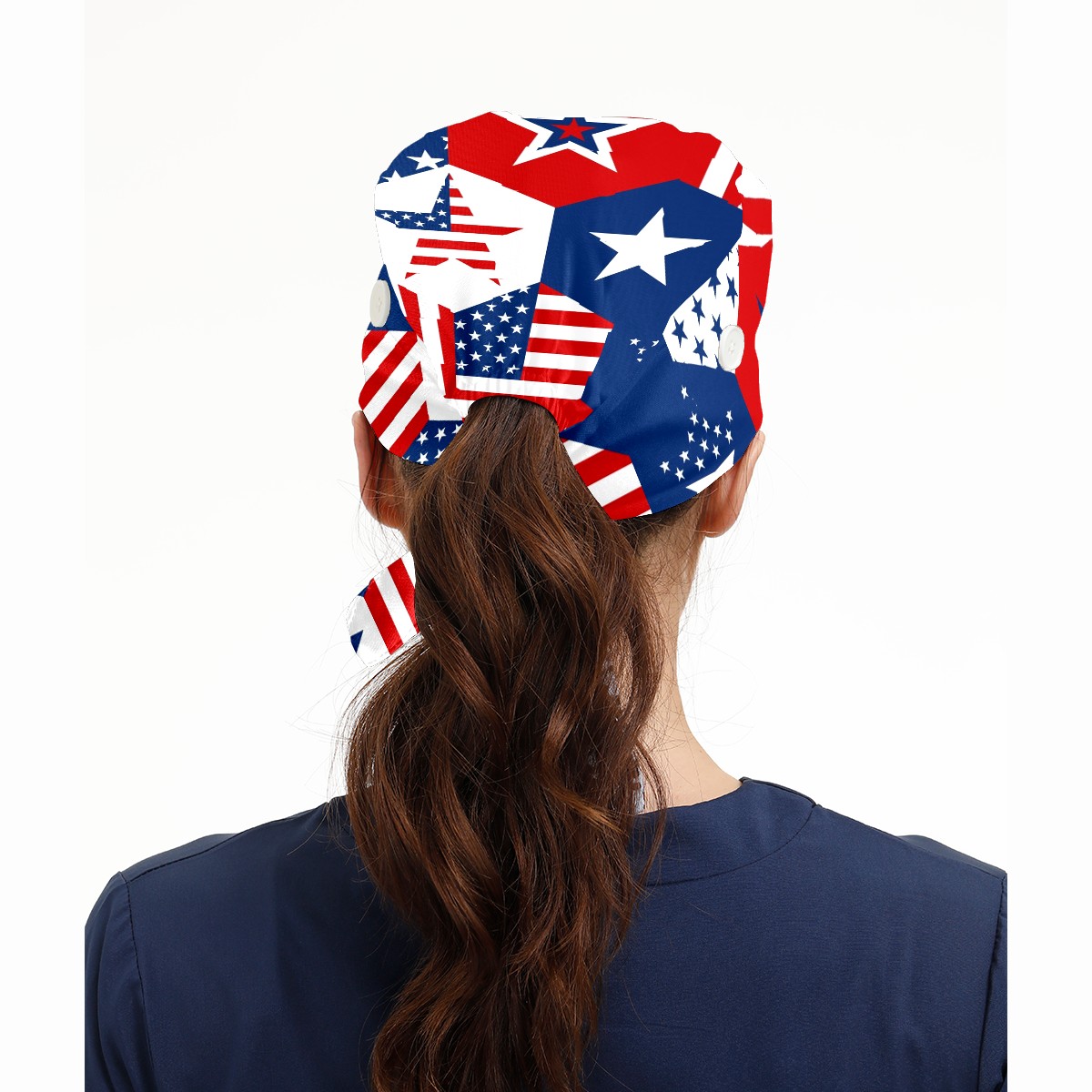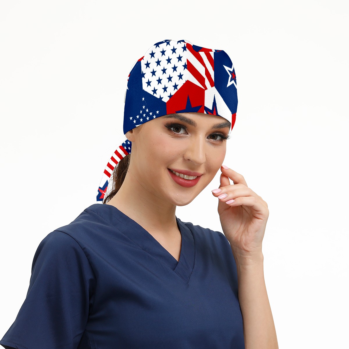 Working Caps with Button & Sweatband Satin Lined Cotton Adjustable Nurse Hats Elastic Band Scrub Cap Surgeon Hat American Stars USA Flag