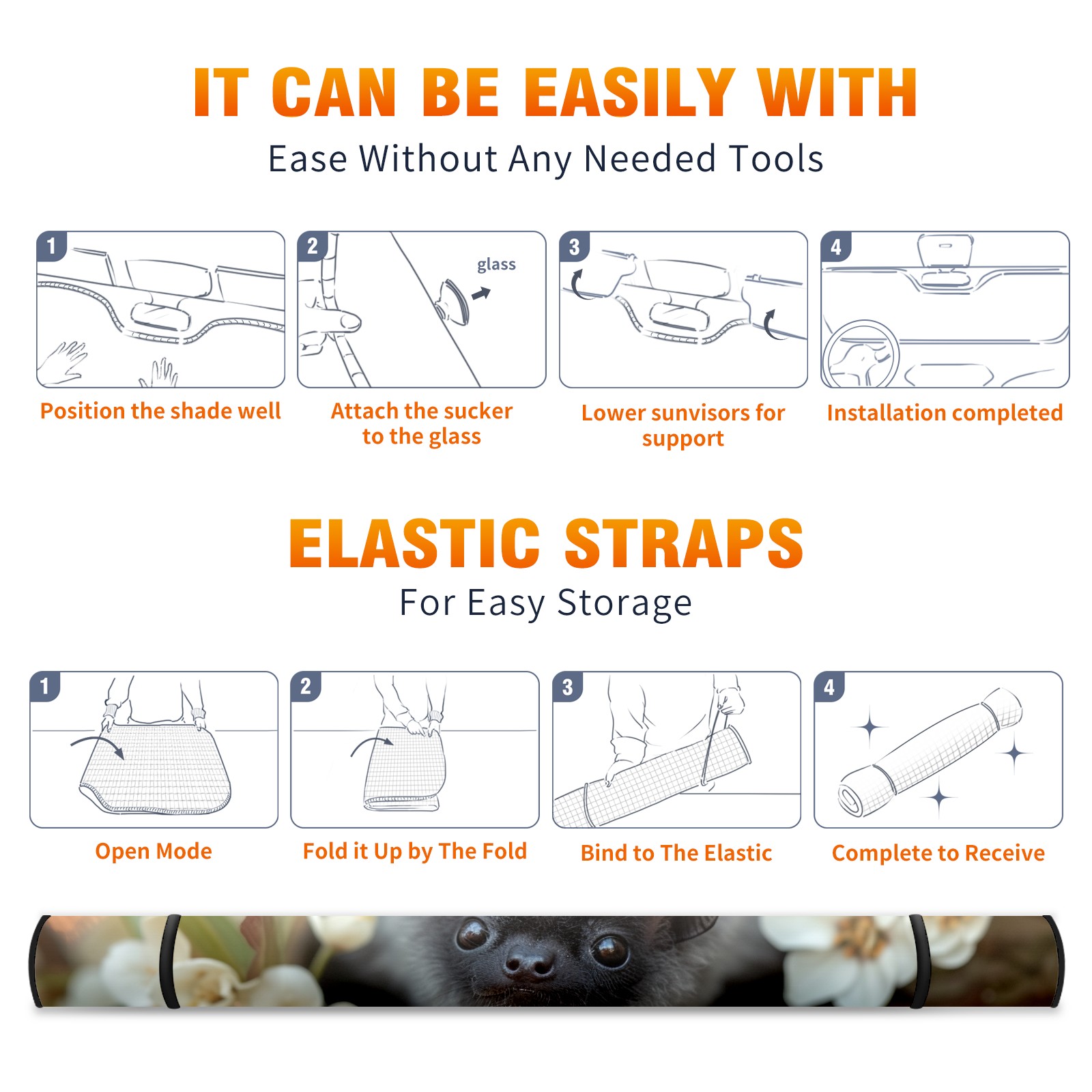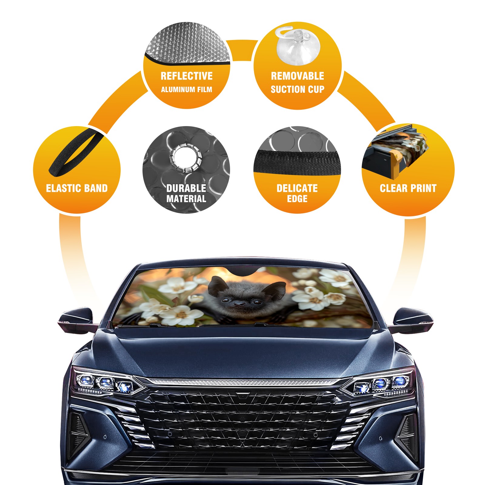 Car Windshield Sun Shade for Front Window Bats Foldable Vehicle Windshield Car Sun Visor Covers Automotive Window Protector Car Privacy Sun Blocker