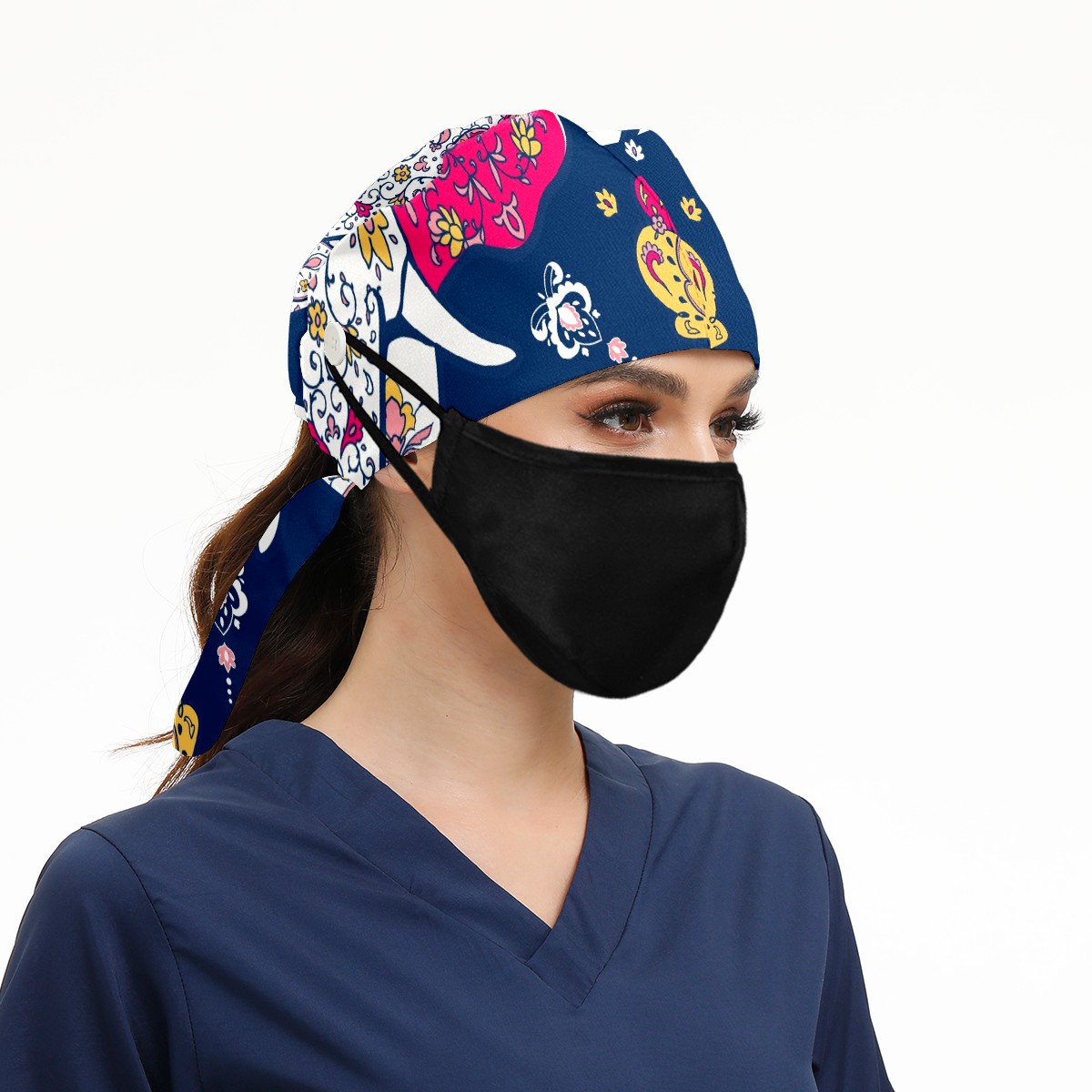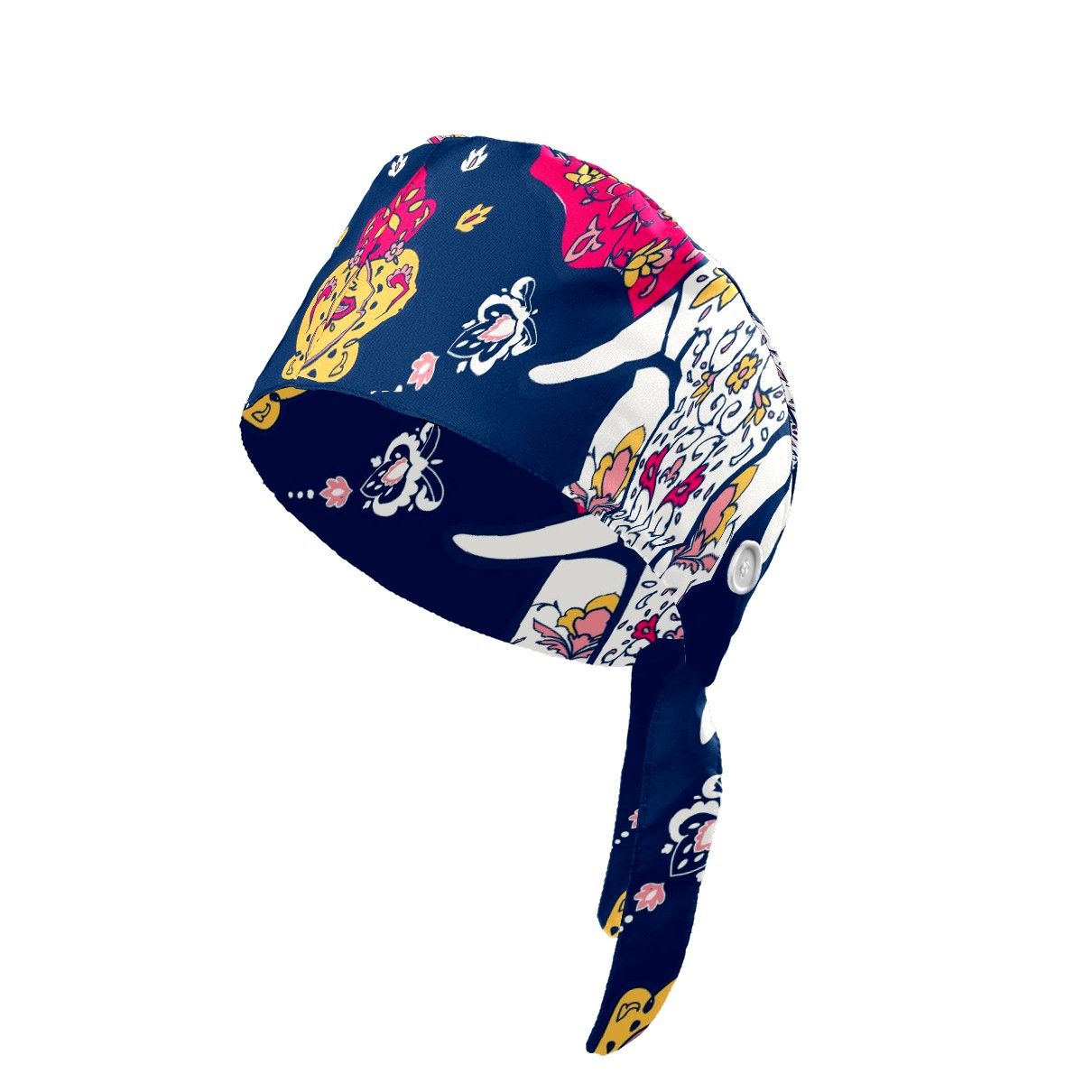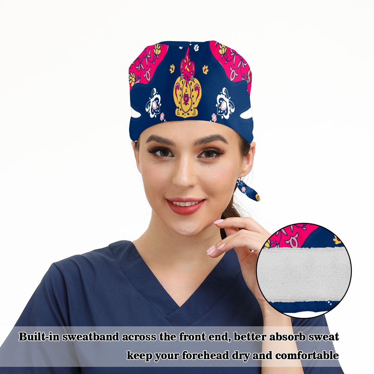 Working Caps with Button & Sweatband Satin Lined Cotton Adjustable Nurse Hats Elastic Band Scrub Cap Surgeon Hat Mandala And Elephant