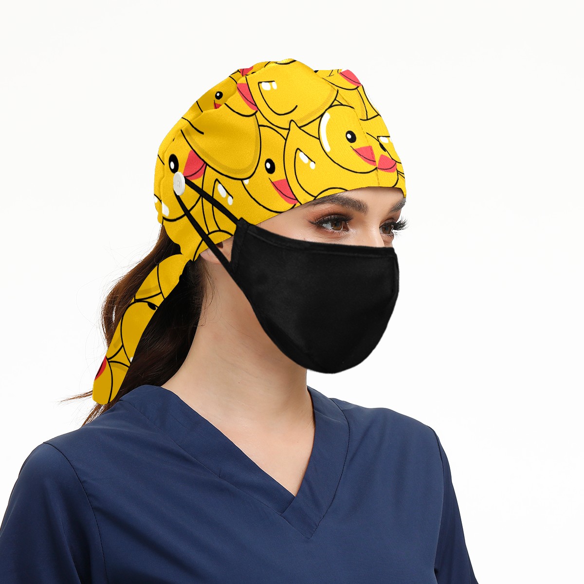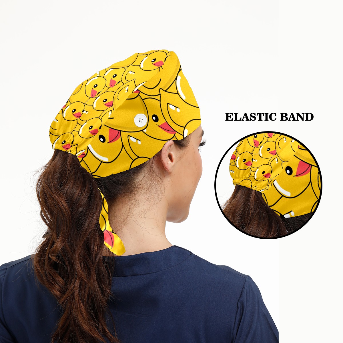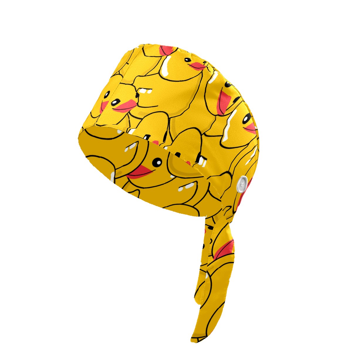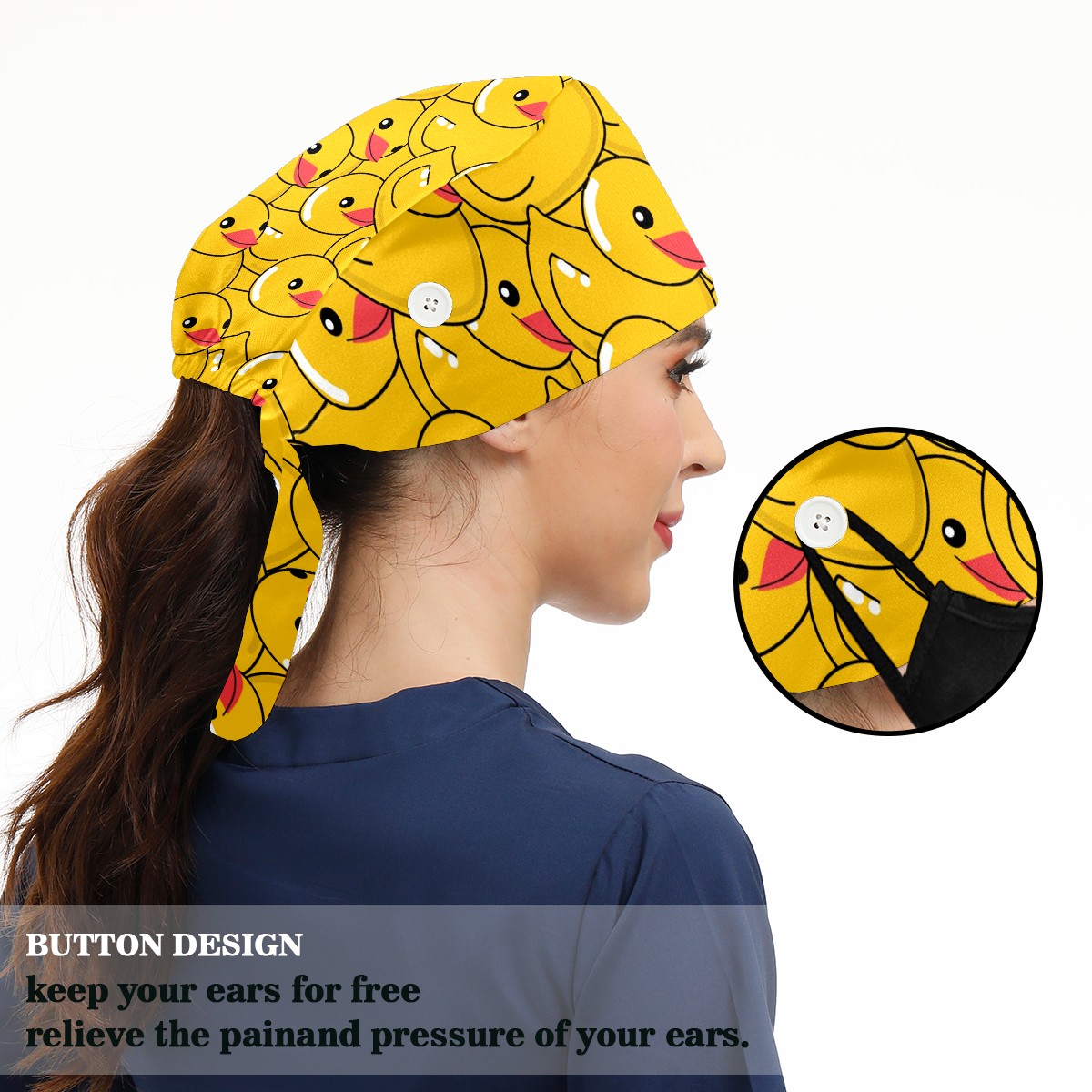 Working Caps with Button & Sweatband Satin Lined Cotton Adjustable Nurse Hats Elastic Band Scrub Cap Surgeon Hat Yellow Duck