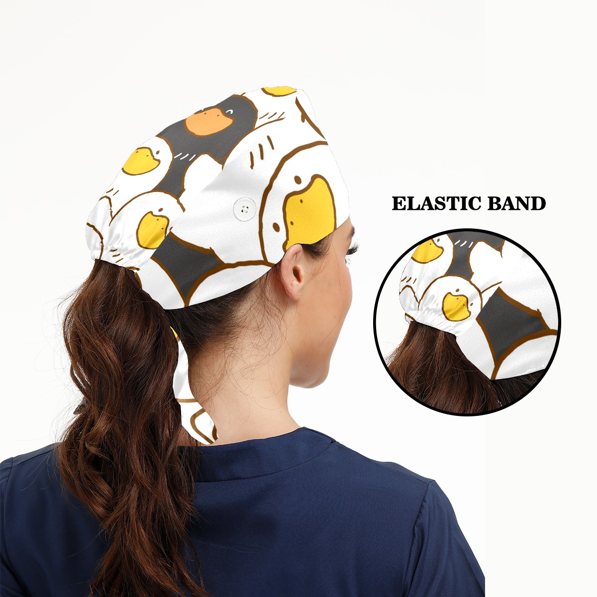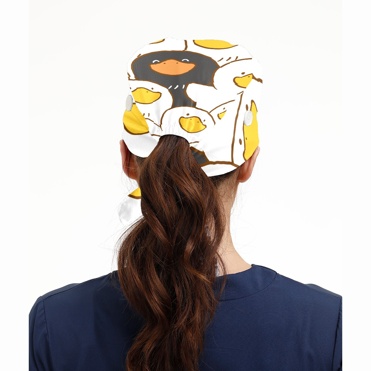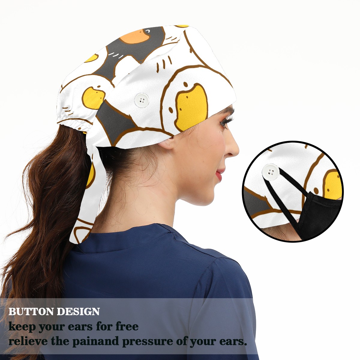 Working Caps with Button & Sweatband Satin Lined Cotton Adjustable Nurse Hats Elastic Band Scrub Cap Surgeon Hat Cute Cartoon Duck