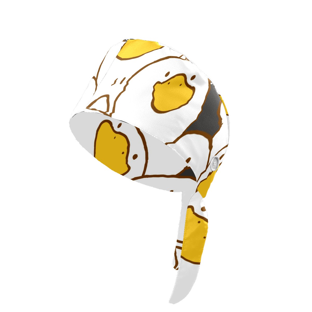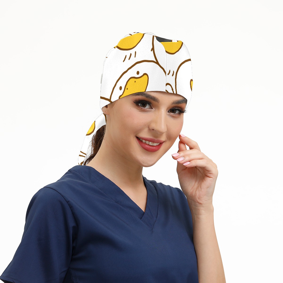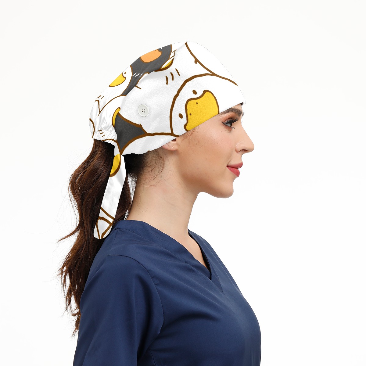 Working Caps with Button & Sweatband Satin Lined Cotton Adjustable Nurse Hats Elastic Band Scrub Cap Surgeon Hat Cute Cartoon Duck