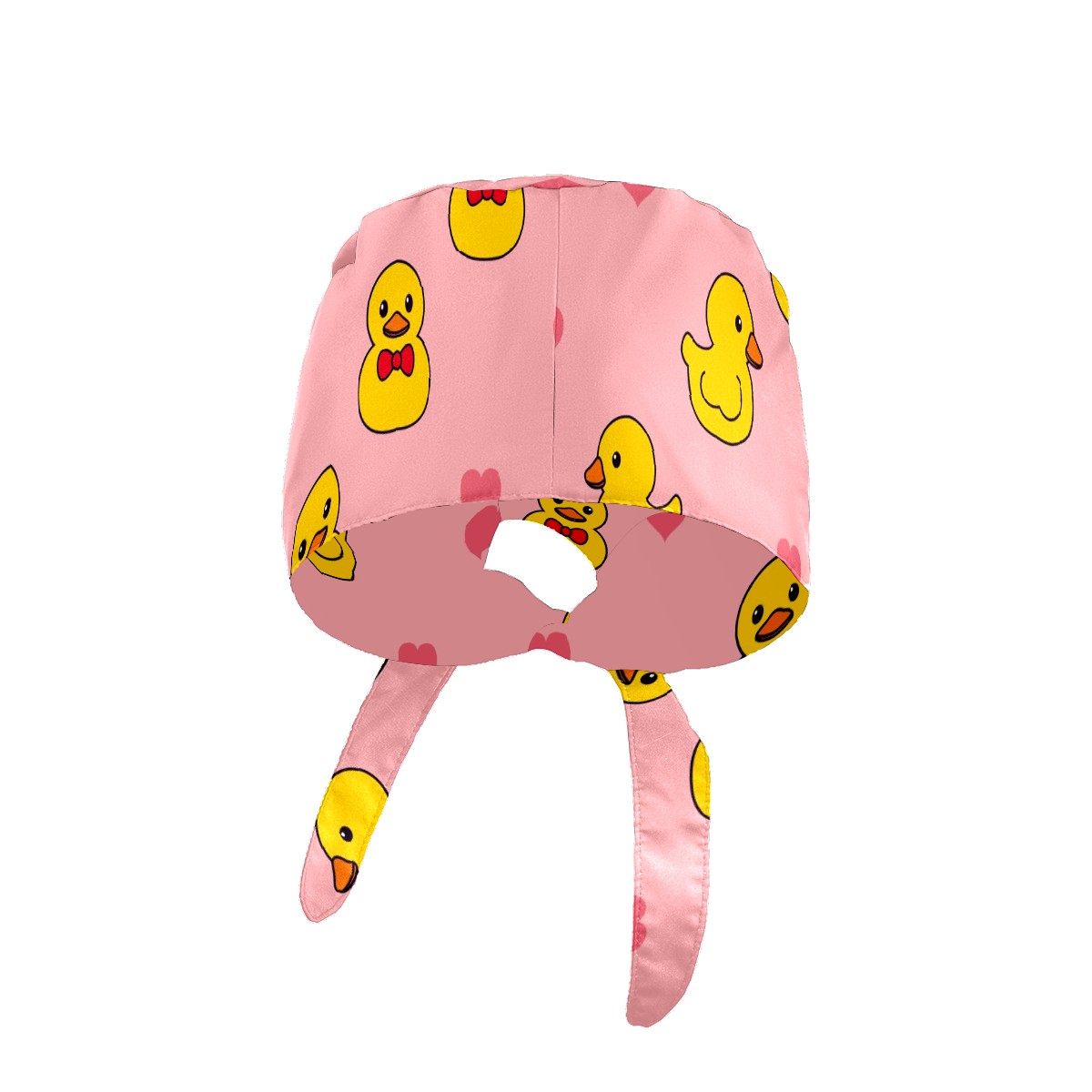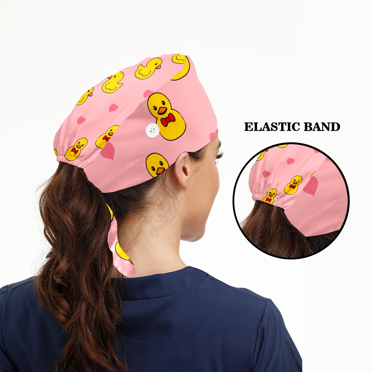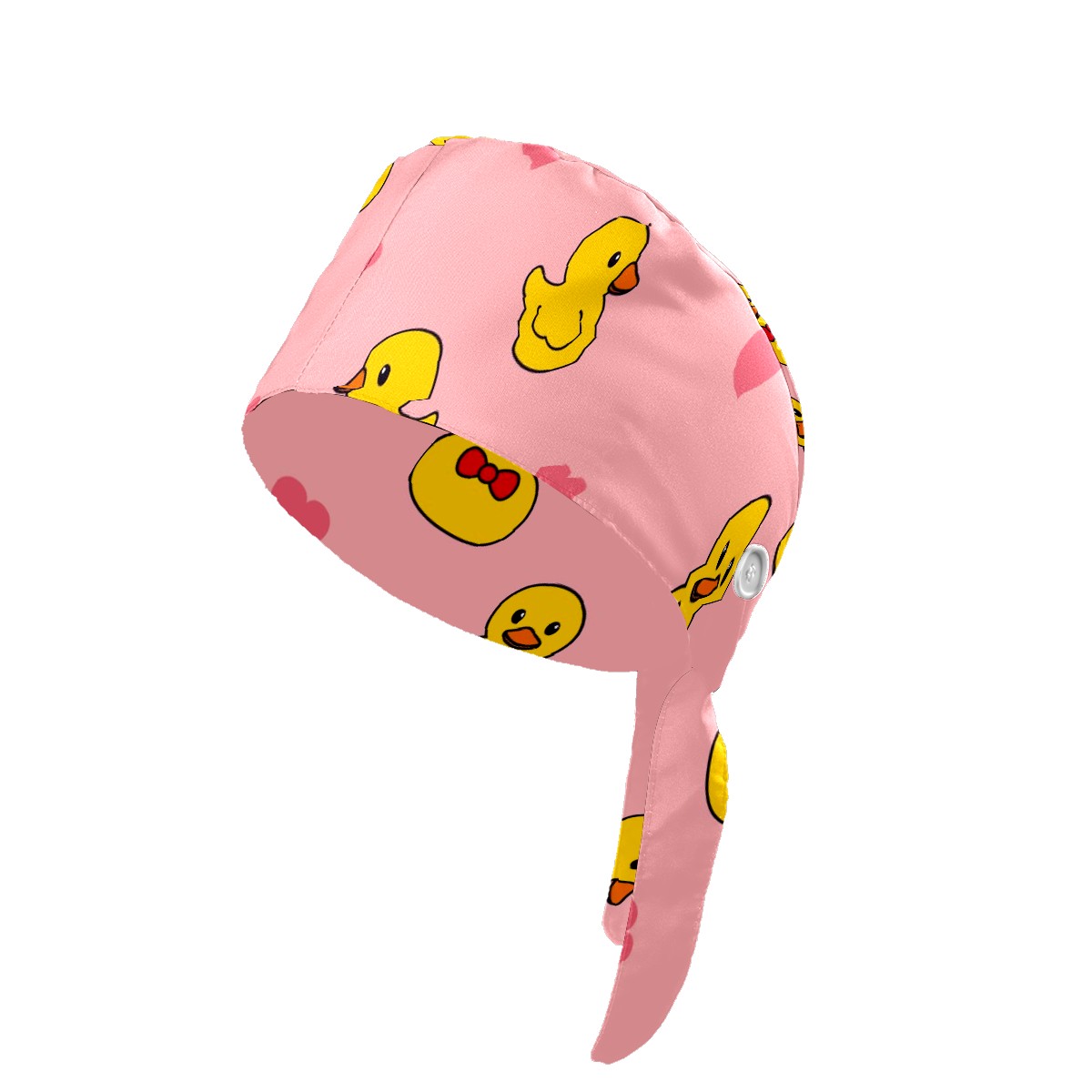 Working Caps with Button & Sweatband Satin Lined Cotton Adjustable Nurse Hats Elastic Band Scrub Cap Surgeon Hat Cute Duck On Pink Background