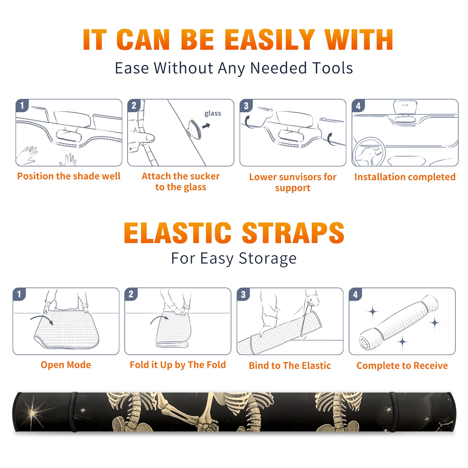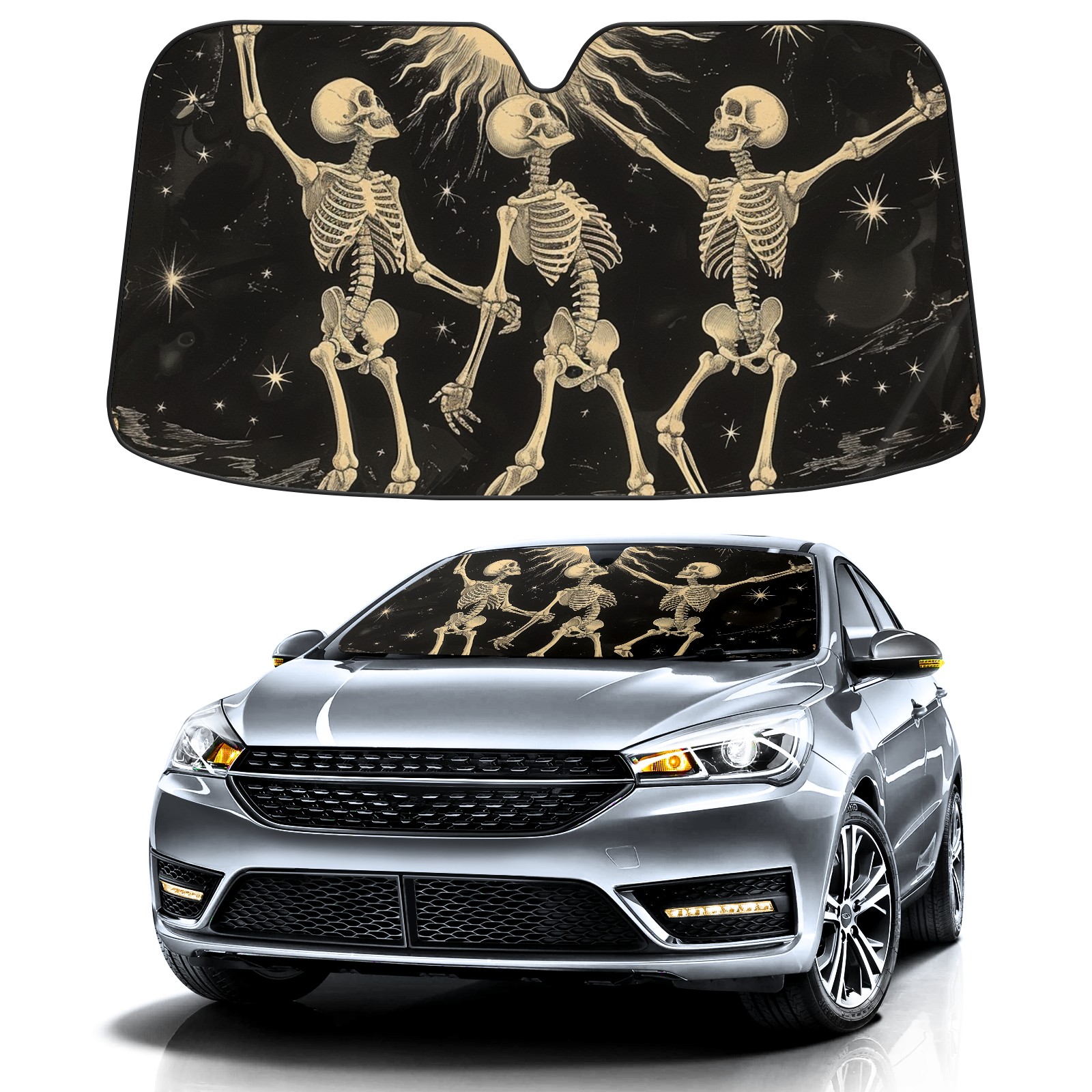 Car Windshield Sun Shade for Front Window Skull Foldable Vehicle Windshield Car Sun Visor Covers Automotive Window Protector Car Privacy Sun Blocker