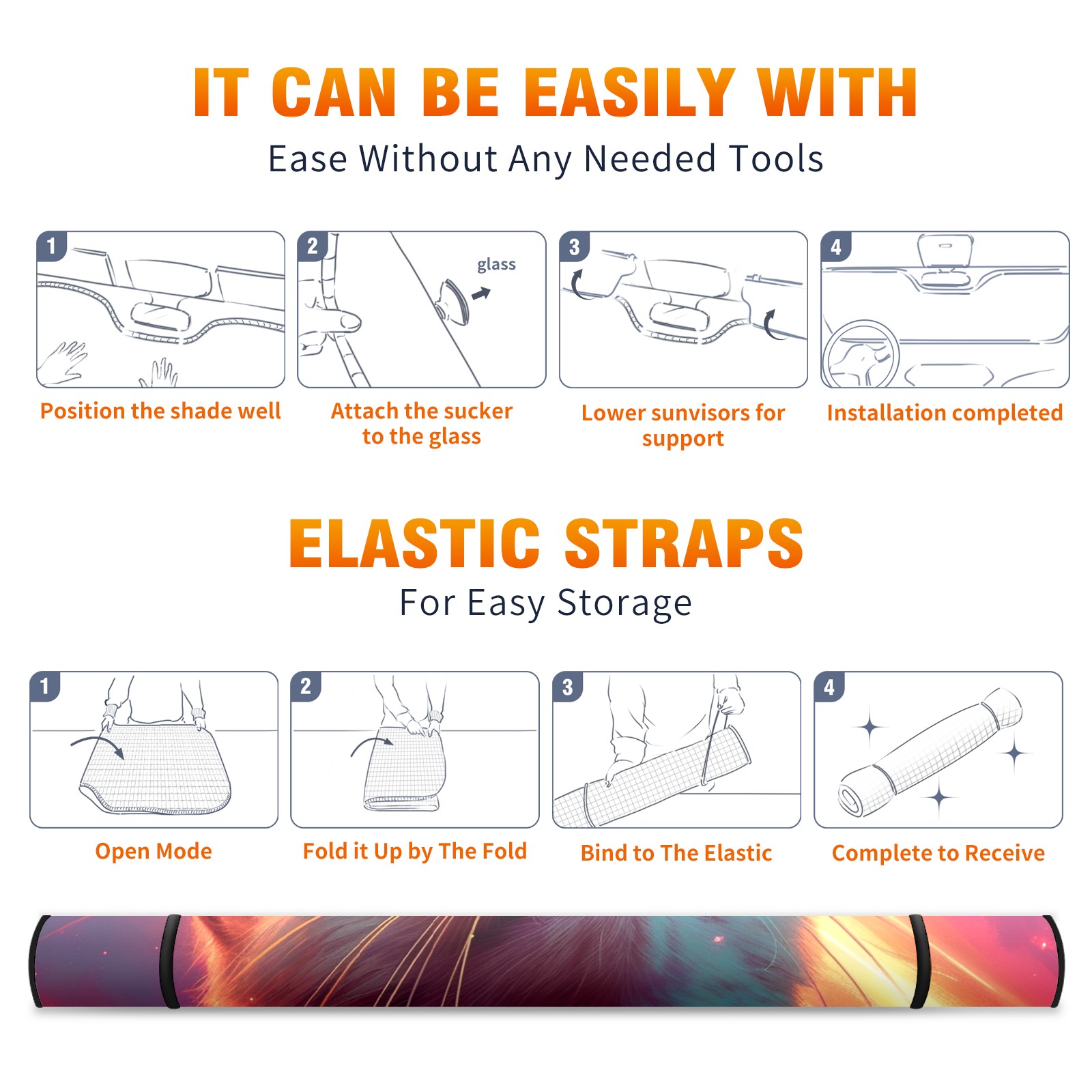 Diameter /Size 63"L x 33.5"W</b><br> Made from excellent materials which makes it sturdy and protects the car from the sun. Easy to use and pack. Makes the interior of the car cooler.You can easily stash the sunshade in the storage bag or store long term.It open and closes easy. Also the leather storage bag is durable and easy to put the umbrella back into.This windshield sunshade provides complete coverage and keeps your car interior cool under direct sun. It is easy to open and position under the windshield and around the rear-view mirror. Makes Your Car Easy To Identify, Perfect For Finding Your Car In Crowded Parking Lots And Garages.Great Choice: It Is A Great Gift For Dad, Boyfriend, Brother, Brother And Uncle, Friends, Classmates, Family And So On.<br> Notice:</b><br> Due To Difference Computer Monitors, The Color Maybe Slightly Different From Picture. As Different Measurement Methods, Measurement Data Will Float Within 2%.I Hope You Understand.<br> If You Have Any Question About The Item Please Do Not Hesitate To Contact Us Immediately And We Will Give You A Satisfactory Reply Within 24 Hours.