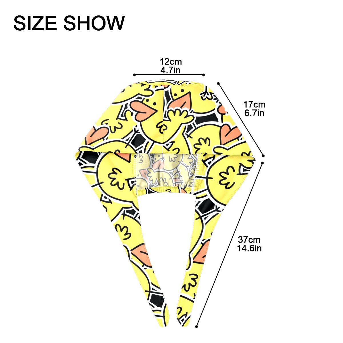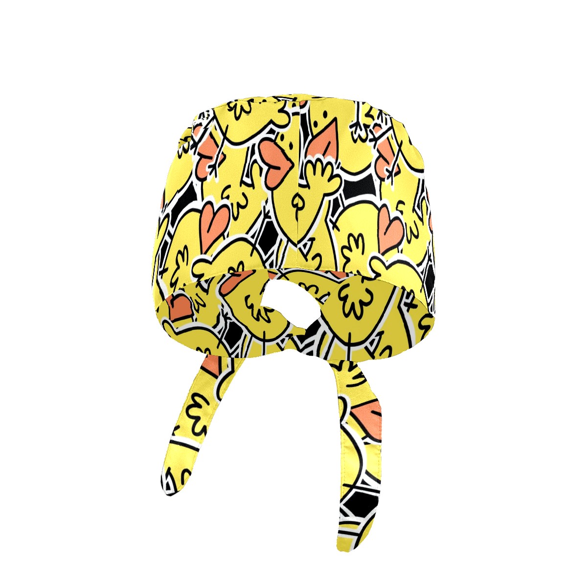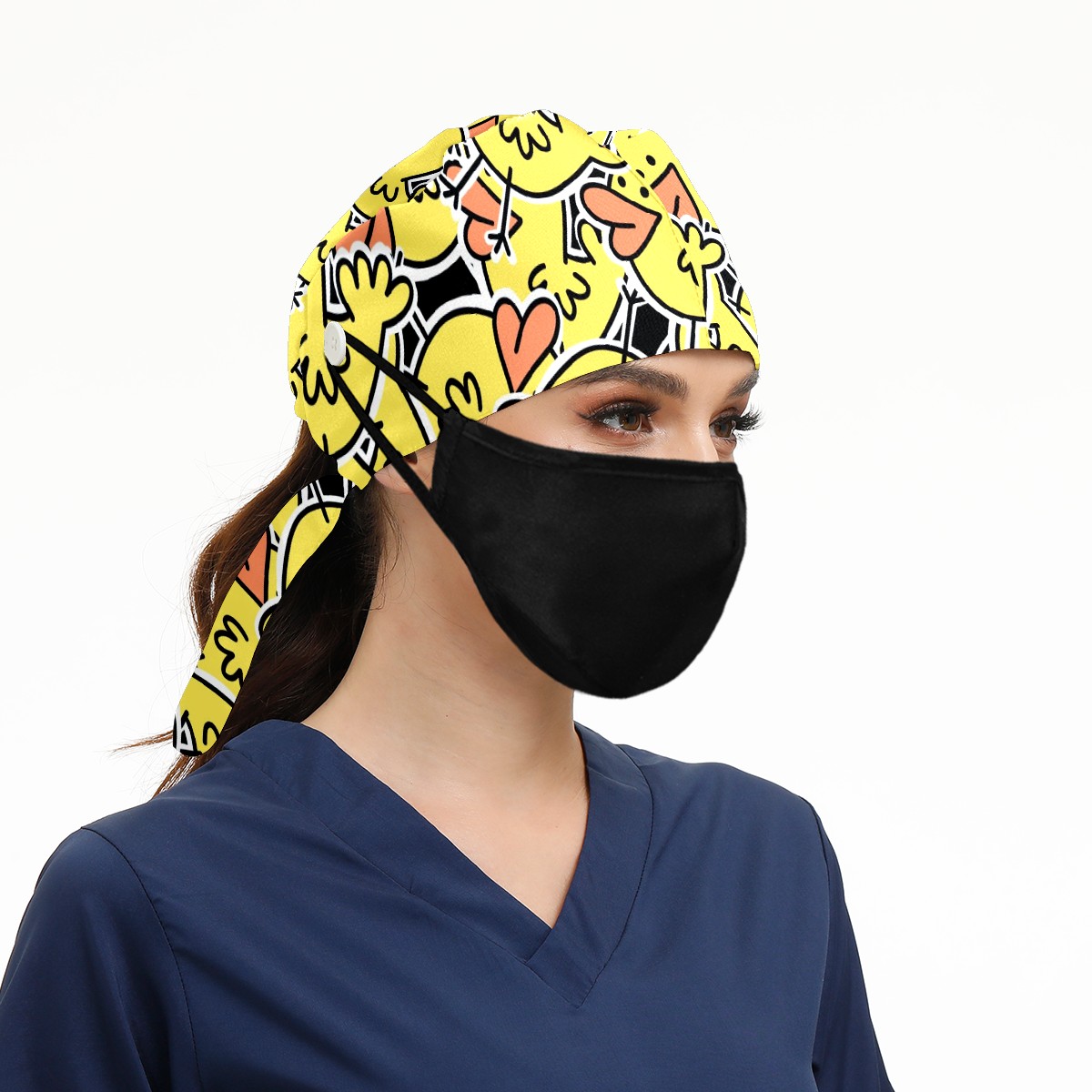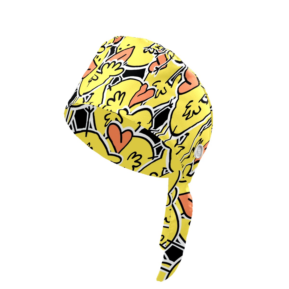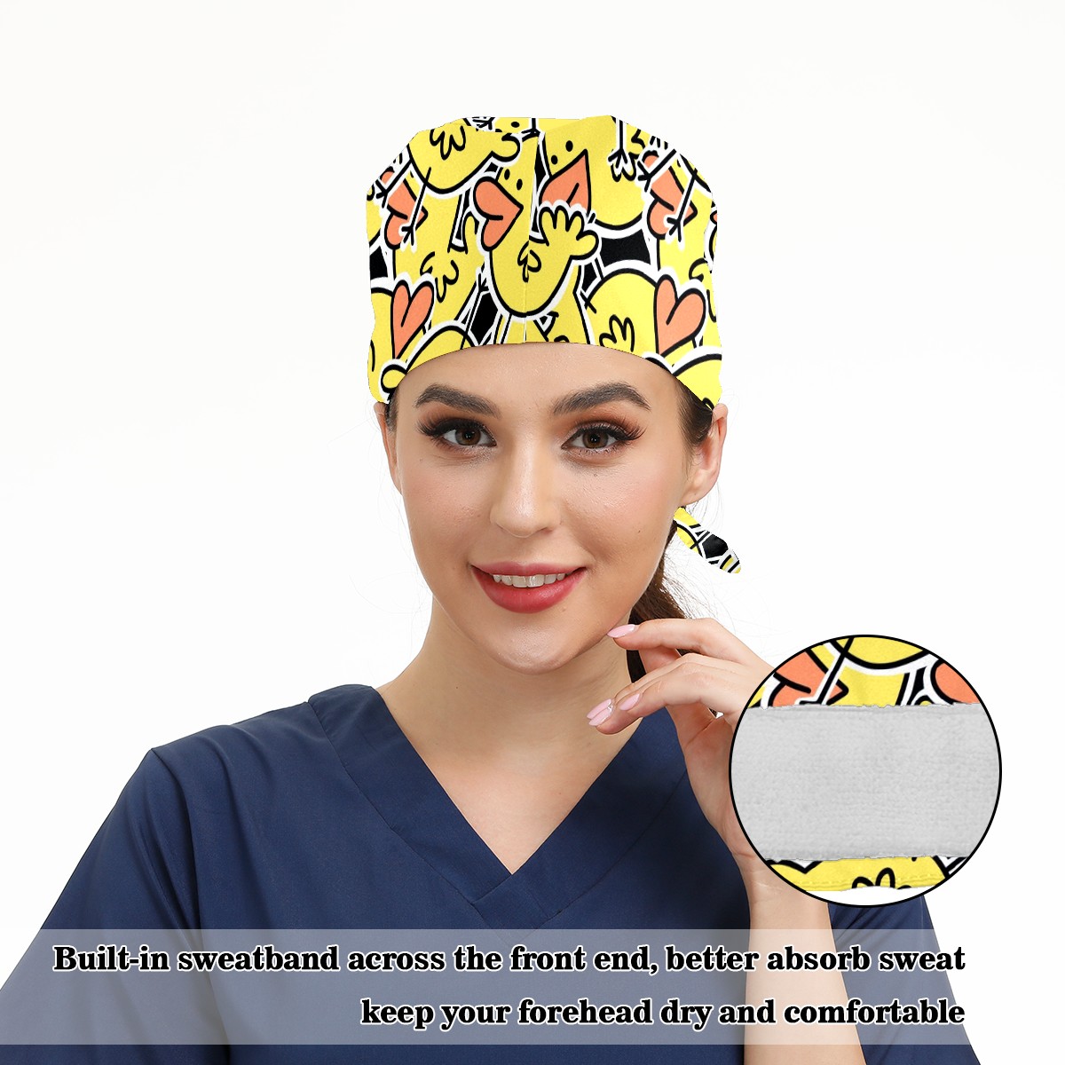 Working Caps with Button & Sweatband Satin Lined Cotton Adjustable Nurse Hats Elastic Band Scrub Cap Surgeon Hat Cute Cartoon Duck Seamless