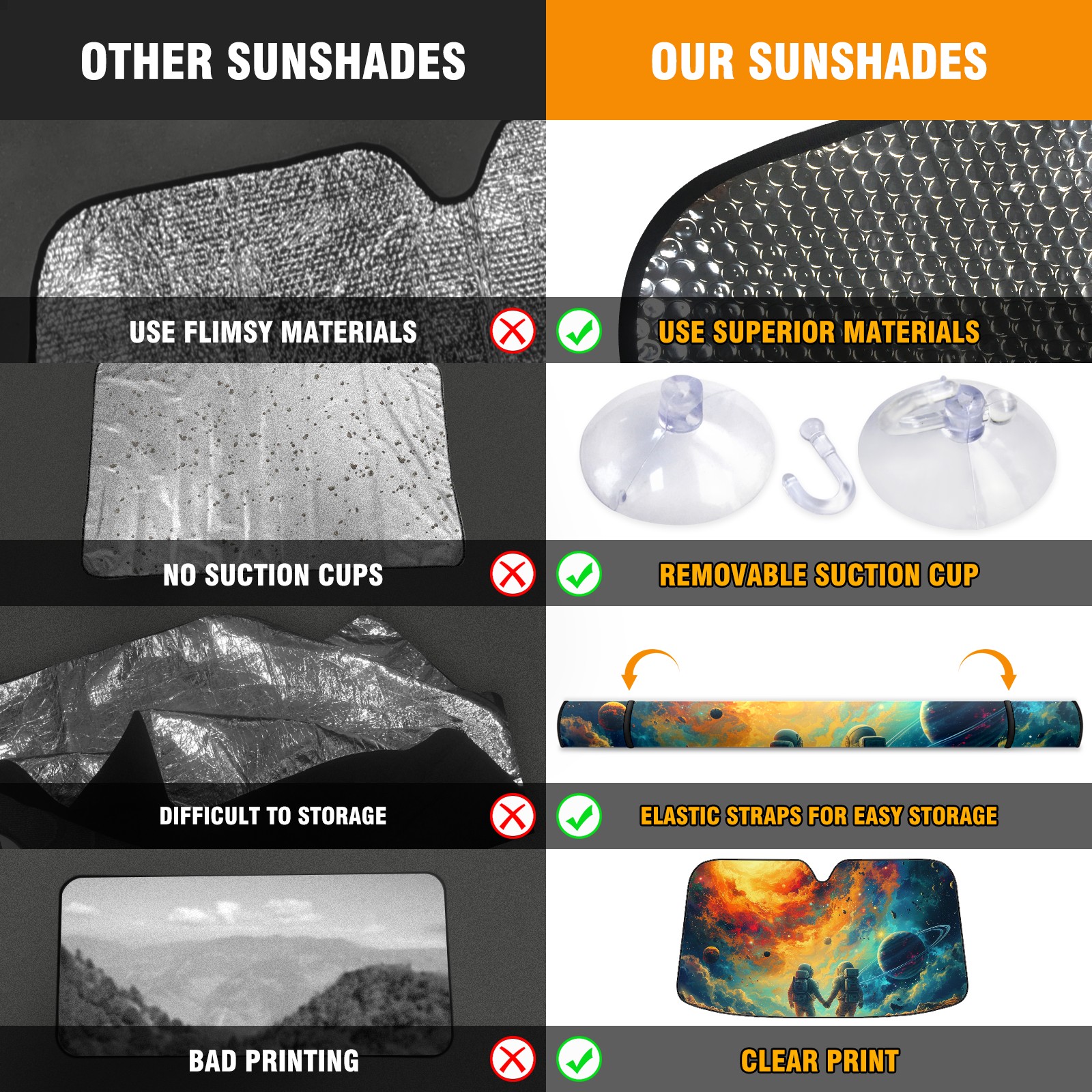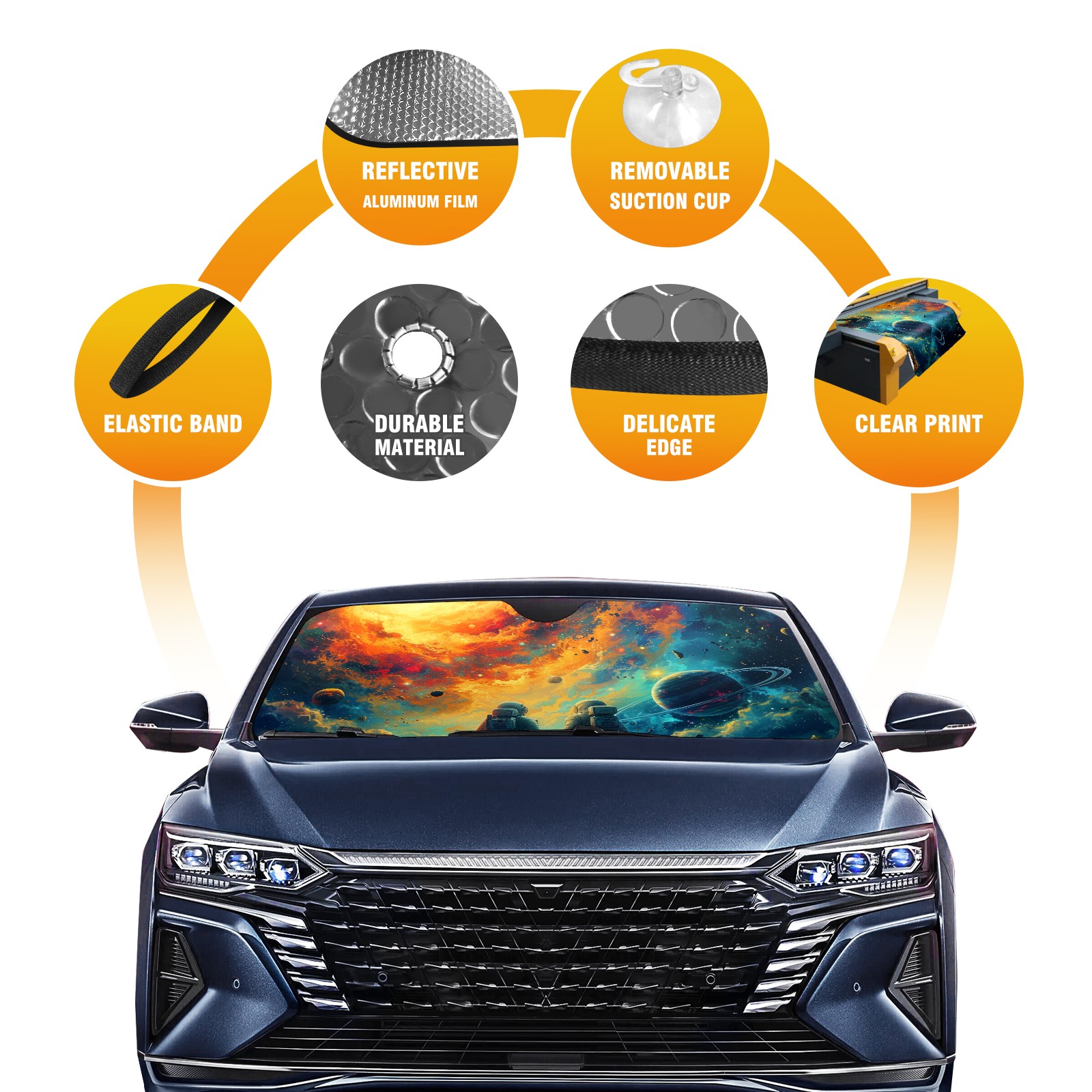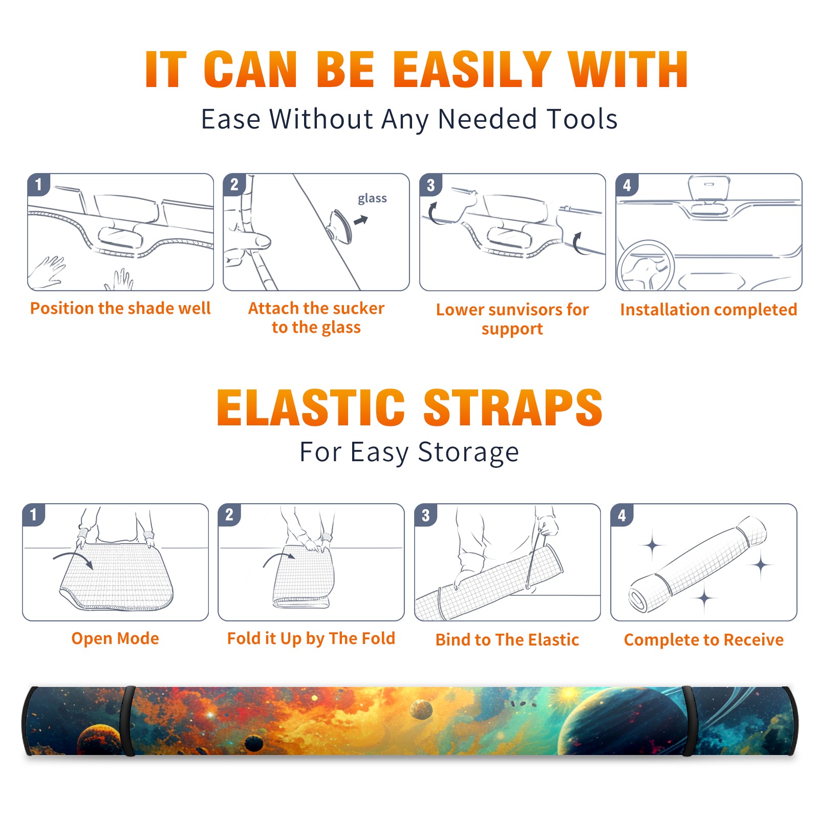 Diameter /Size 63"L x 33.5"W</b><br> Made from excellent materials which makes it sturdy and protects the car from the sun. Easy to use and pack. Makes the interior of the car cooler.You can easily stash the sunshade in the storage bag or store long term.It open and closes easy. Also the leather storage bag is durable and easy to put the umbrella back into.This windshield sunshade provides complete coverage and keeps your car interior cool under direct sun. It is easy to open and position under the windshield and around the rear-view mirror. Makes Your Car Easy To Identify, Perfect For Finding Your Car In Crowded Parking Lots And Garages.Great Choice: It Is A Great Gift For Dad, Boyfriend, Brother, Brother And Uncle, Friends, Classmates, Family And So On.<br> Notice:</b><br> Due To Difference Computer Monitors, The Color Maybe Slightly Different From Picture. As Different Measurement Methods, Measurement Data Will Float Within 2%.I Hope You Understand.<br> If You Have Any Question About The Item Please Do Not Hesitate To Contact Us Immediately And We Will Give You A Satisfactory Reply Within 24 Hours.