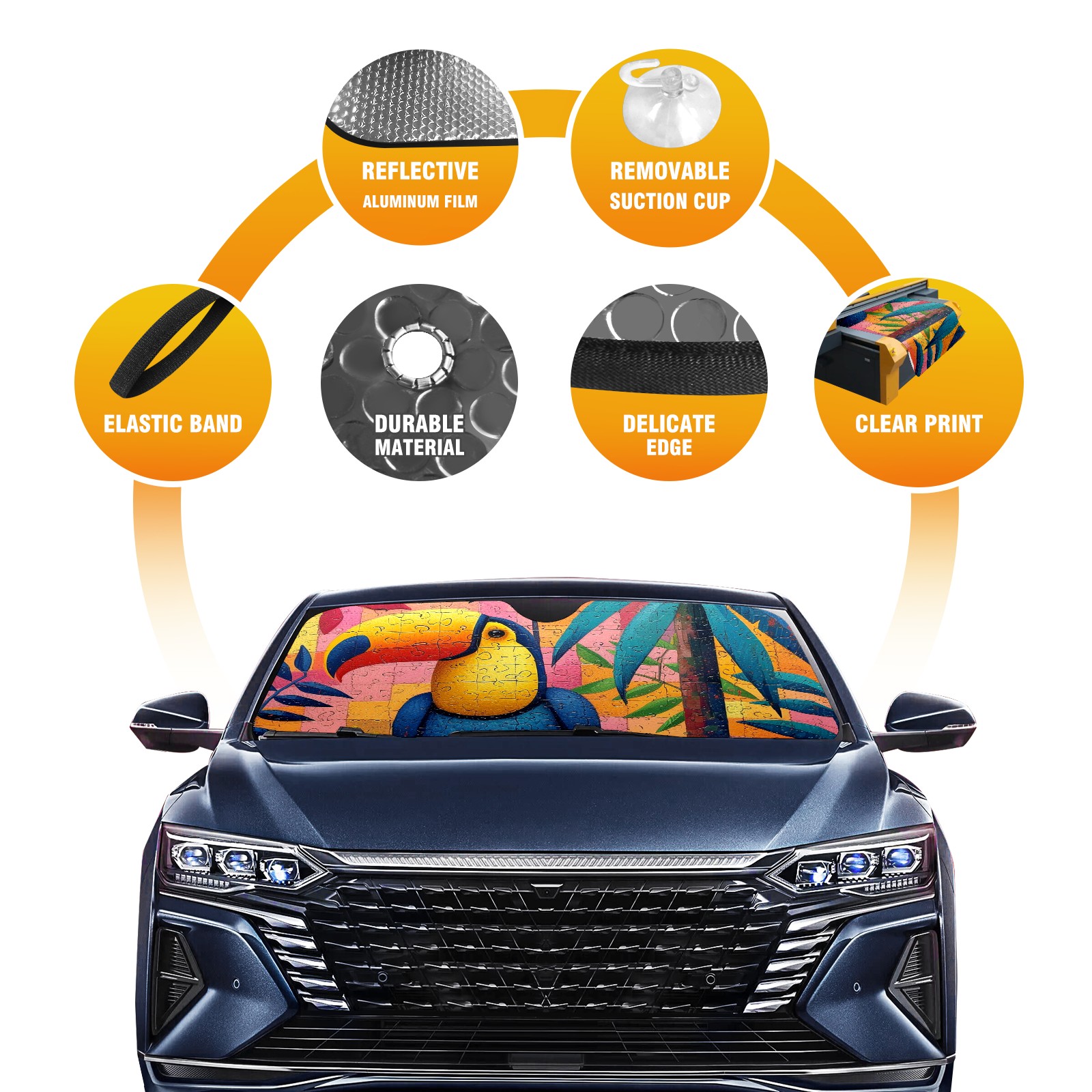 Car Windshield Sun Shade for Front Window Parrot Foldable Vehicle Windshield Car Sun Visor Covers Automotive Window Protector Car Privacy Sun Blocker