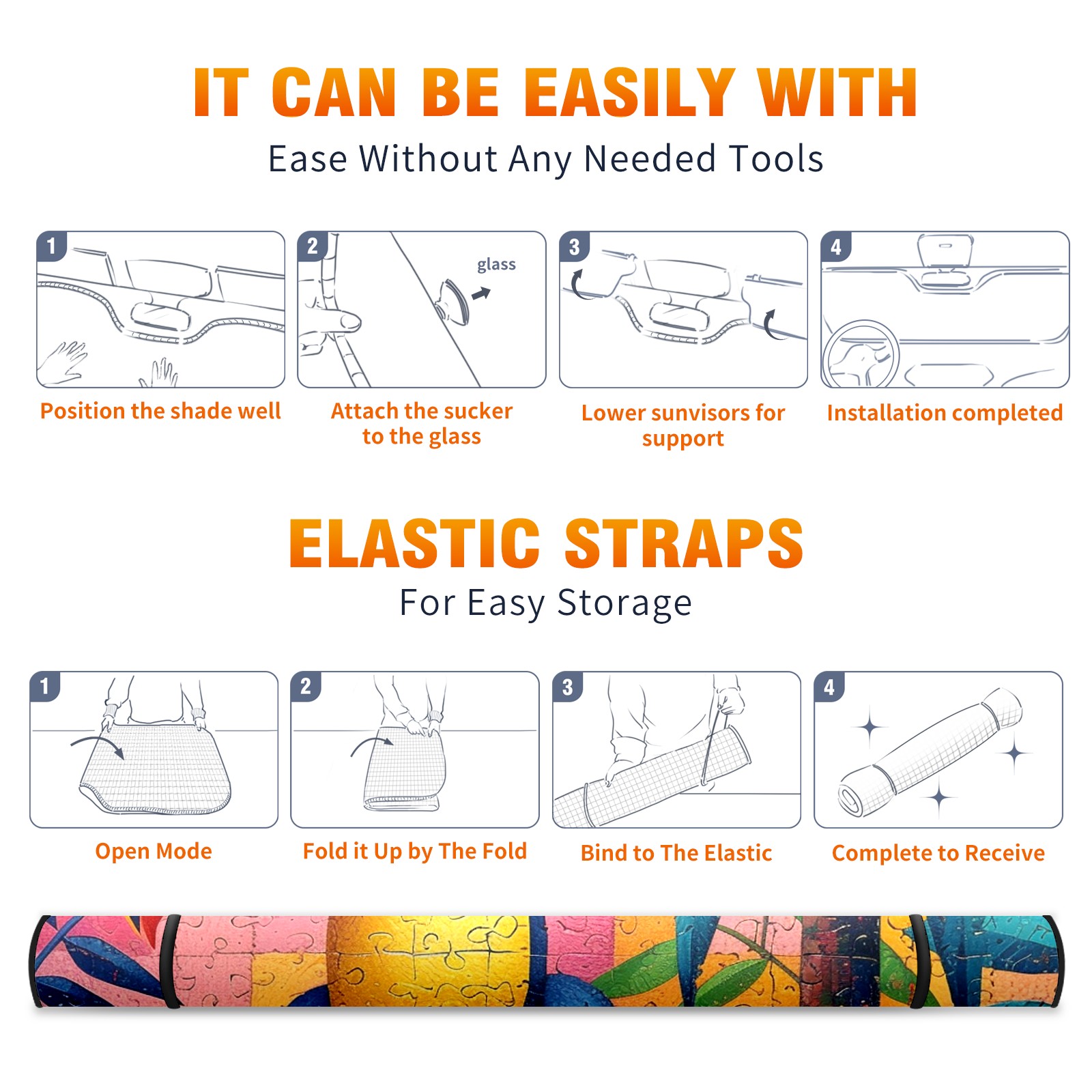 • Diameter /Size 63"L x 33.5"W</b><br> Made from excellent materials which makes it sturdy and protects the car from the sun. Easy to use and pack. Makes the interior of the car cooler.You can easily stash the sunshade in the storage bag or store long term.It open and closes easy. Also the leather storage bag is durable and easy to put the umbrella back into.This windshield sunshade provides complete coverage and keeps your car interior cool under direct sun. It is easy to open and position under the windshield and around the rear-view mirror. Makes Your Car Easy To Identify, Perfect For Finding Your Car In Crowded Parking Lots And Garages.Great Choice: It Is A Great Gift For Dad, Boyfriend, Brother, Brother And Uncle, Friends, Classmates, Family And So On.<br> Notice:</b><br> Due To Difference Computer Monitors, The Color Maybe Slightly Different From Picture. As Different Measurement Methods, Measurement Data Will Float Within 2%.I Hope You Understand.<br> If You Have Any Question About The Item Please Do Not Hesitate To Contact Us Immediately And We Will Give You A Satisfactory Reply Within 24 Hours.
