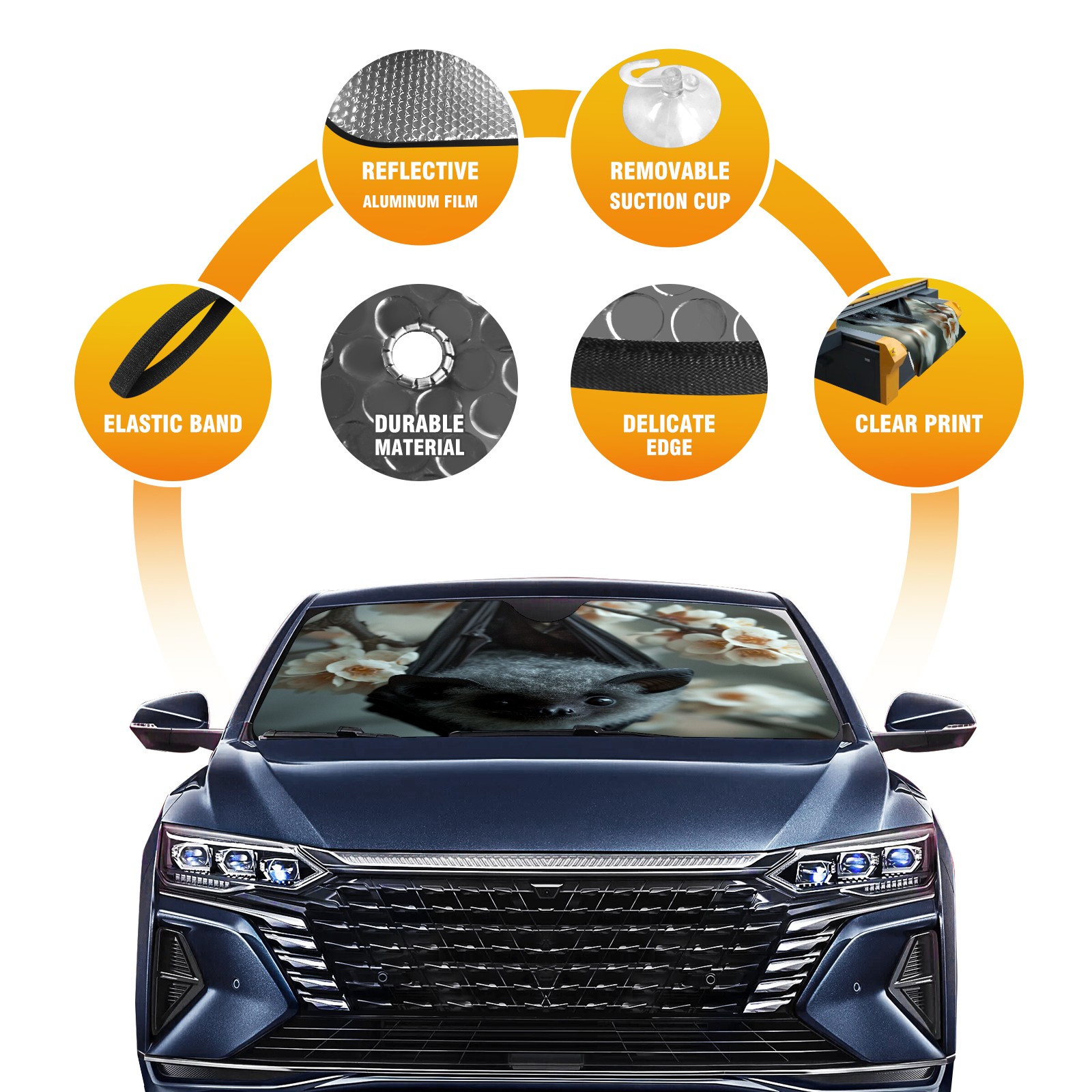 Car Windshield Sun Shade for Front Window Bats Foldable Vehicle Windshield Car Sun Visor Covers Automotive Window Protector Car Privacy Sun Blocker