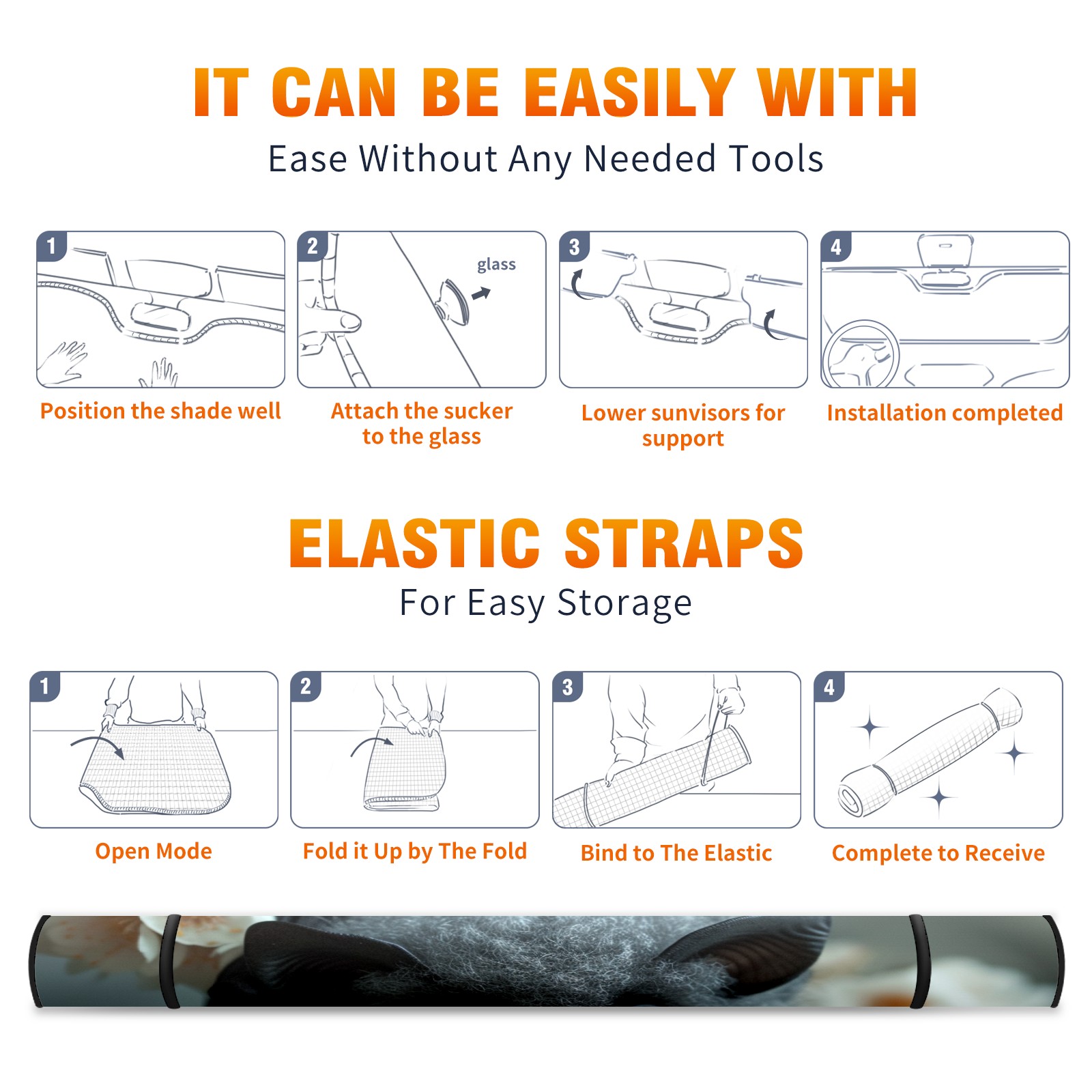 • Diameter /Size 63"L x 33.5"W</b><br> Made from excellent materials which makes it sturdy and protects the car from the sun. Easy to use and pack. Makes the interior of the car cooler.You can easily stash the sunshade in the storage bag or store long term.It open and closes easy. Also the leather storage bag is durable and easy to put the umbrella back into.This windshield sunshade provides complete coverage and keeps your car interior cool under direct sun. It is easy to open and position under the windshield and around the rear-view mirror. Makes Your Car Easy To Identify, Perfect For Finding Your Car In Crowded Parking Lots And Garages.Great Choice: It Is A Great Gift For Dad, Boyfriend, Brother, Brother And Uncle, Friends, Classmates, Family And So On.<br> Notice:</b><br> Due To Difference Computer Monitors, The Color Maybe Slightly Different From Picture. As Different Measurement Methods, Measurement Data Will Float Within 2%.I Hope You Understand.<br> If You Have Any Question About The Item Please Do Not Hesitate To Contact Us Immediately And We Will Give You A Satisfactory Reply Within 24 Hours.