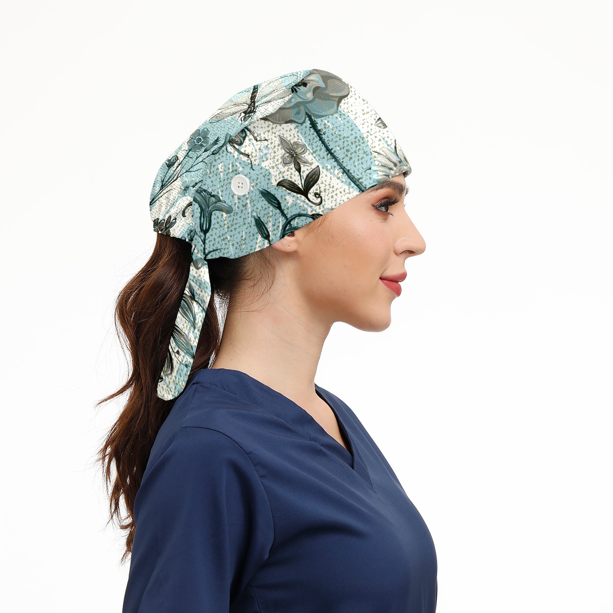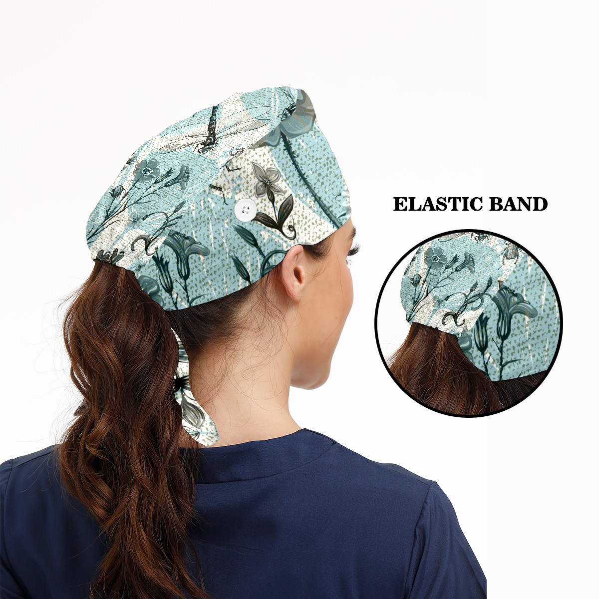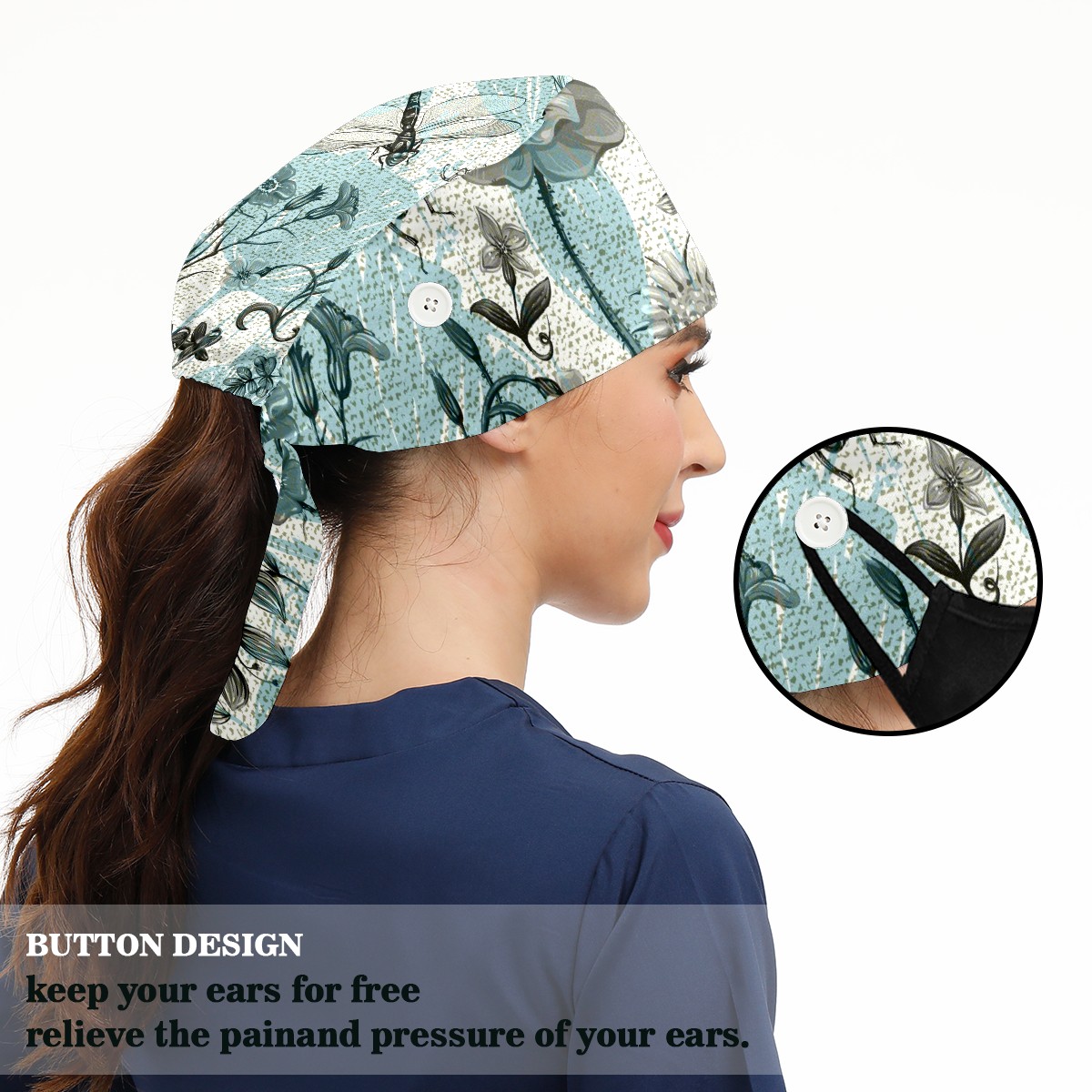 Working Caps with Button & Sweatband Satin Lined Cotton Adjustable Nurse Hats Elastic Band Scrub Cap Surgeon Hat Summer Vintage Butterfly Dragonfly Beetle And Plant