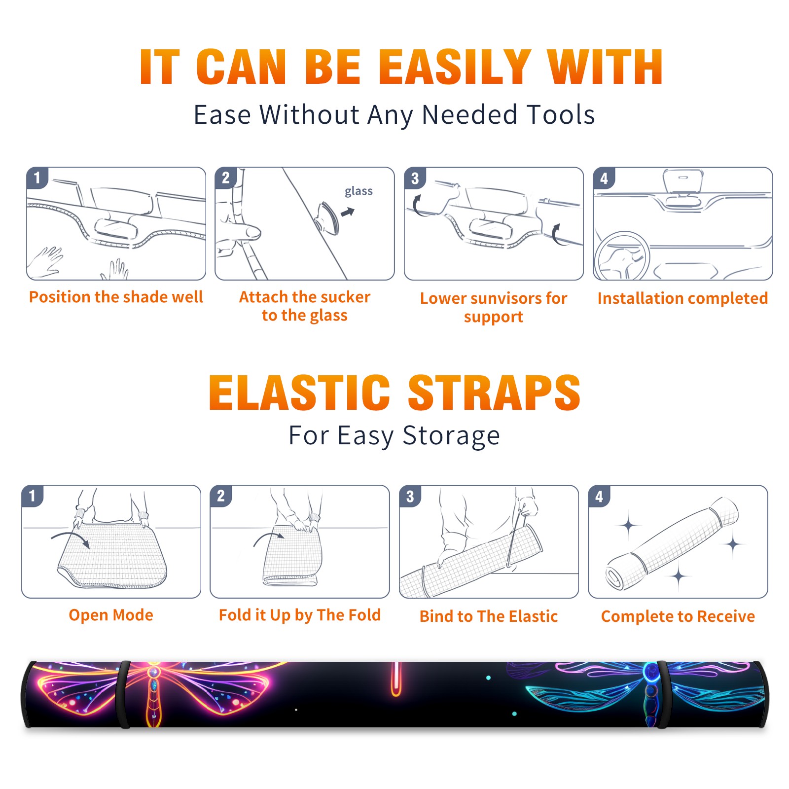 Car Windshield Sun Shade for Front Window Dragonfly (15) Foldable Vehicle Windshield Car Sun Visor Covers Automotive Window Protector Car Privacy Sun Blocker