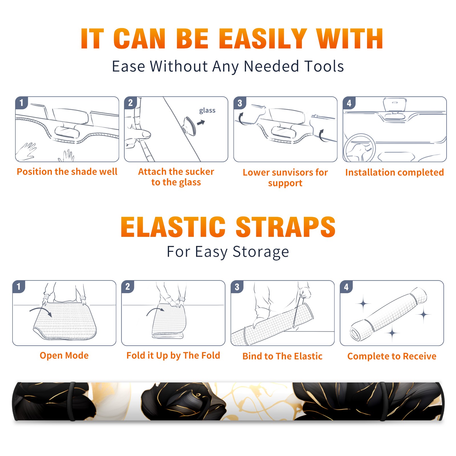 Car Windshield Sun Shade for Front Window Flower (620) Foldable Vehicle Windshield Car Sun Visor Covers Automotive Window Protector Car Privacy Sun Blocker