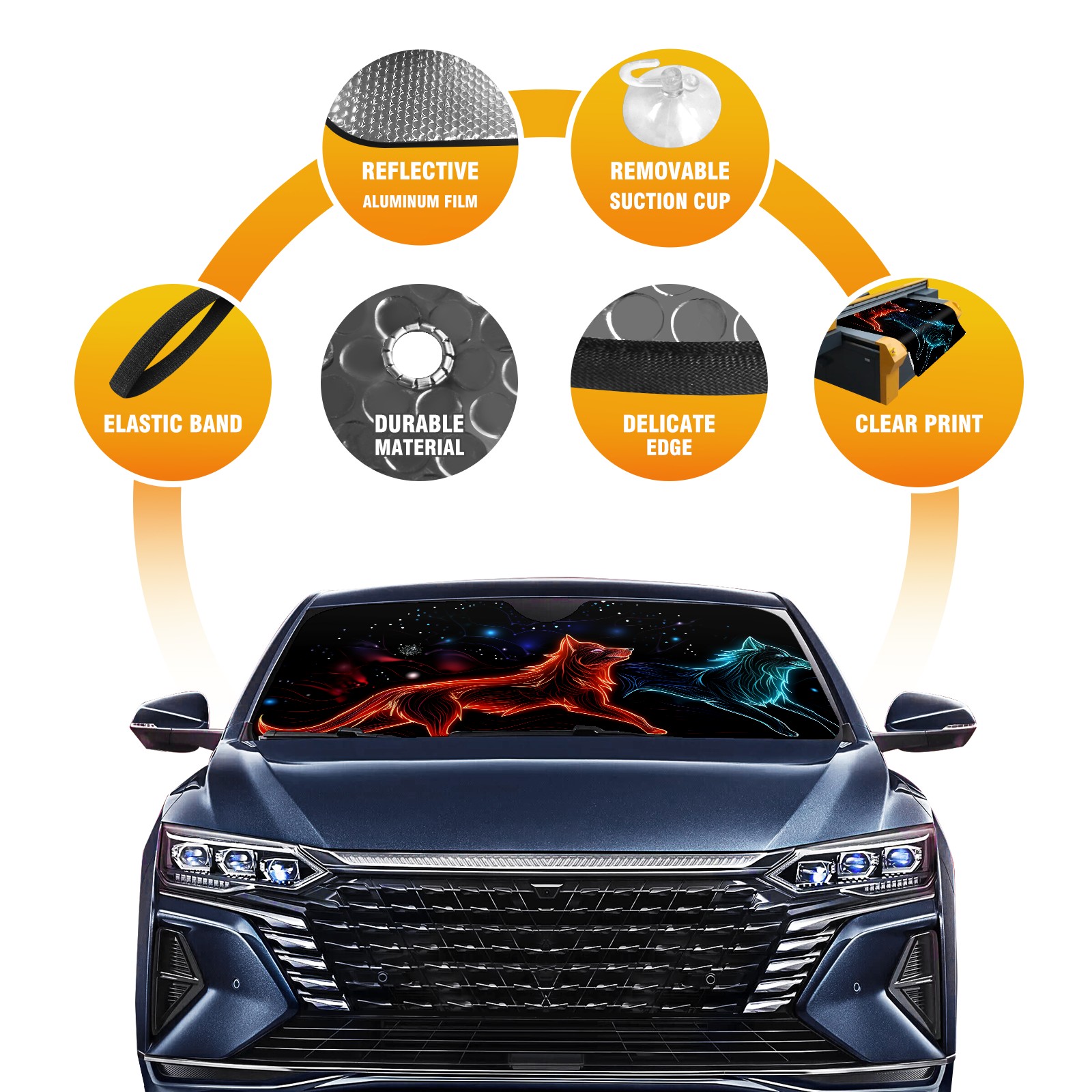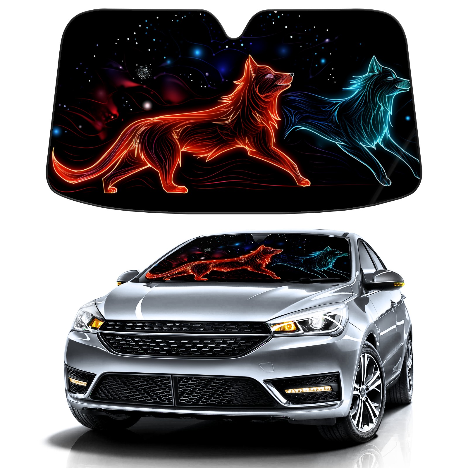 Car Windshield Sun Shade for Front Window Wolf (44) Foldable Vehicle Windshield Car Sun Visor Covers Automotive Window Protector Car Privacy Sun Blocker