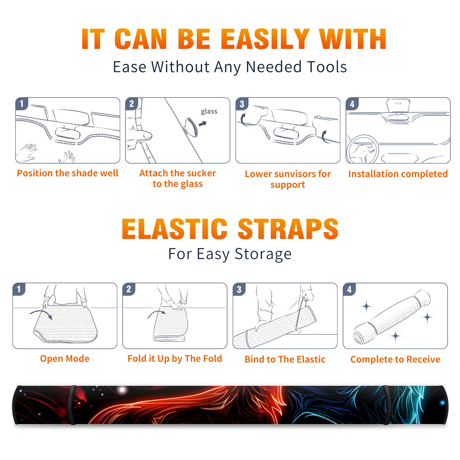 Diameter /Size 63"L x 33.5"W</b><br> Made from excellent materials which makes it sturdy and protects the car from the sun. Easy to use and pack. Makes the interior of the car cooler.You can easily stash the sunshade in the storage bag or store long term.It open and closes easy. Also the leather storage bag is durable and easy to put the umbrella back into.This windshield sunshade provides complete coverage and keeps your car interior cool under direct sun. It is easy to open and position under the windshield and around the rear-view mirror. Makes Your Car Easy To Identify, Perfect For Finding Your Car In Crowded Parking Lots And Garages.Great Choice: It Is A Great Gift For Dad, Boyfriend, Brother, Brother And Uncle, Friends, Classmates, Family And So On.<br> Notice:</b><br> Due To Difference Computer Monitors, The Color Maybe Slightly Different From Picture. As Different Measurement Methods, Measurement Data Will Float Within 2%.I Hope You Understand.<br> If You Have Any Question About The Item Please Do Not Hesitate To Contact Us Immediately And We Will Give You A Satisfactory Reply Within 24 Hours.