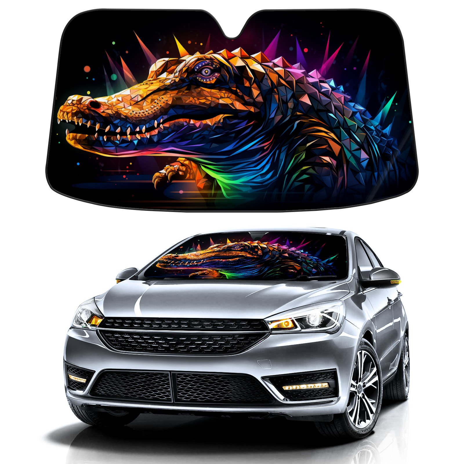 Car Windshield Sun Shade for Front Window Crocodile (21) Foldable Vehicle Windshield Car Sun Visor Covers Automotive Window Protector Car Privacy Sun Blocker