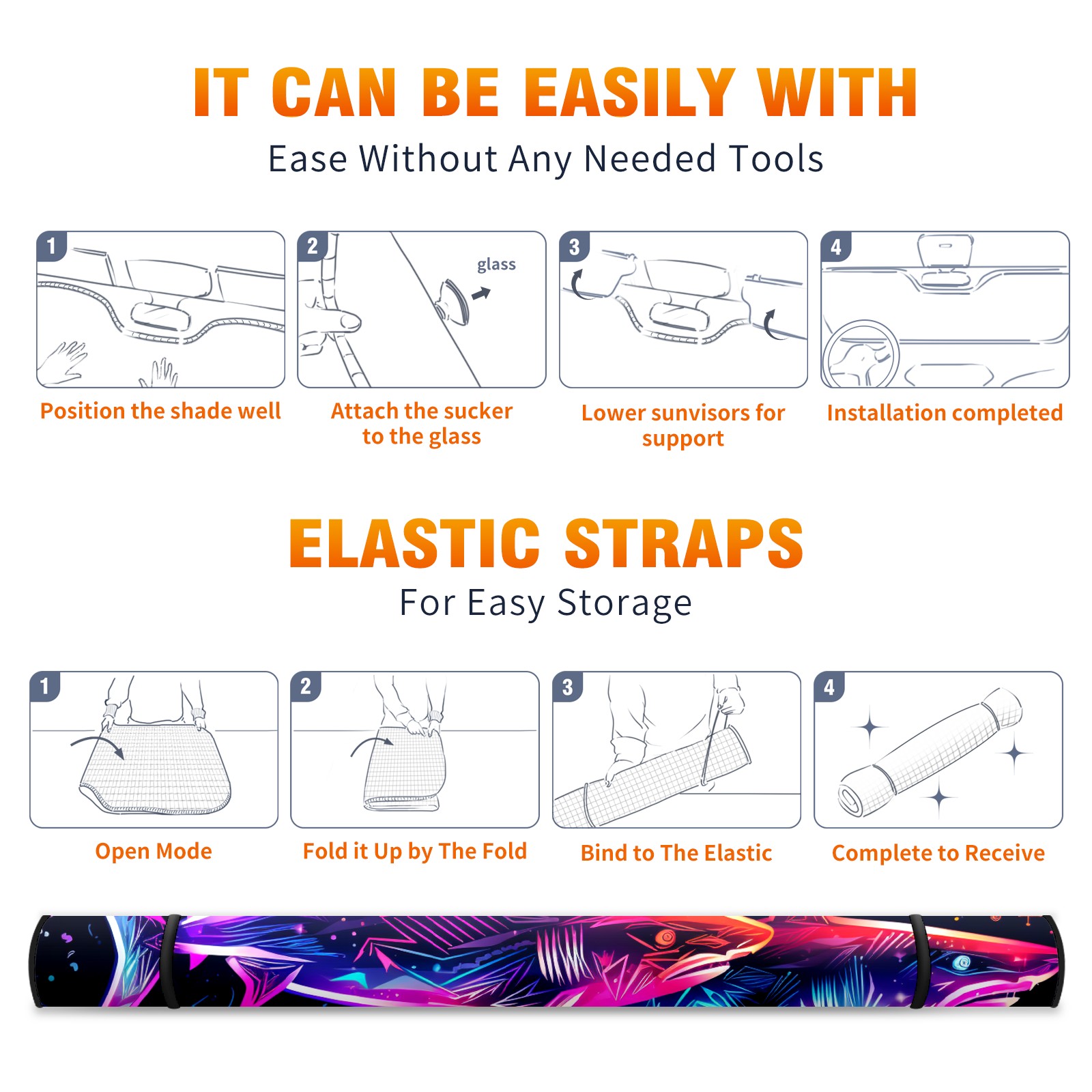 Car Windshield Sun Shade for Front Window Shark (6) Foldable Vehicle Windshield Car Sun Visor Covers Automotive Window Protector Car Privacy Sun Blocker