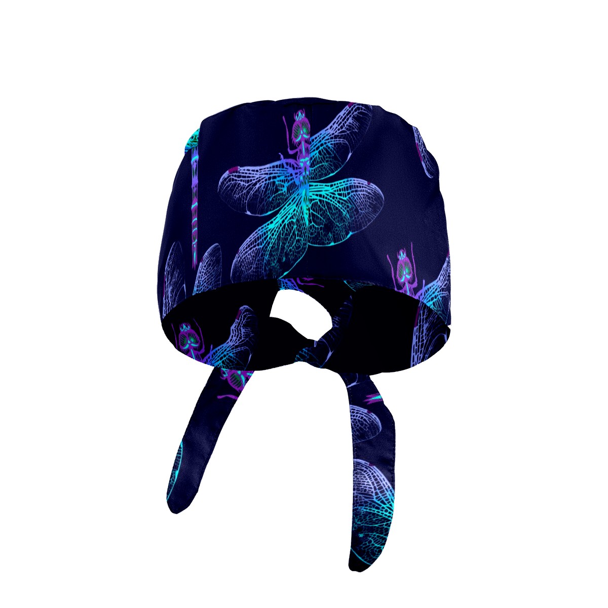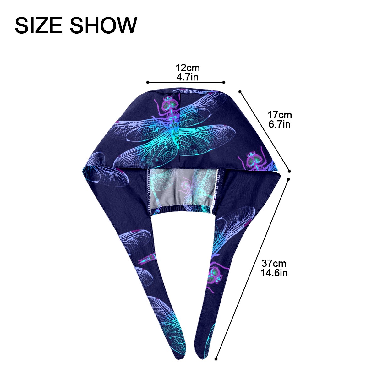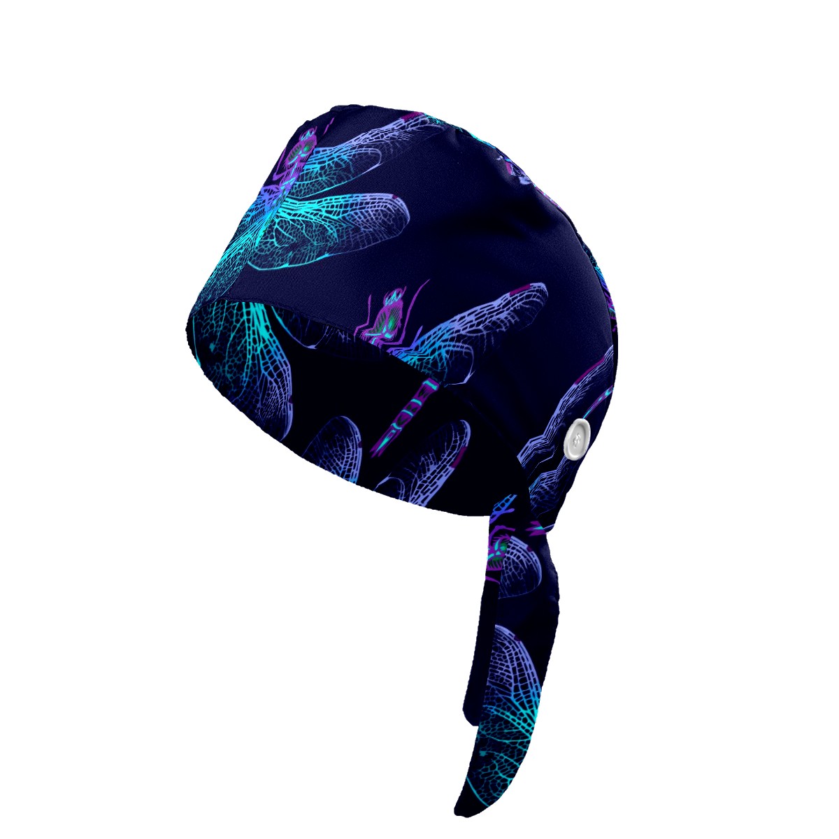 Working Caps with Button & Sweatband Satin Lined Cotton Adjustable Nurse Hats Elastic Band Scrub Cap Surgeon Hat Dragonfly On Dark Blue Background