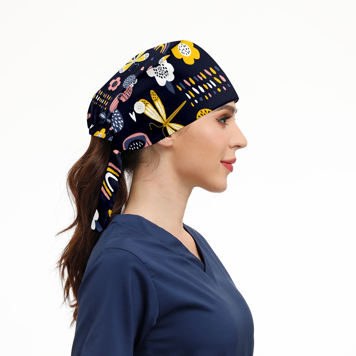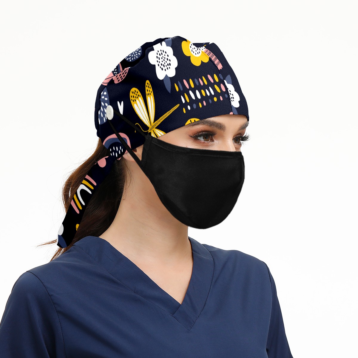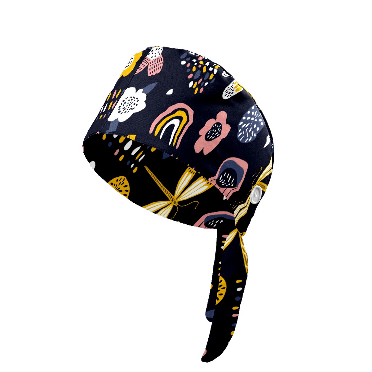 Working Caps with Button & Sweatband Satin Lined Cotton Adjustable Nurse Hats Elastic Band Scrub Cap Surgeon Hat Dragonfly Flower Rainbow Scandinavian Style