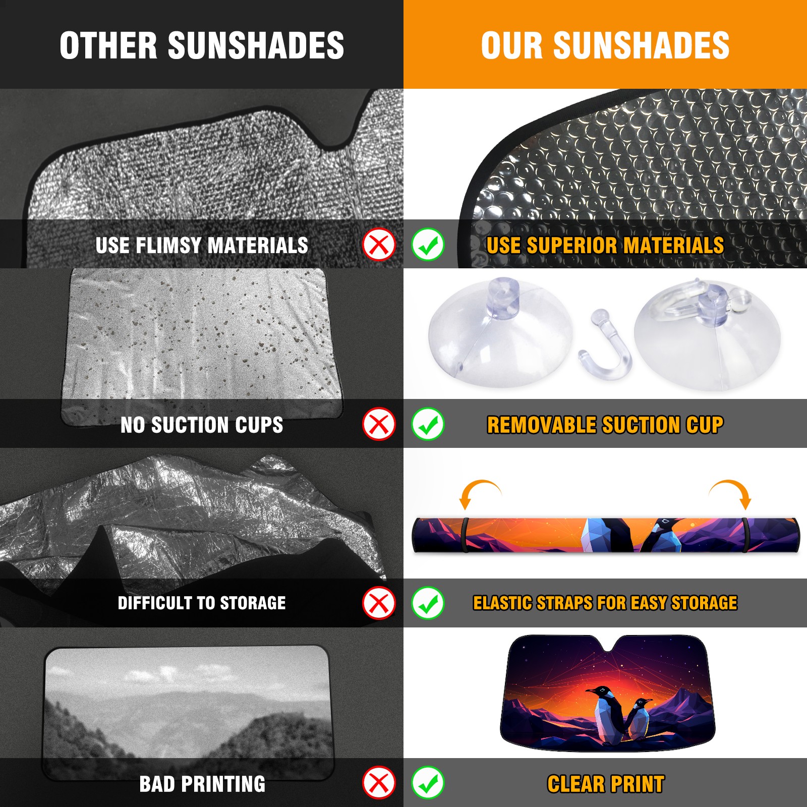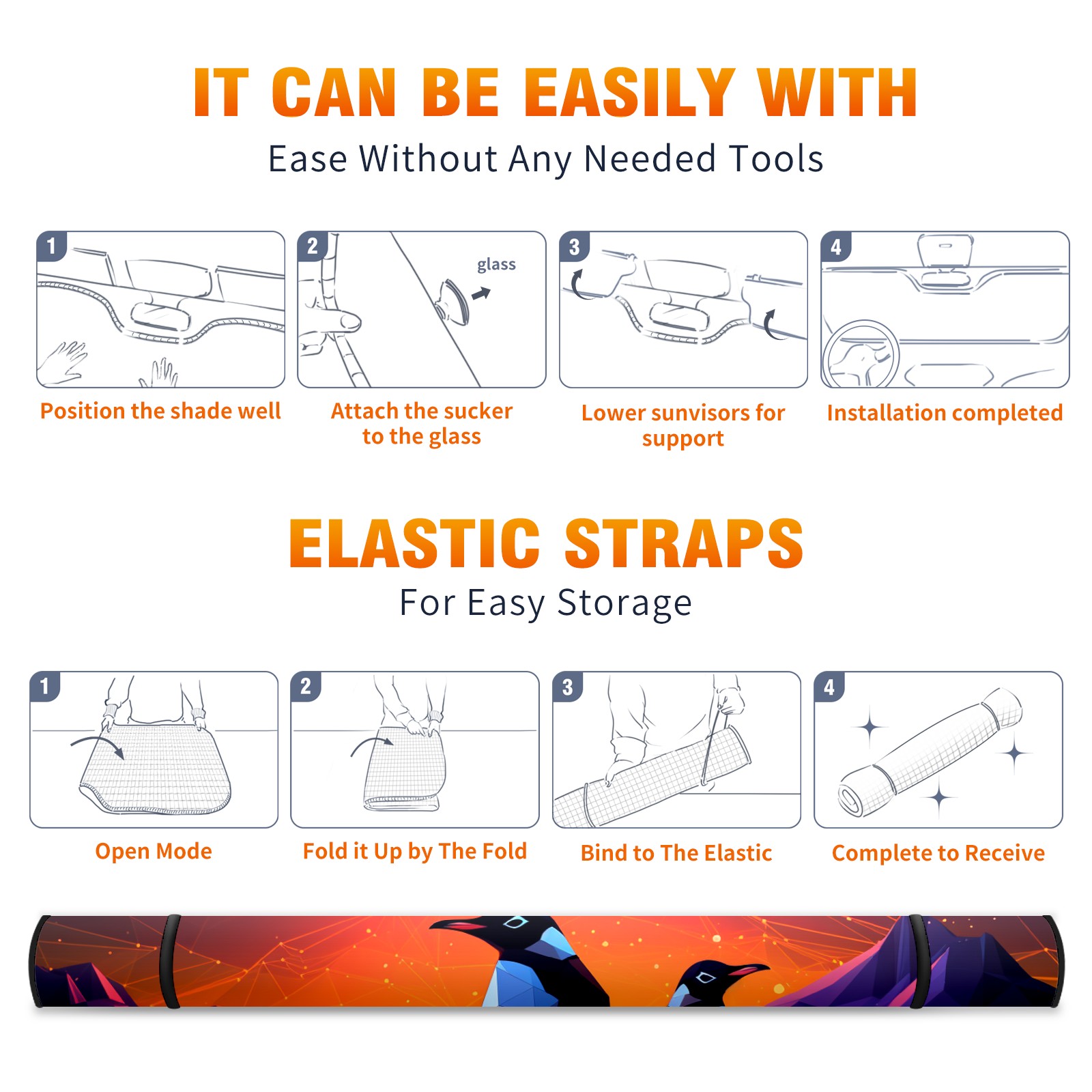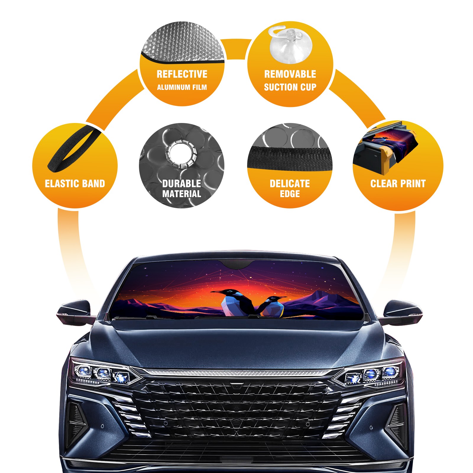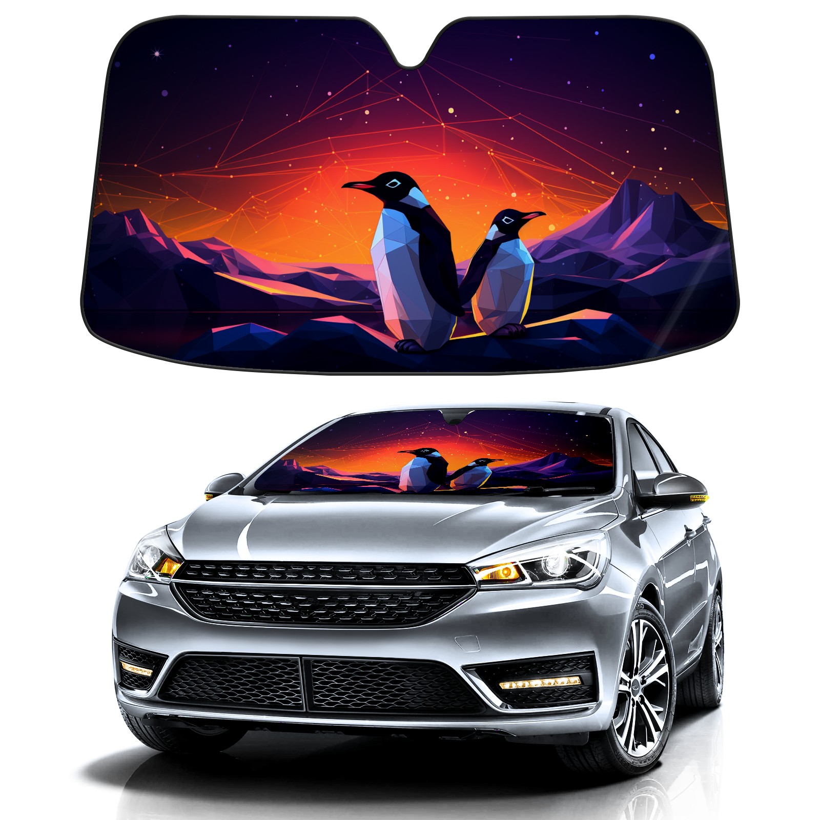 Car Windshield Sun Shade for Front Window Penguin (15) Foldable Vehicle Windshield Car Sun Visor Covers Automotive Window Protector Car Privacy Sun Blocker