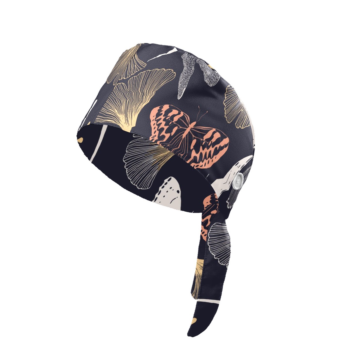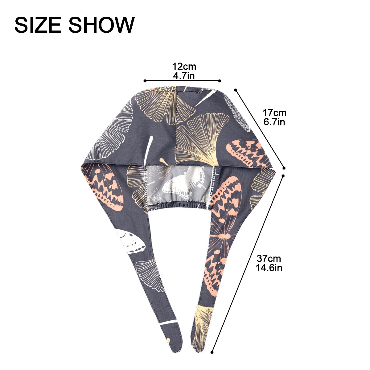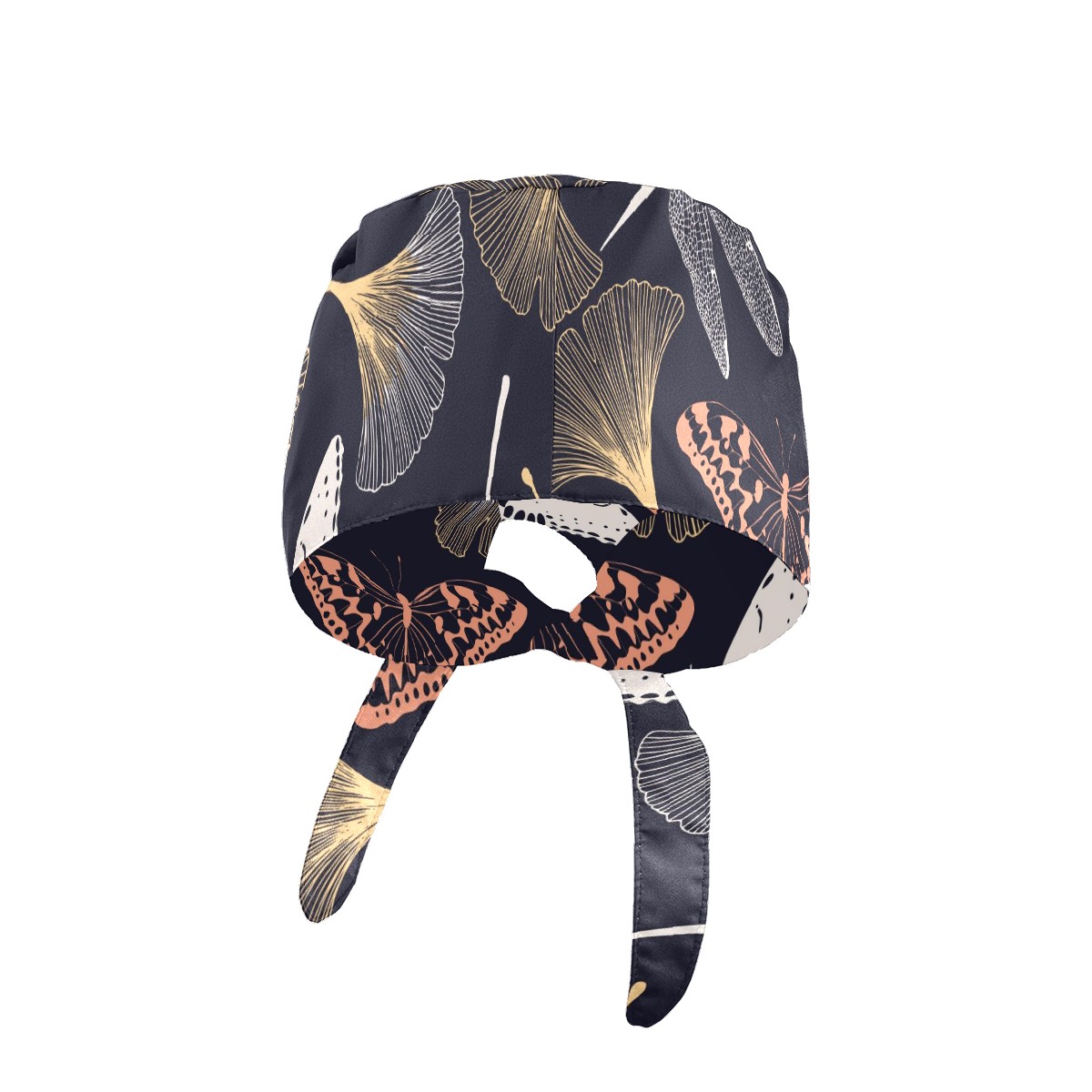 Working Caps with Button & Sweatband Satin Lined Cotton Adjustable Nurse Hats Elastic Band Scrub Cap Surgeon Hat Dragonfly Butterfly Ginkgo Leaves