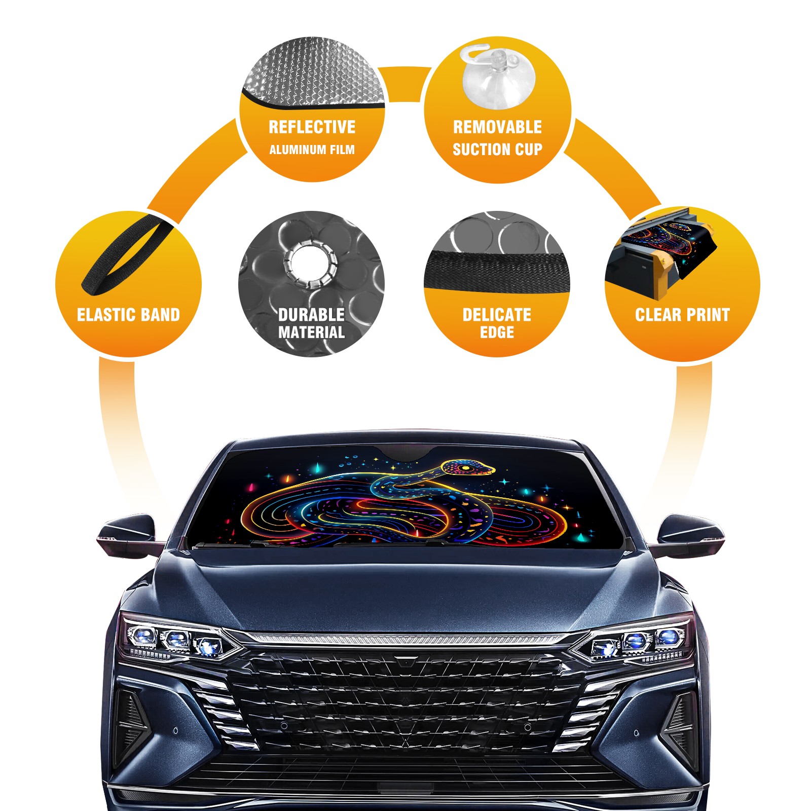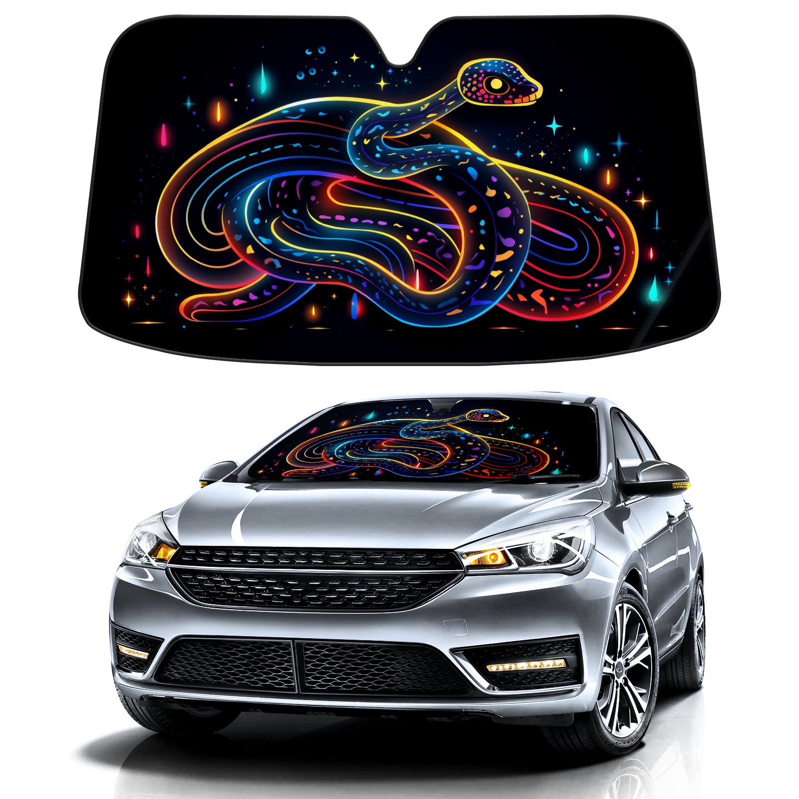 Car Windshield Sun Shade for Front Window Snake (17) Foldable Vehicle Windshield Car Sun Visor Covers Automotive Window Protector Car Privacy Sun Blocker