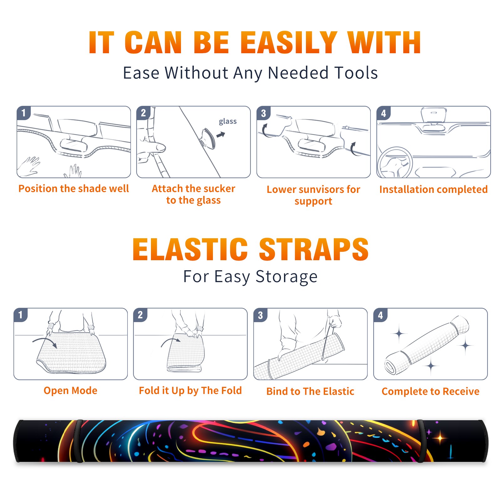 • Diameter /Size 63"L x 33.5"W</b><br> Made from excellent materials which makes it sturdy and protects the car from the sun. Easy to use and pack. Makes the interior of the car cooler.You can easily stash the sunshade in the storage bag or store long term.It open and closes easy. Also the leather storage bag is durable and easy to put the umbrella back into.This windshield sunshade provides complete coverage and keeps your car interior cool under direct sun. It is easy to open and position under the windshield and around the rear-view mirror. Makes Your Car Easy To Identify, Perfect For Finding Your Car In Crowded Parking Lots And Garages.Great Choice: It Is A Great Gift For Dad, Boyfriend, Brother, Brother And Uncle, Friends, Classmates, Family And So On.<br> Notice:</b><br> Due To Difference Computer Monitors, The Color Maybe Slightly Different From Picture. As Different Measurement Methods, Measurement Data Will Float Within 2%.I Hope You Understand.<br> If You Have Any Question About The Item Please Do Not Hesitate To Contact Us Immediately And We Will Give You A Satisfactory Reply Within 24 Hours.