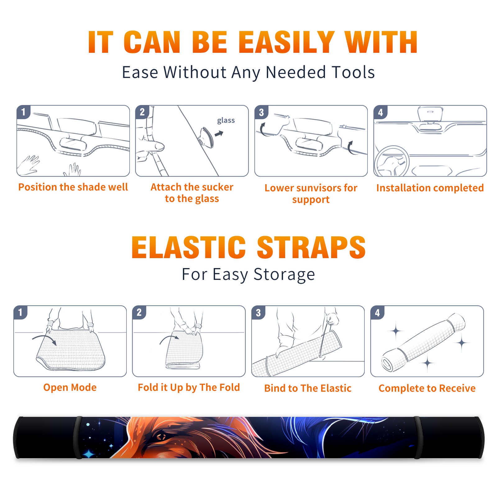 • Diameter /Size 63"L x 33.5"W</b><br> Made from excellent materials which makes it sturdy and protects the car from the sun. Easy to use and pack. Makes the interior of the car cooler.You can easily stash the sunshade in the storage bag or store long term.It open and closes easy. Also the leather storage bag is durable and easy to put the umbrella back into.This windshield sunshade provides complete coverage and keeps your car interior cool under direct sun. It is easy to open and position under the windshield and around the rear-view mirror. Makes Your Car Easy To Identify, Perfect For Finding Your Car In Crowded Parking Lots And Garages.Great Choice: It Is A Great Gift For Dad, Boyfriend, Brother, Brother And Uncle, Friends, Classmates, Family And So On.<br> Notice:</b><br> Due To Difference Computer Monitors, The Color Maybe Slightly Different From Picture. As Different Measurement Methods, Measurement Data Will Float Within 2%.I Hope You Understand.<br> If You Have Any Question About The Item Please Do Not Hesitate To Contact Us Immediately And We Will Give You A Satisfactory Reply Within 24 Hours.