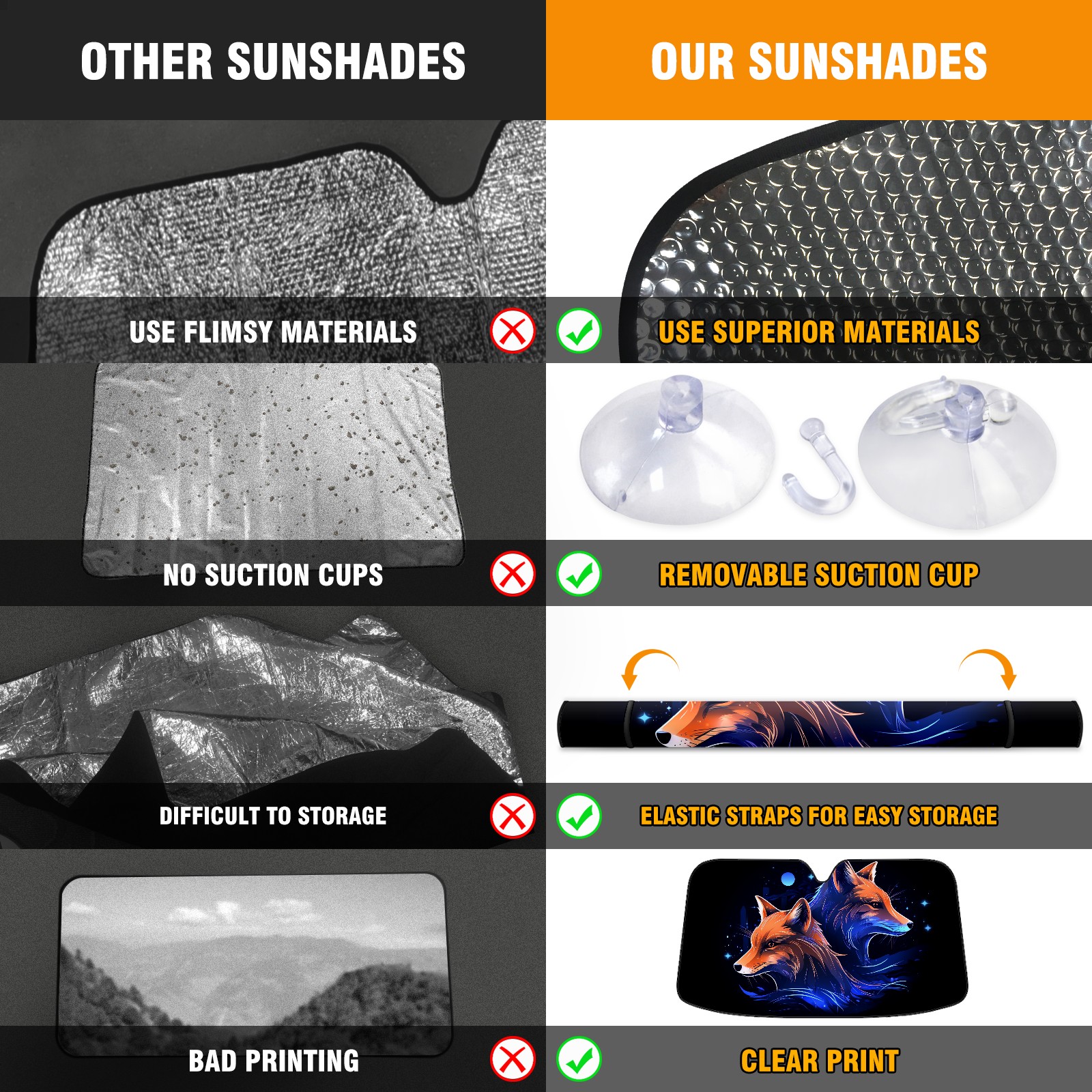 Car Windshield Sun Shade for Front Window Fox (34) Foldable Vehicle Windshield Car Sun Visor Covers Automotive Window Protector Car Privacy Sun Blocker
