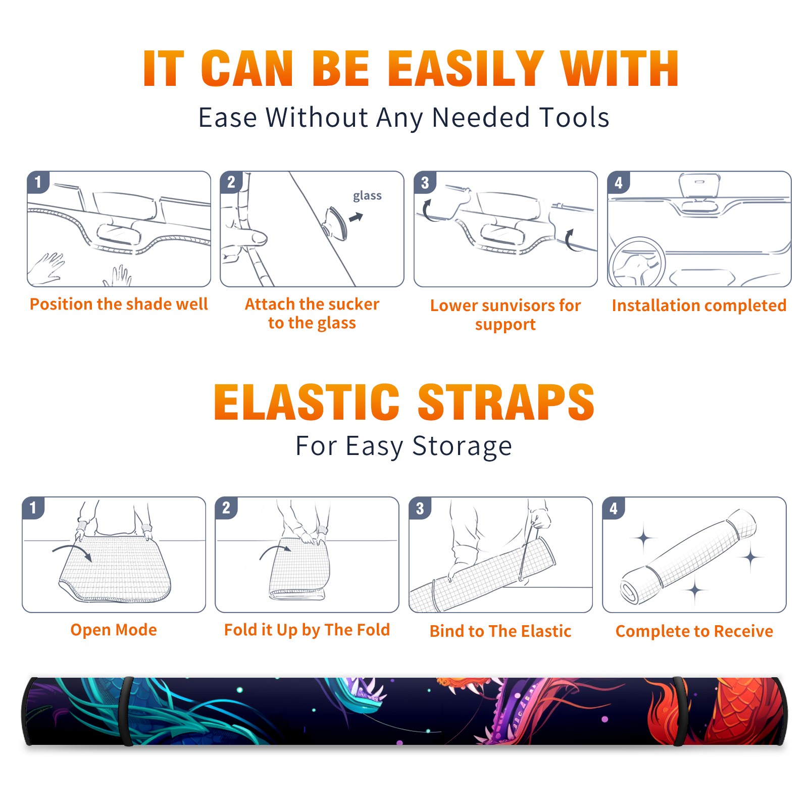Diameter /Size 63"L x 33.5"W</b><br> Made from excellent materials which makes it sturdy and protects the car from the sun. Easy to use and pack. Makes the interior of the car cooler.You can easily stash the sunshade in the storage bag or store long term.It open and closes easy. Also the leather storage bag is durable and easy to put the umbrella back into.This windshield sunshade provides complete coverage and keeps your car interior cool under direct sun. It is easy to open and position under the windshield and around the rear-view mirror. Makes Your Car Easy To Identify, Perfect For Finding Your Car In Crowded Parking Lots And Garages.Great Choice: It Is A Great Gift For Dad, Boyfriend, Brother, Brother And Uncle, Friends, Classmates, Family And So On.<br> Notice:</b><br> Due To Difference Computer Monitors, The Color Maybe Slightly Different From Picture. As Different Measurement Methods, Measurement Data Will Float Within 2%.I Hope You Understand.<br> If You Have Any Question About The Item Please Do Not Hesitate To Contact Us Immediately And We Will Give You A Satisfactory Reply Within 24 Hours.