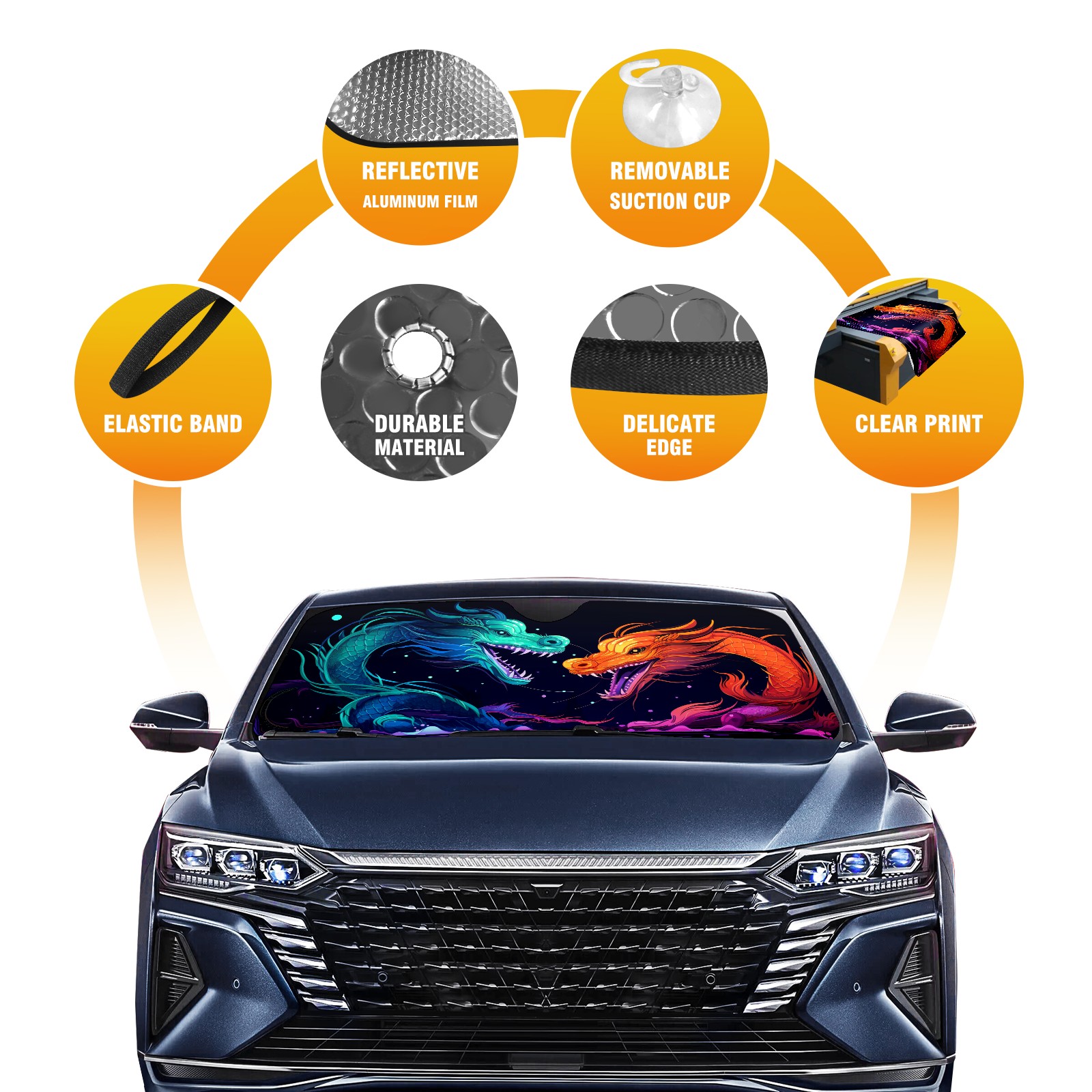 Car Windshield Sun Shade for Front Window Chinese Dragon (3) Foldable Vehicle Windshield Car Sun Visor Covers Automotive Window Protector Car Privacy Sun Blocker