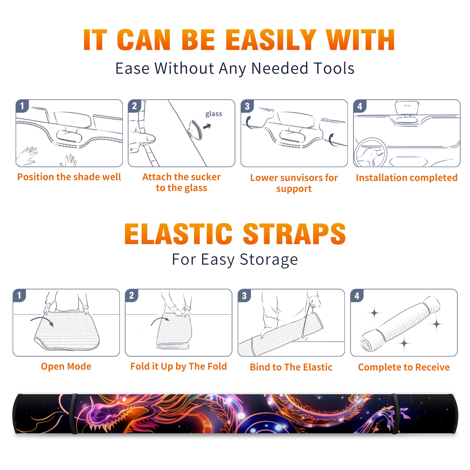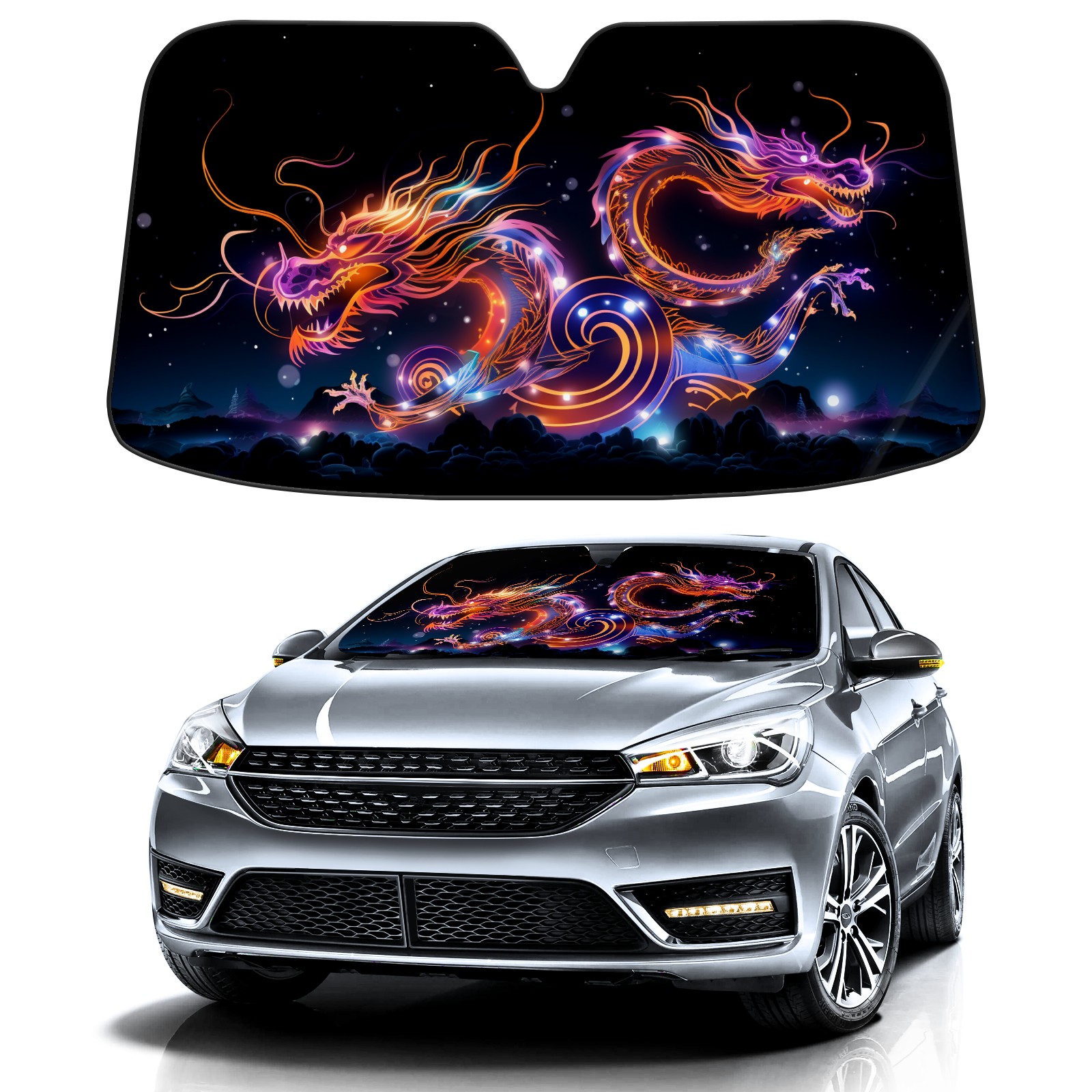 Car Windshield Sun Shade for Front Window Chinese Dragon (1) Foldable Vehicle Windshield Car Sun Visor Covers Automotive Window Protector Car Privacy Sun Blocker