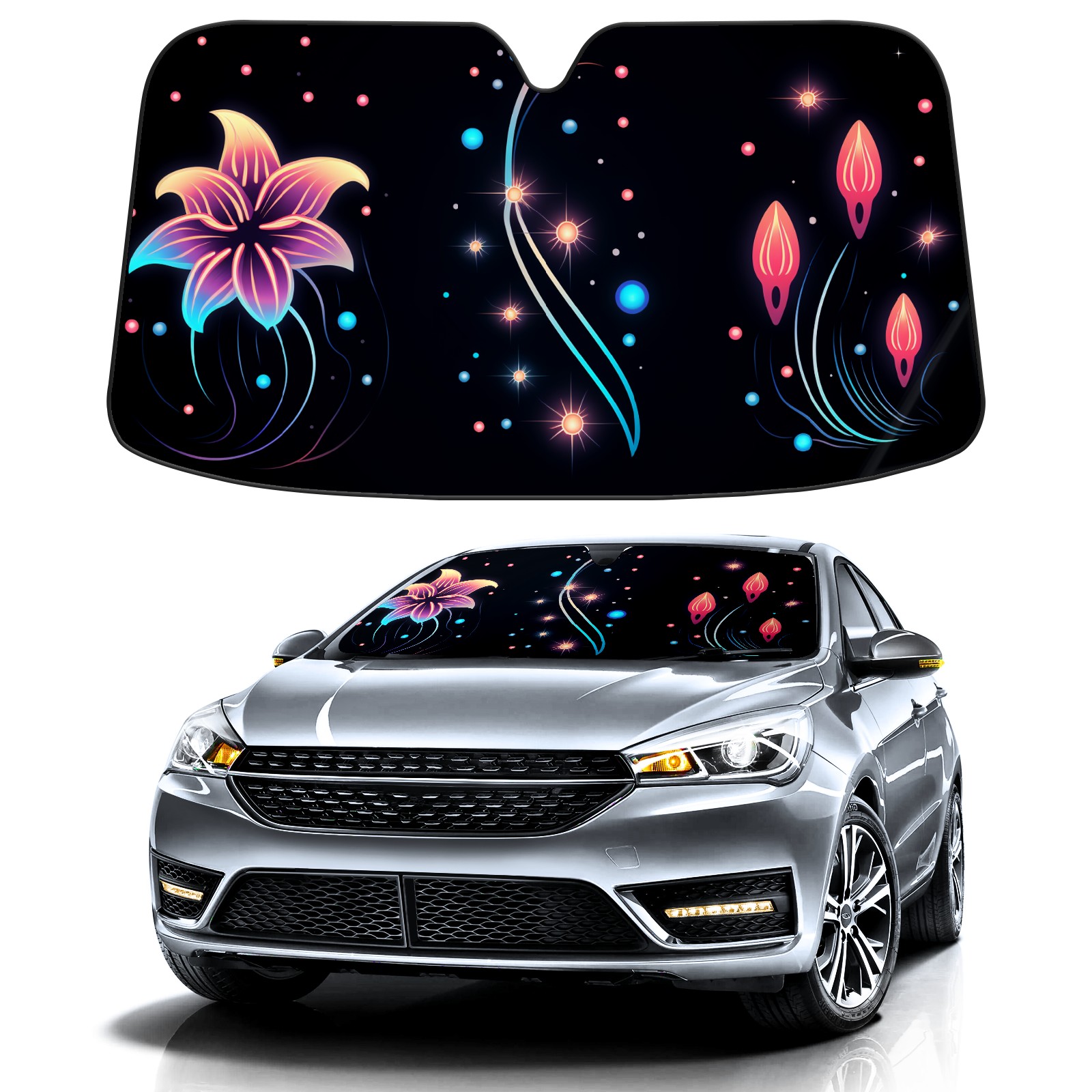 Car Windshield Sun Shade for Front Window Flower (148) Foldable Vehicle Windshield Car Sun Visor Covers Automotive Window Protector Car Privacy Sun Blocker