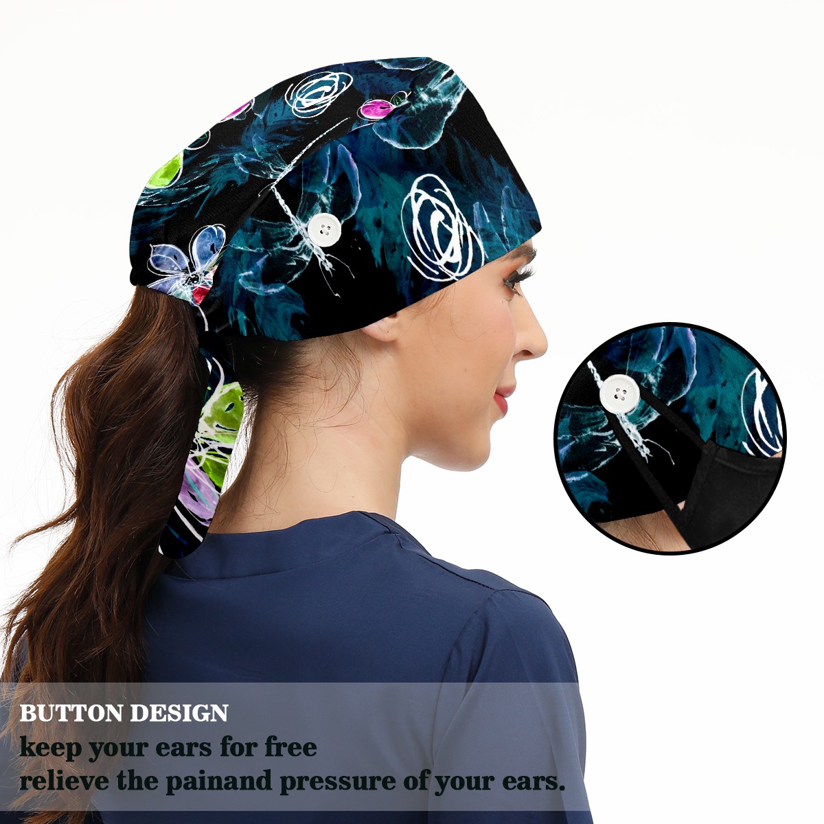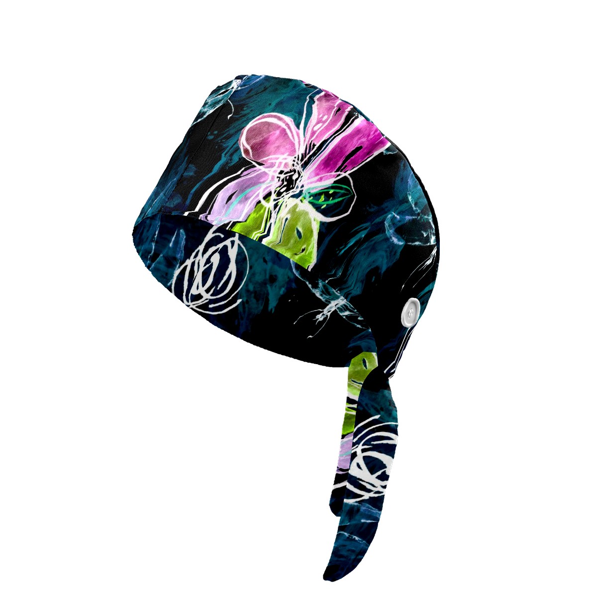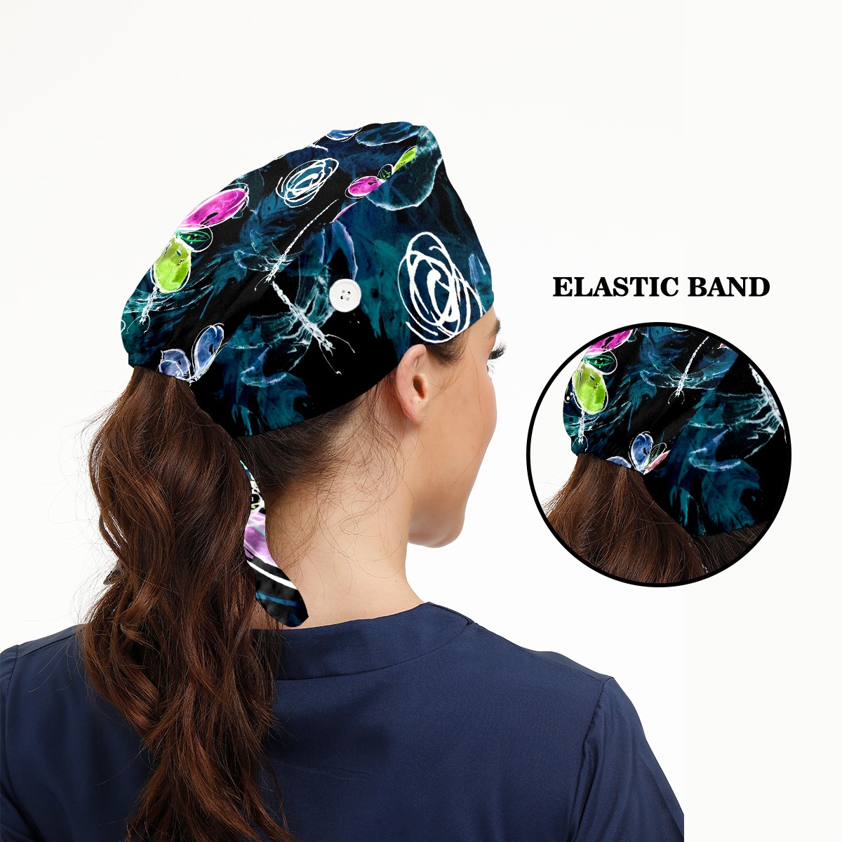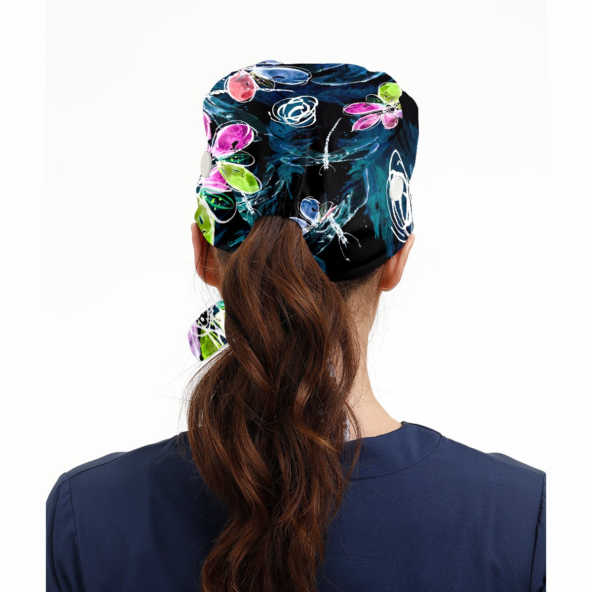 Working Caps with Button & Sweatband Satin Lined Cotton Adjustable Nurse Hats Elastic Band Scrub Cap Surgeon Hat Abstract Art Dragonfly Flower