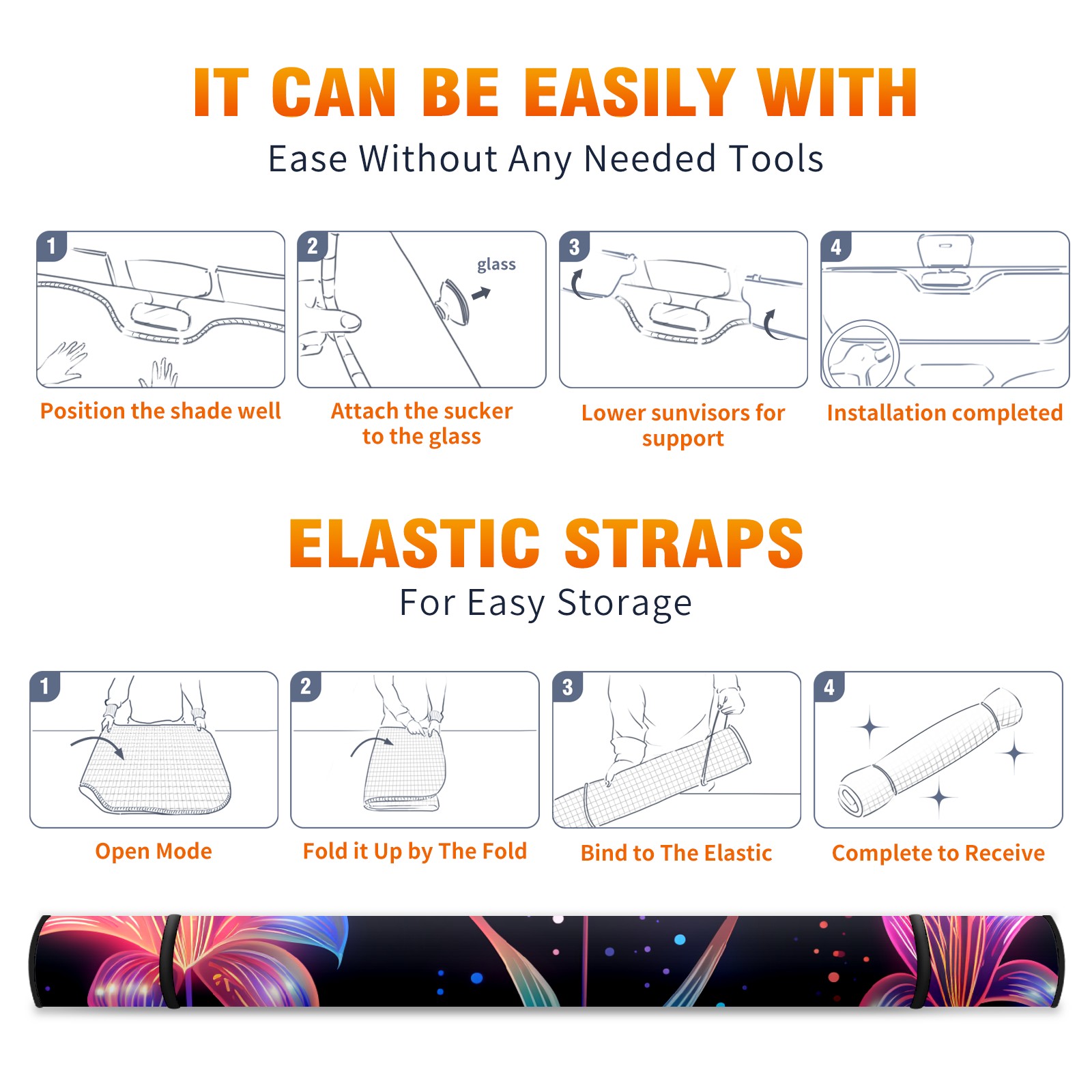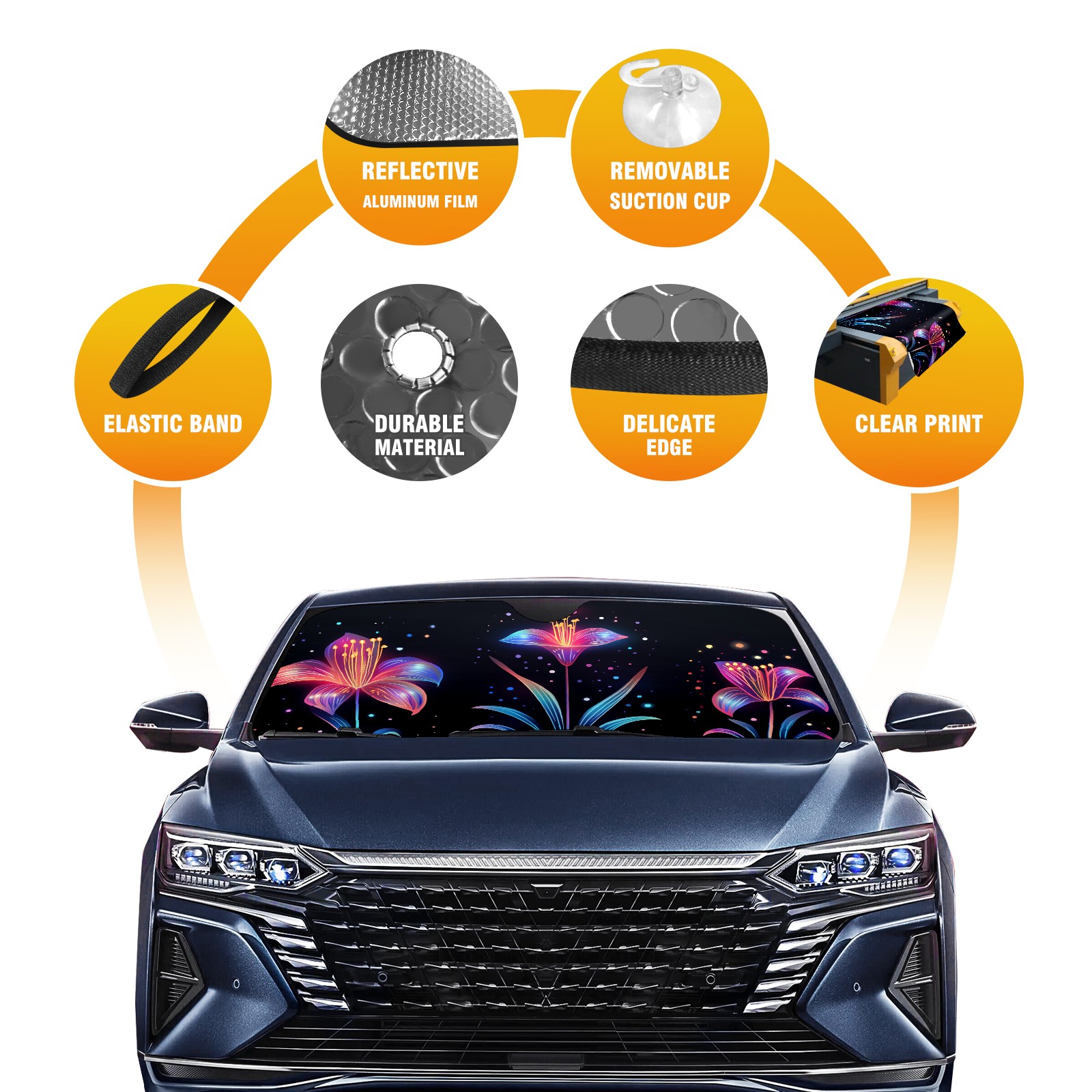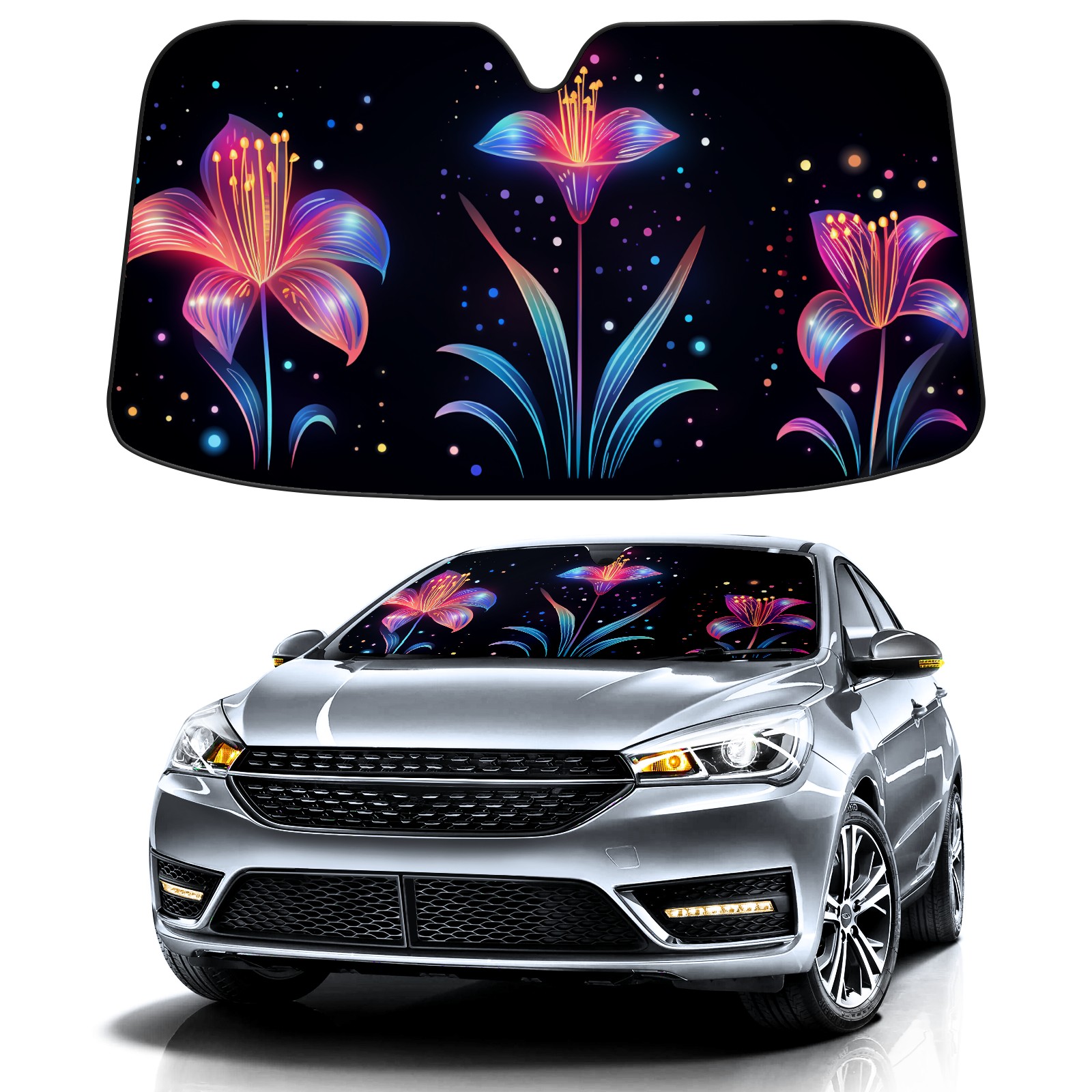 Car Windshield Sun Shade for Front Window Flower (143) Foldable Vehicle Windshield Car Sun Visor Covers Automotive Window Protector Car Privacy Sun Blocker