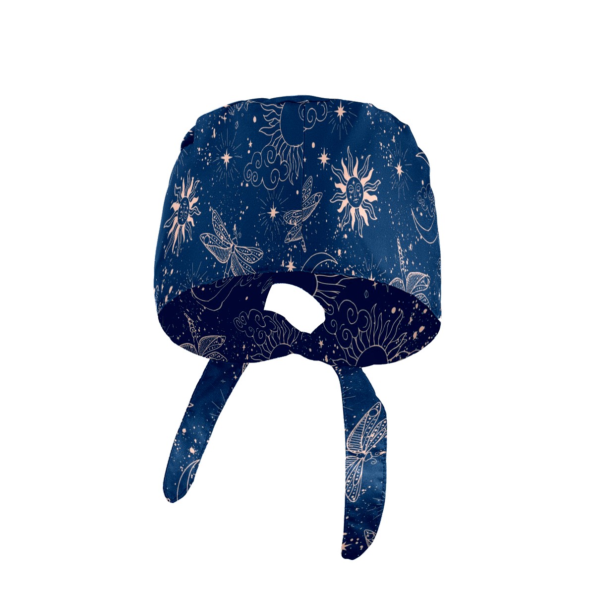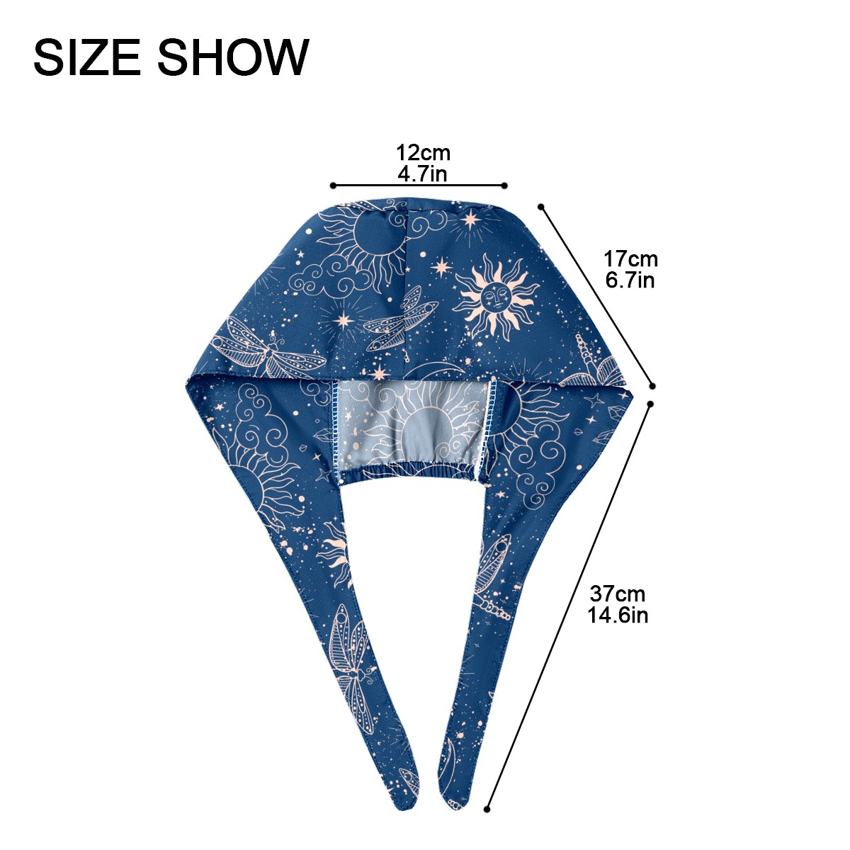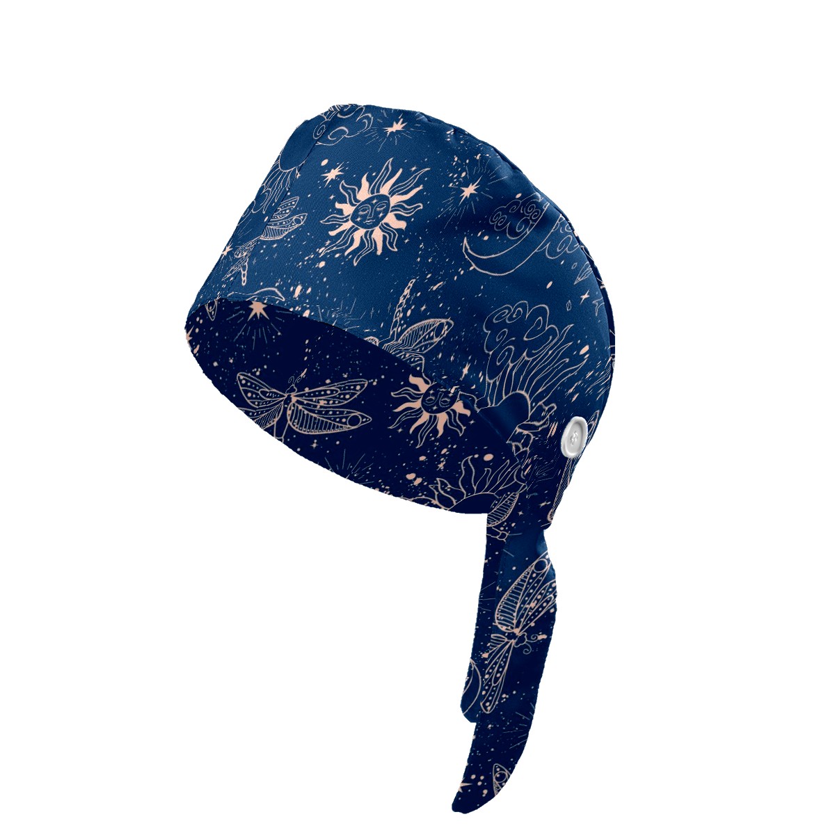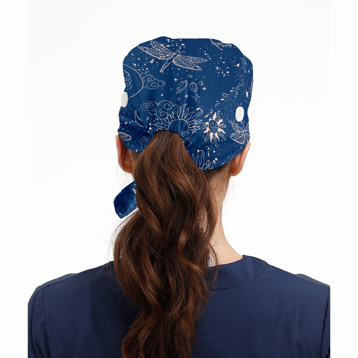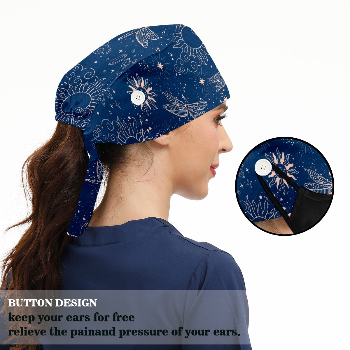 Working Caps with Button & Sweatband Satin Lined Cotton Adjustable Nurse Hats Elastic Band Scrub Cap Surgeon Hat Boho Moon Sun Dragonfly Star