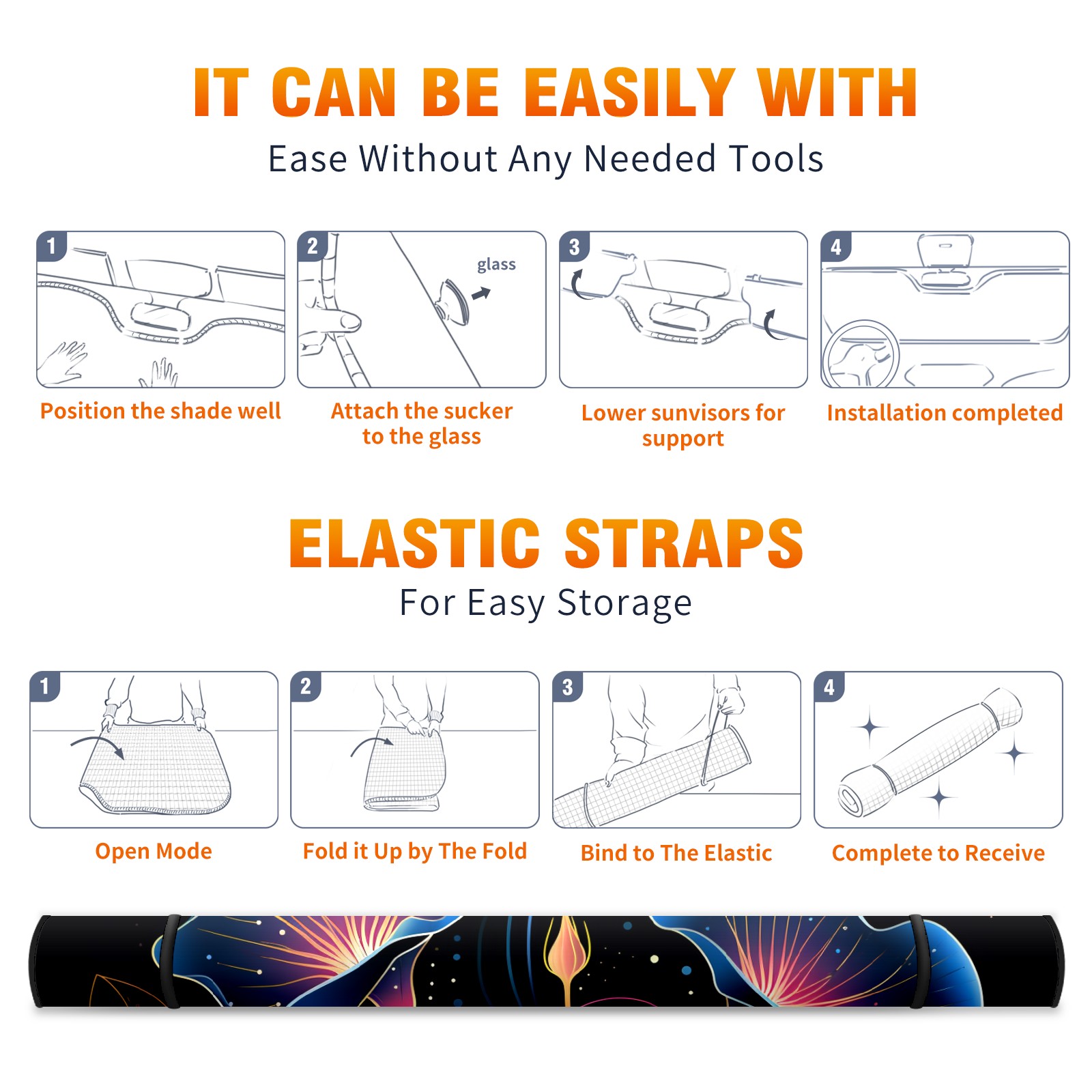 Diameter /Size 63"L x 33.5"W</b><br> Made from excellent materials which makes it sturdy and protects the car from the sun. Easy to use and pack. Makes the interior of the car cooler.You can easily stash the sunshade in the storage bag or store long term.It open and closes easy. Also the leather storage bag is durable and easy to put the umbrella back into.This windshield sunshade provides complete coverage and keeps your car interior cool under direct sun. It is easy to open and position under the windshield and around the rear-view mirror. Makes Your Car Easy To Identify, Perfect For Finding Your Car In Crowded Parking Lots And Garages.Great Choice: It Is A Great Gift For Dad, Boyfriend, Brother, Brother And Uncle, Friends, Classmates, Family And So On.<br> Notice:</b><br> Due To Difference Computer Monitors, The Color Maybe Slightly Different From Picture. As Different Measurement Methods, Measurement Data Will Float Within 2%.I Hope You Understand.<br> If You Have Any Question About The Item Please Do Not Hesitate To Contact Us Immediately And We Will Give You A Satisfactory Reply Within 24 Hours.