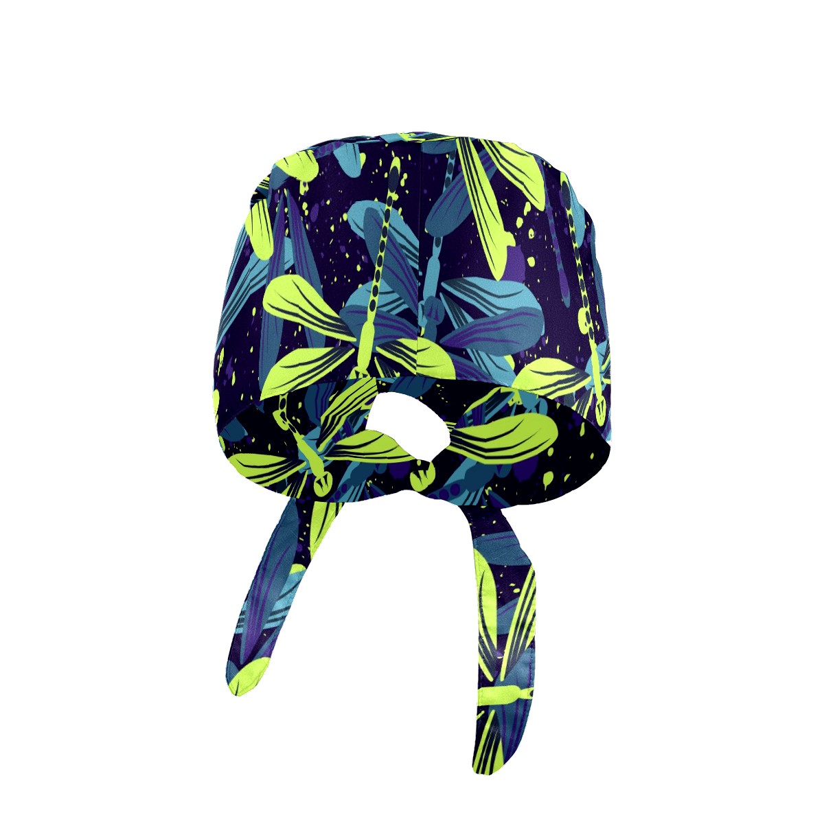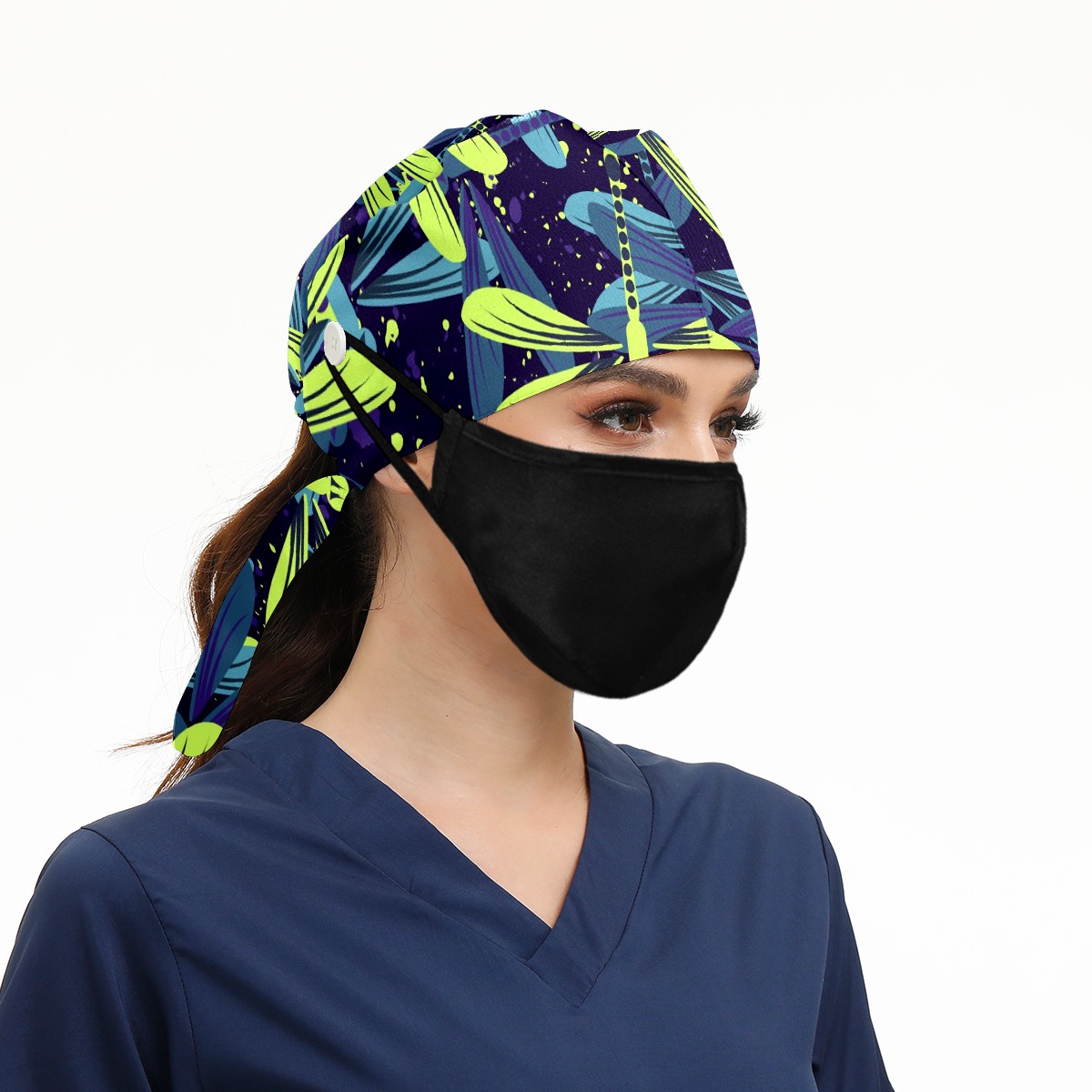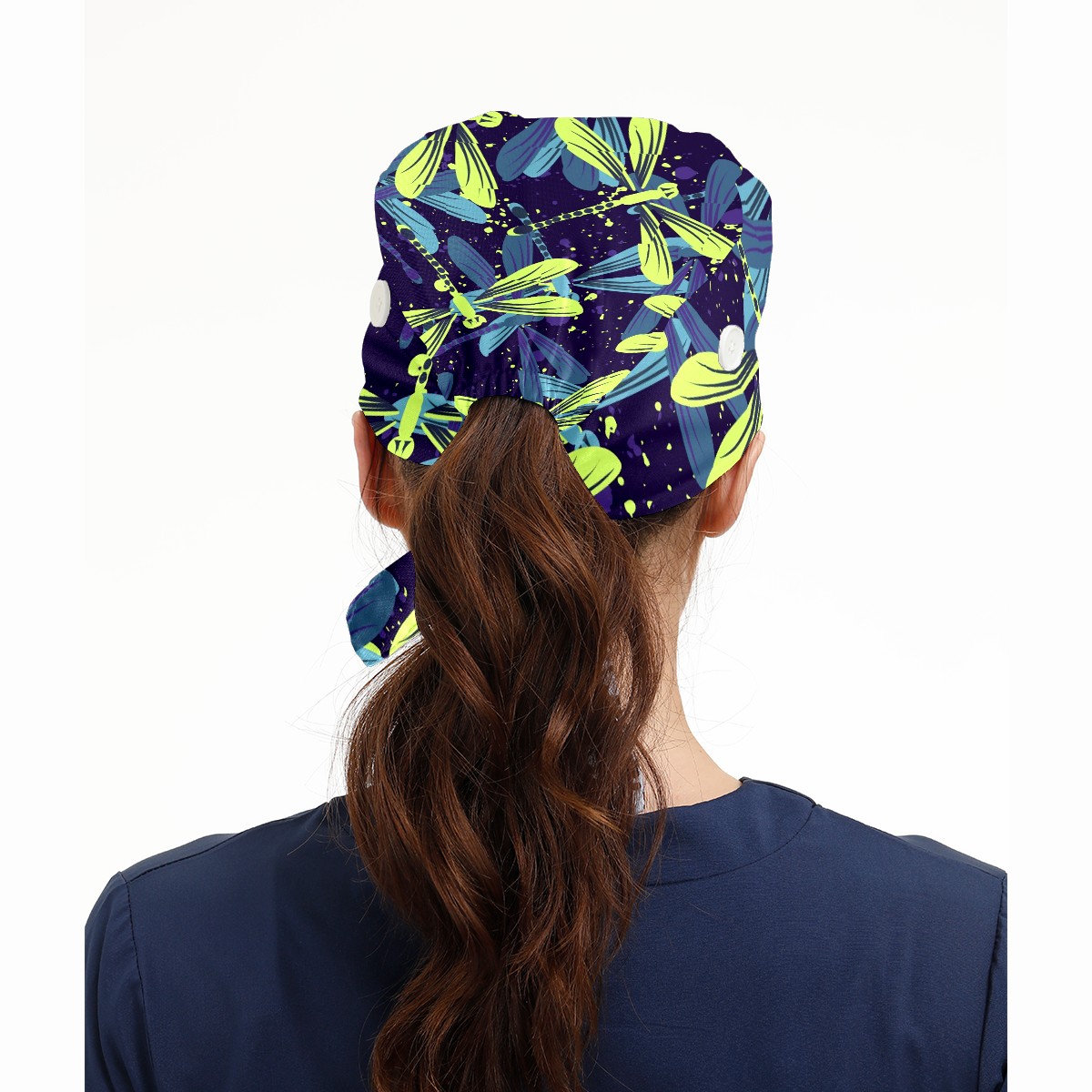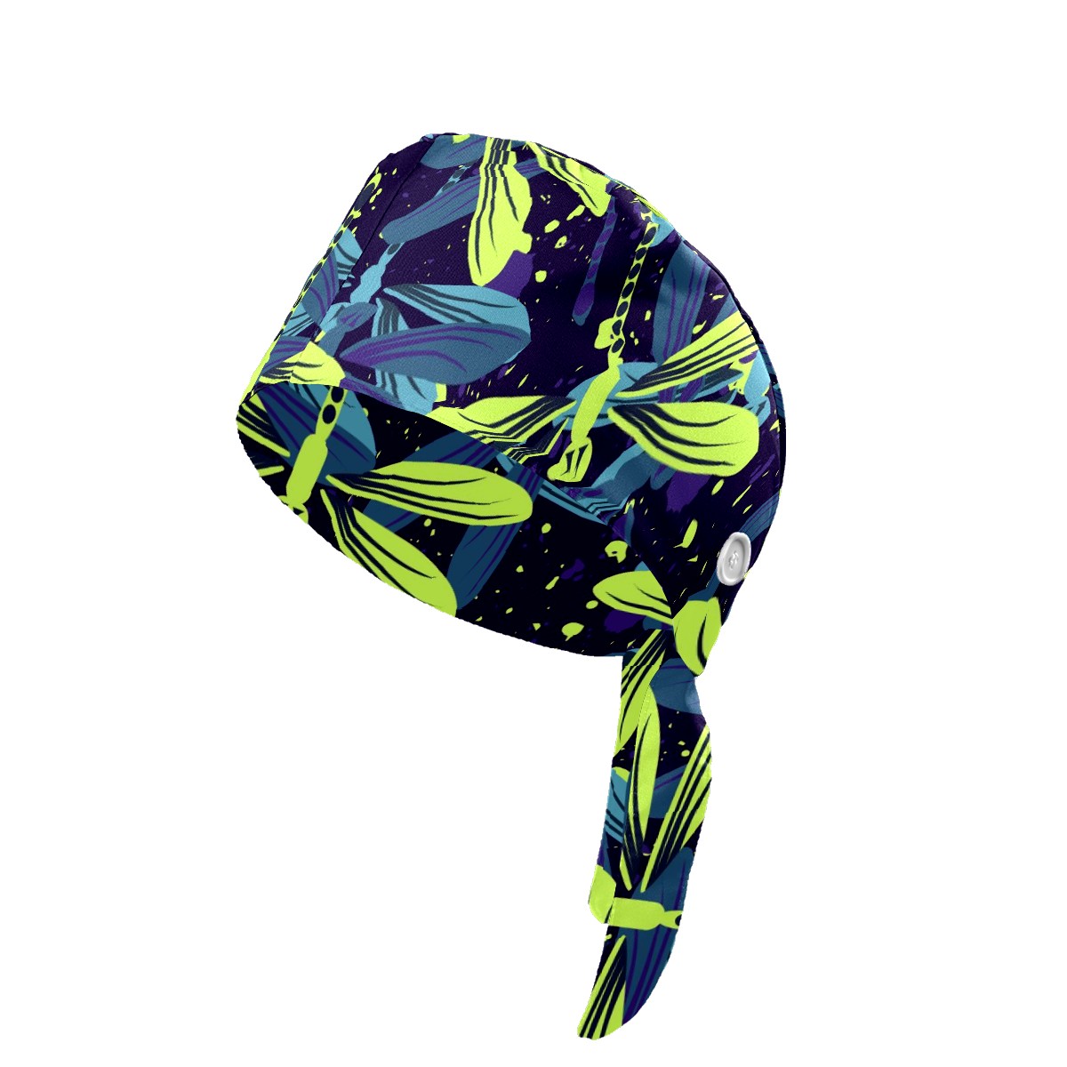 Working Caps with Button & Sweatband Satin Lined Cotton Adjustable Nurse Hats Elastic Band Scrub Cap Surgeon Hat Blue Green Dragonfly