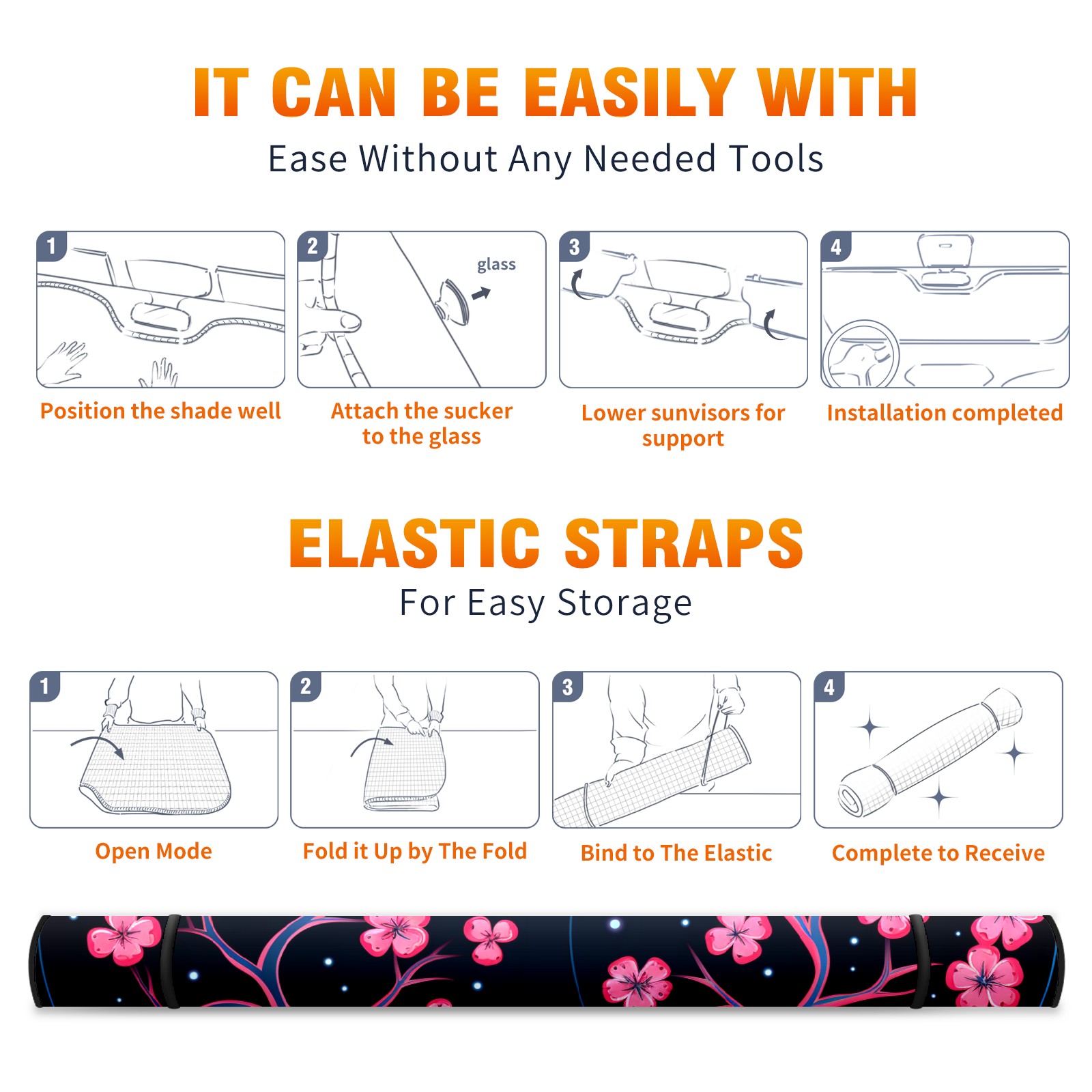 Car Windshield Sun Shade for Front Window Flower (100) Foldable Vehicle Windshield Car Sun Visor Covers Automotive Window Protector Car Privacy Sun Blocker