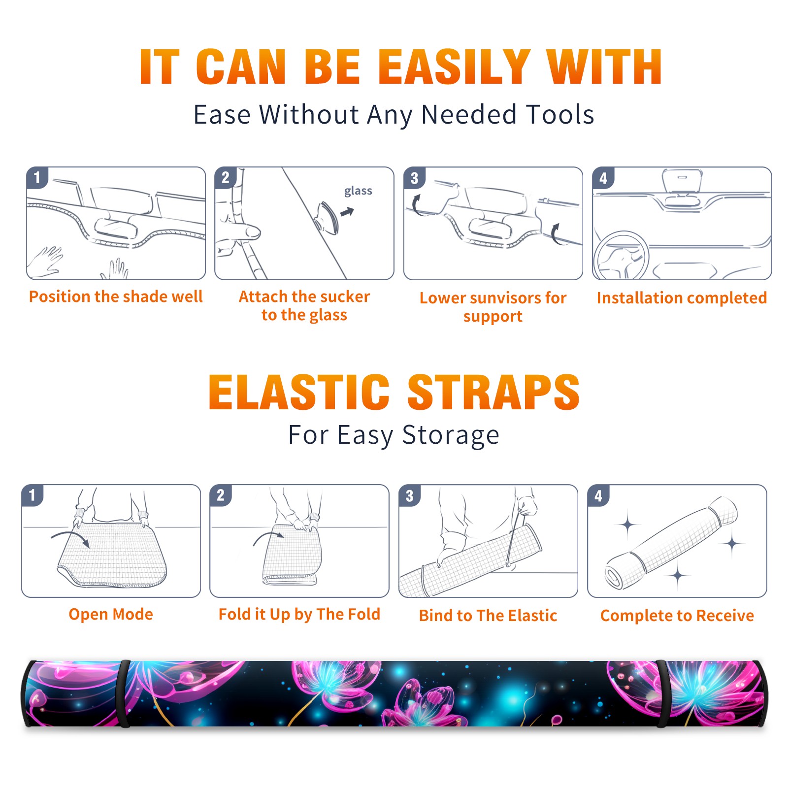 Diameter /Size 63"L x 33.5"W</b><br> Made from excellent materials which makes it sturdy and protects the car from the sun. Easy to use and pack. Makes the interior of the car cooler.You can easily stash the sunshade in the storage bag or store long term.It open and closes easy. Also the leather storage bag is durable and easy to put the umbrella back into.This windshield sunshade provides complete coverage and keeps your car interior cool under direct sun. It is easy to open and position under the windshield and around the rear-view mirror. Makes Your Car Easy To Identify, Perfect For Finding Your Car In Crowded Parking Lots And Garages.Great Choice: It Is A Great Gift For Dad, Boyfriend, Brother, Brother And Uncle, Friends, Classmates, Family And So On.<br> Notice:</b><br> Due To Difference Computer Monitors, The Color Maybe Slightly Different From Picture. As Different Measurement Methods, Measurement Data Will Float Within 2%.I Hope You Understand.<br> If You Have Any Question About The Item Please Do Not Hesitate To Contact Us Immediately And We Will Give You A Satisfactory Reply Within 24 Hours.