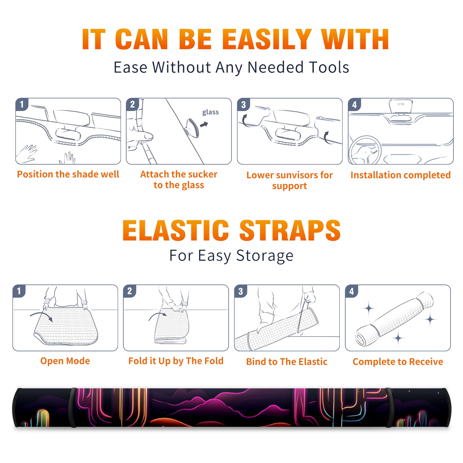 Diameter /Size 63"L x 33.5"W</b><br> Made from excellent materials which makes it sturdy and protects the car from the sun. Easy to use and pack. Makes the interior of the car cooler.You can easily stash the sunshade in the storage bag or store long term.It open and closes easy. Also the leather storage bag is durable and easy to put the umbrella back into.This windshield sunshade provides complete coverage and keeps your car interior cool under direct sun. It is easy to open and position under the windshield and around the rear-view mirror. Makes Your Car Easy To Identify, Perfect For Finding Your Car In Crowded Parking Lots And Garages.Great Choice: It Is A Great Gift For Dad, Boyfriend, Brother, Brother And Uncle, Friends, Classmates, Family And So On.<br> Notice:</b><br> Due To Difference Computer Monitors, The Color Maybe Slightly Different From Picture. As Different Measurement Methods, Measurement Data Will Float Within 2%.I Hope You Understand.<br> If You Have Any Question About The Item Please Do Not Hesitate To Contact Us Immediately And We Will Give You A Satisfactory Reply Within 24 Hours.