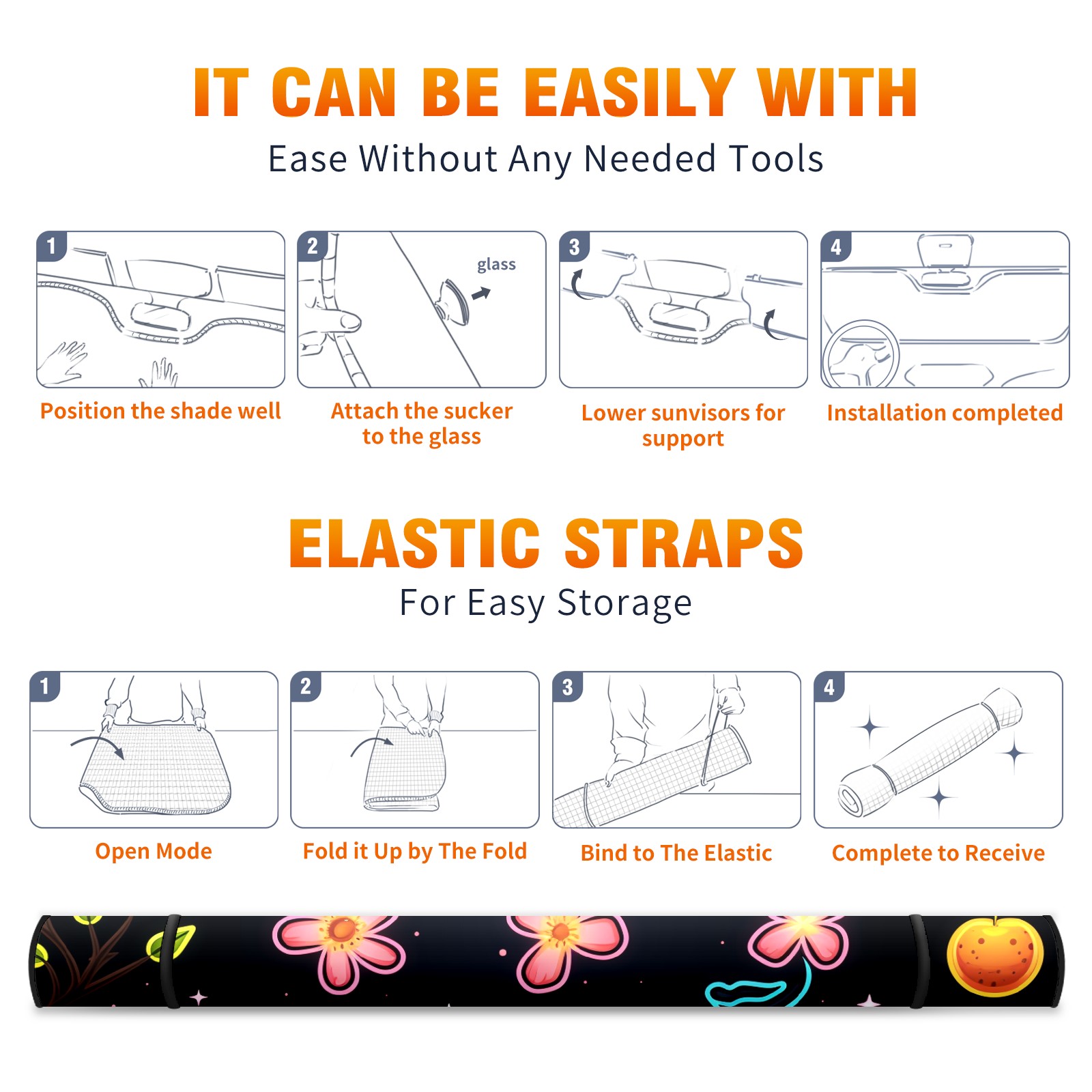 Car Windshield Sun Shade for Front Window Flower (26) Foldable Vehicle Windshield Car Sun Visor Covers Automotive Window Protector Car Privacy Sun Blocker