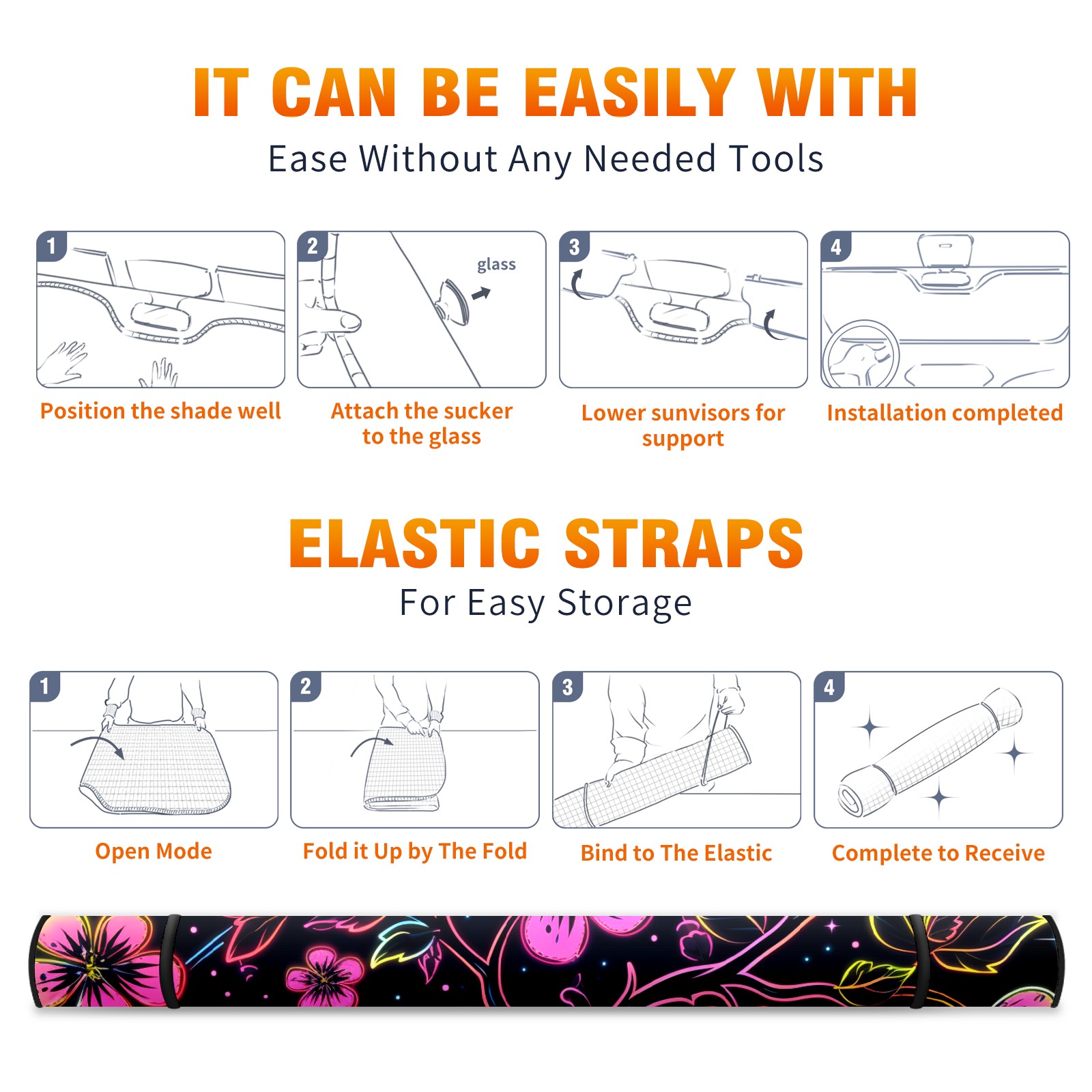 Car Windshield Sun Shade for Front Window Flower (21) Foldable Vehicle Windshield Car Sun Visor Covers Automotive Window Protector Car Privacy Sun Blocker