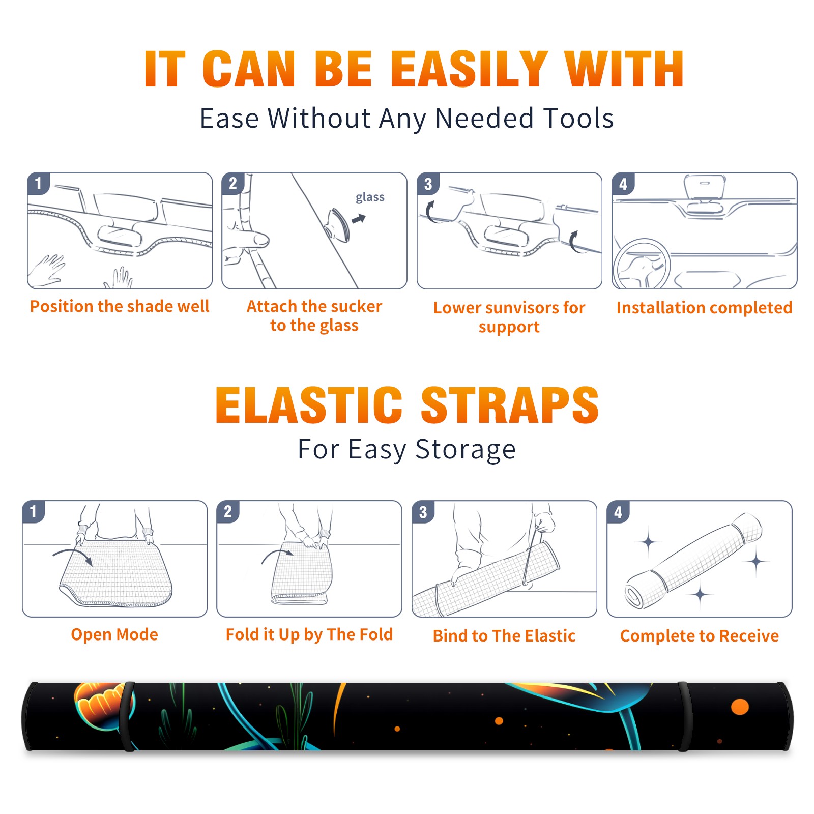 Diameter /Size 63"L x 33.5"W</b><br> Made from excellent materials which makes it sturdy and protects the car from the sun. Easy to use and pack. Makes the interior of the car cooler.You can easily stash the sunshade in the storage bag or store long term.It open and closes easy. Also the leather storage bag is durable and easy to put the umbrella back into.This windshield sunshade provides complete coverage and keeps your car interior cool under direct sun. It is easy to open and position under the windshield and around the rear-view mirror. Makes Your Car Easy To Identify, Perfect For Finding Your Car In Crowded Parking Lots And Garages.Great Choice: It Is A Great Gift For Dad, Boyfriend, Brother, Brother And Uncle, Friends, Classmates, Family And So On.<br> Notice:</b><br> Due To Difference Computer Monitors, The Color Maybe Slightly Different From Picture. As Different Measurement Methods, Measurement Data Will Float Within 2%.I Hope You Understand.<br> If You Have Any Question About The Item Please Do Not Hesitate To Contact Us Immediately And We Will Give You A Satisfactory Reply Within 24 Hours.